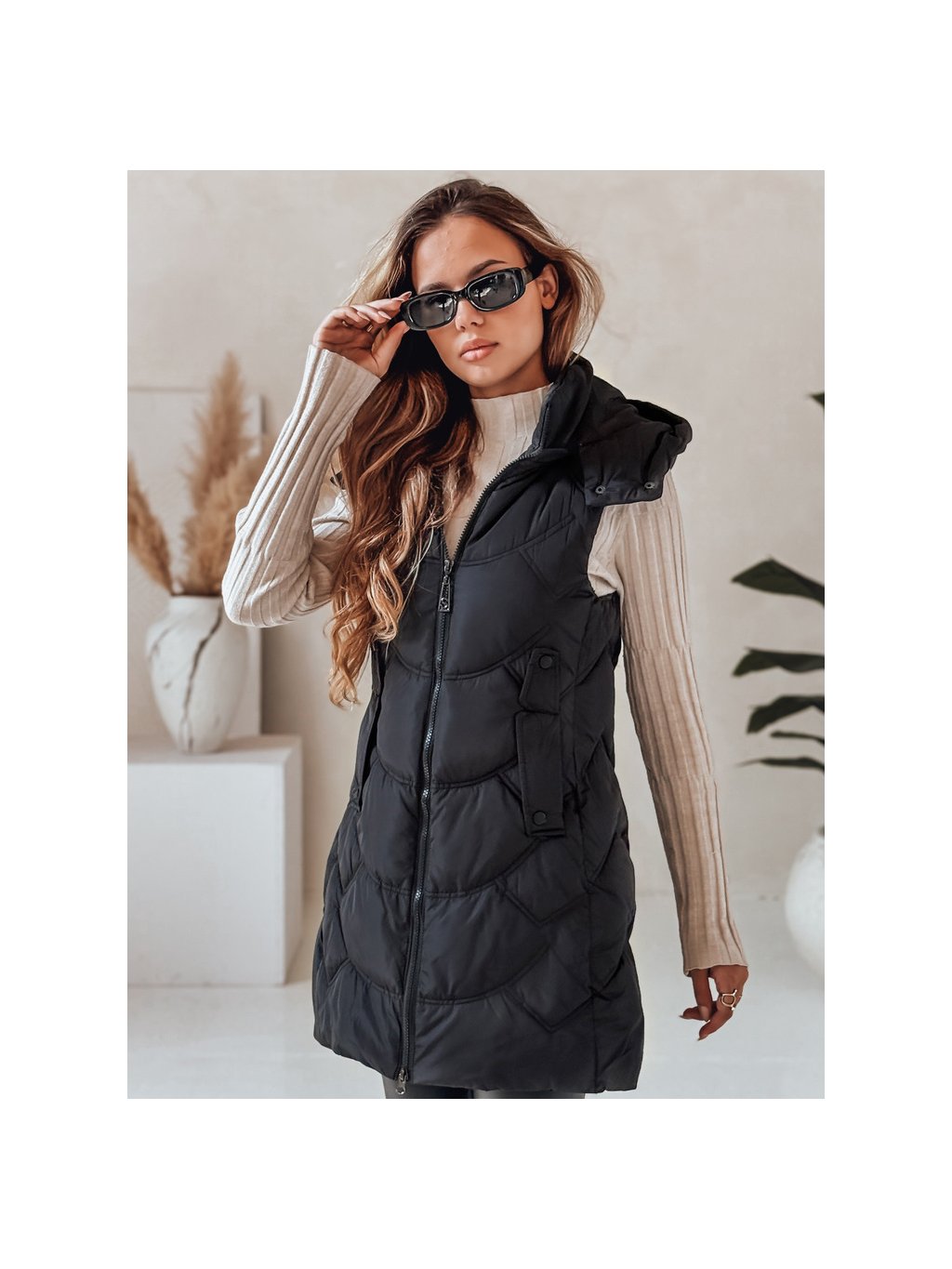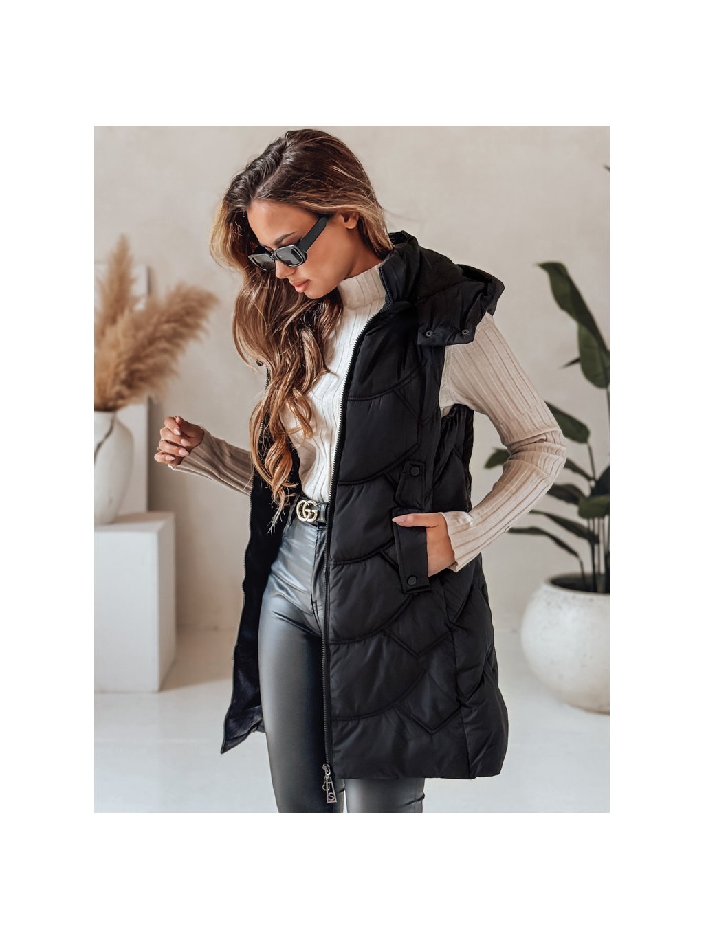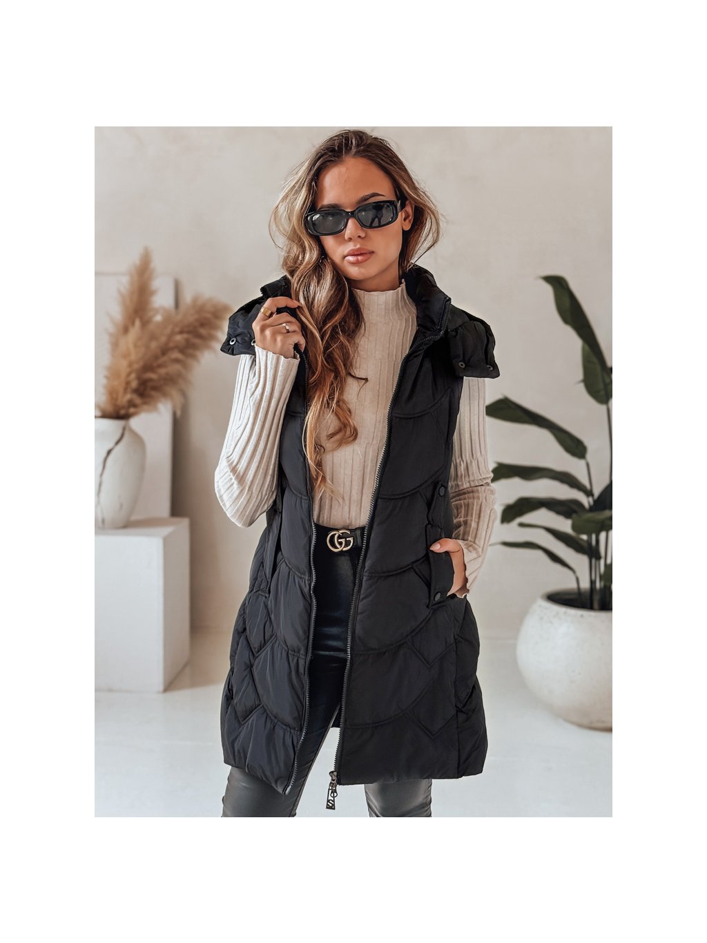 Černá dámská zateplená vesta s odnímatelnou kapucí