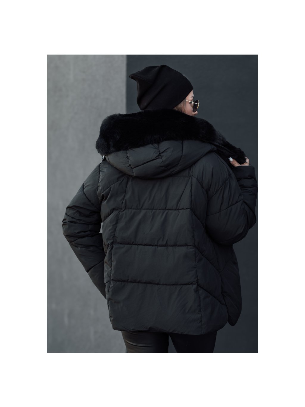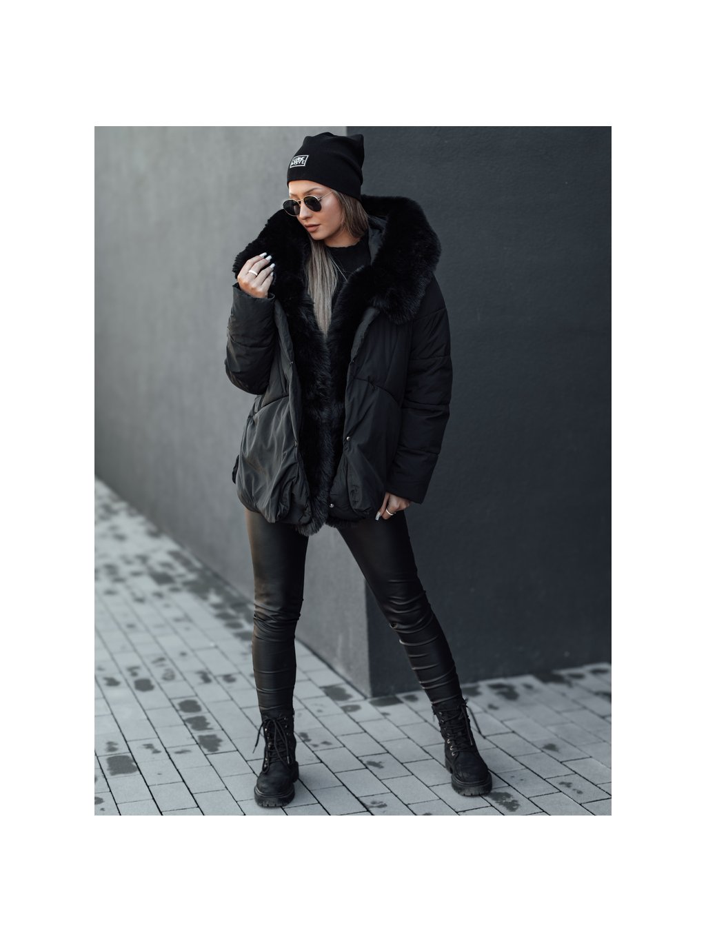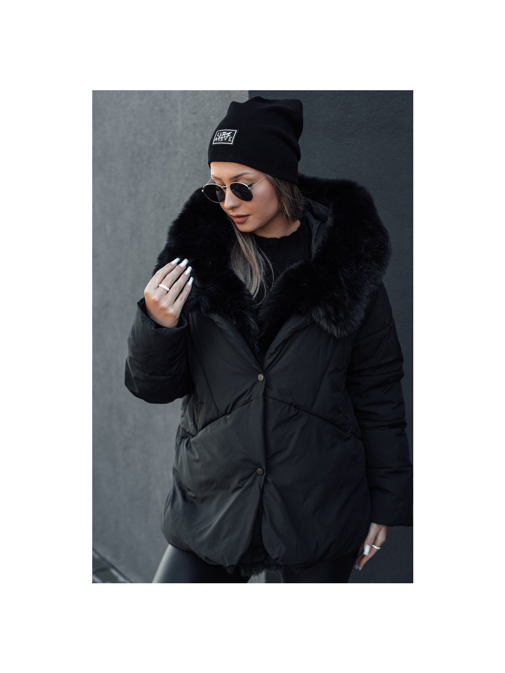 Černá dámská zimní bunda s kožíškem LUNAVI