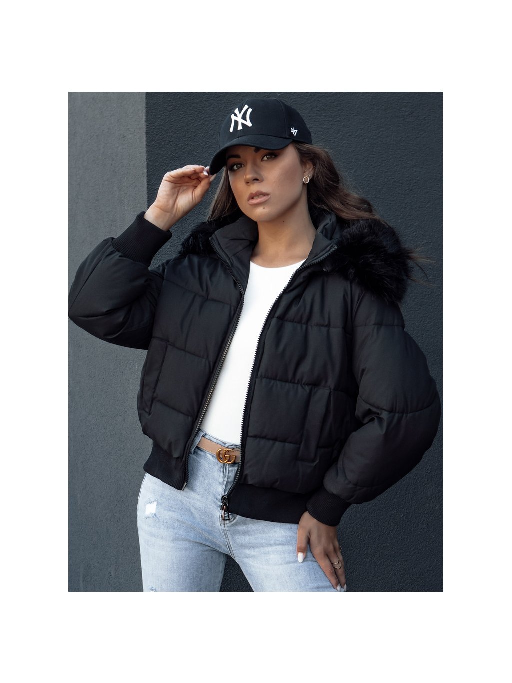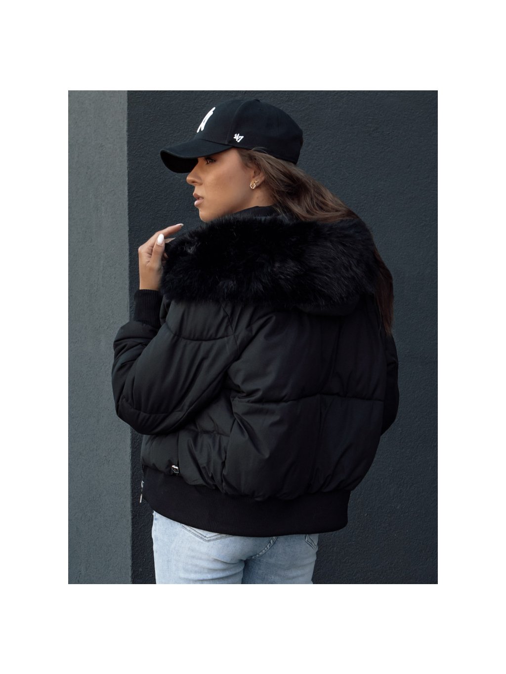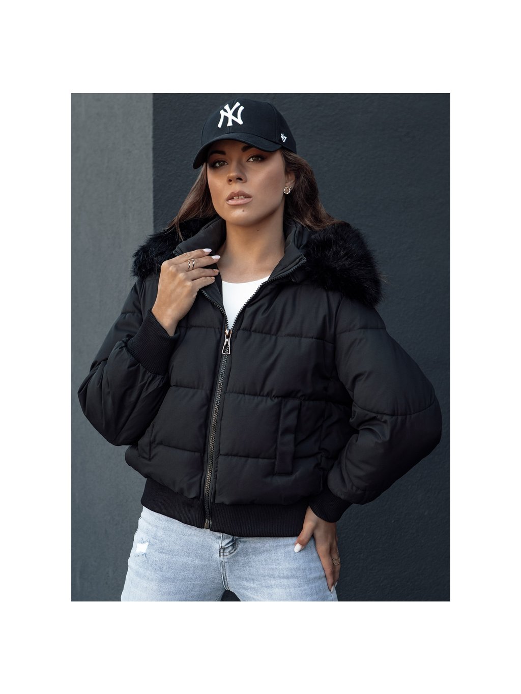 Černá dámská zimní prošívaná bunda s kožíškem na kapuci COLDPACK