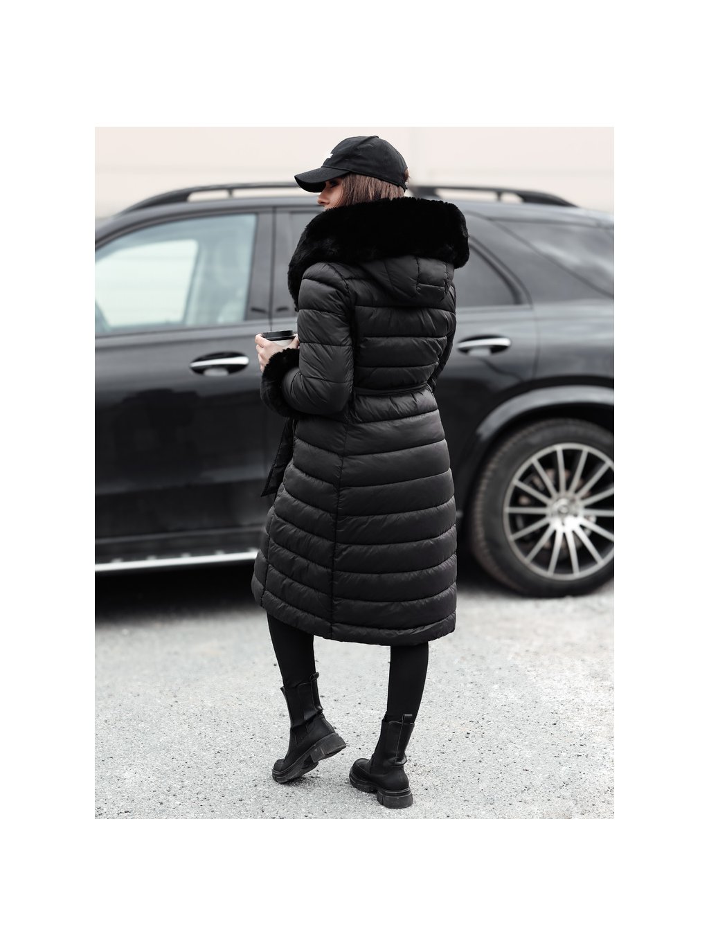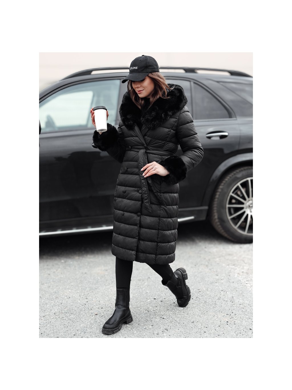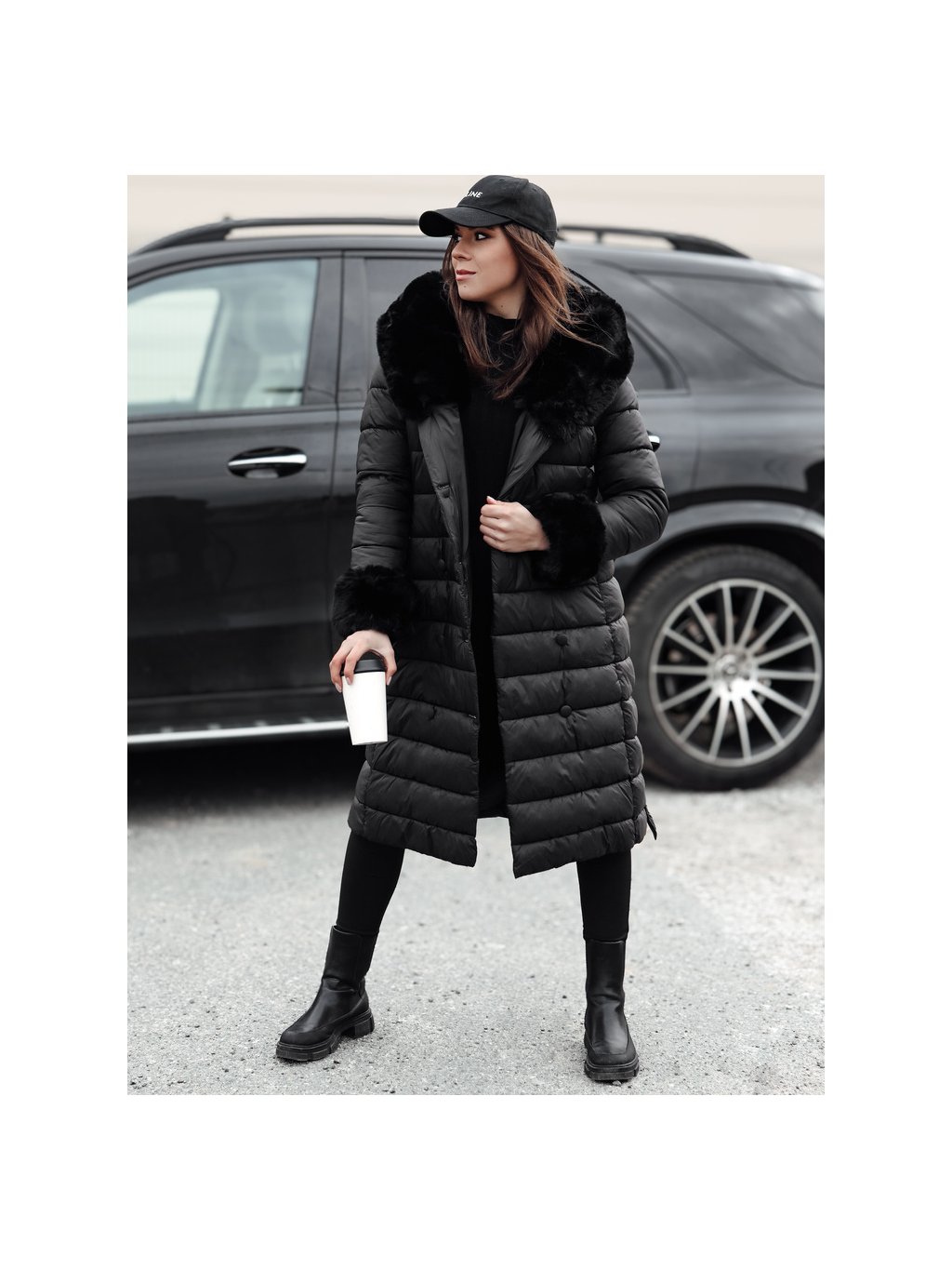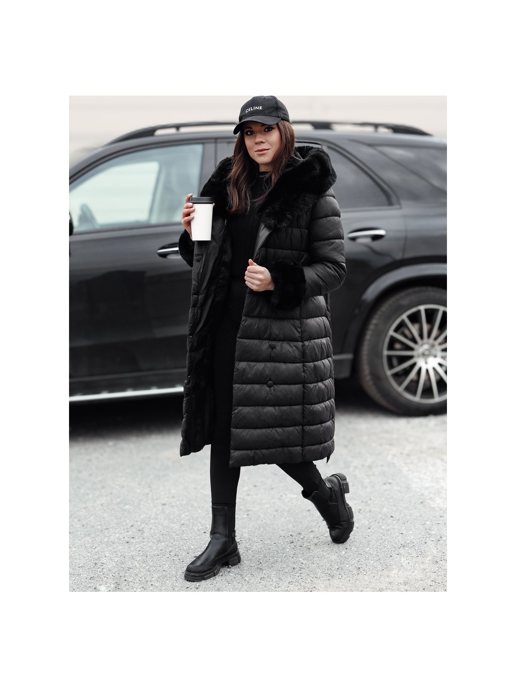 Černá dlouhá dámská prošívaná bunda ZAELEGANTE