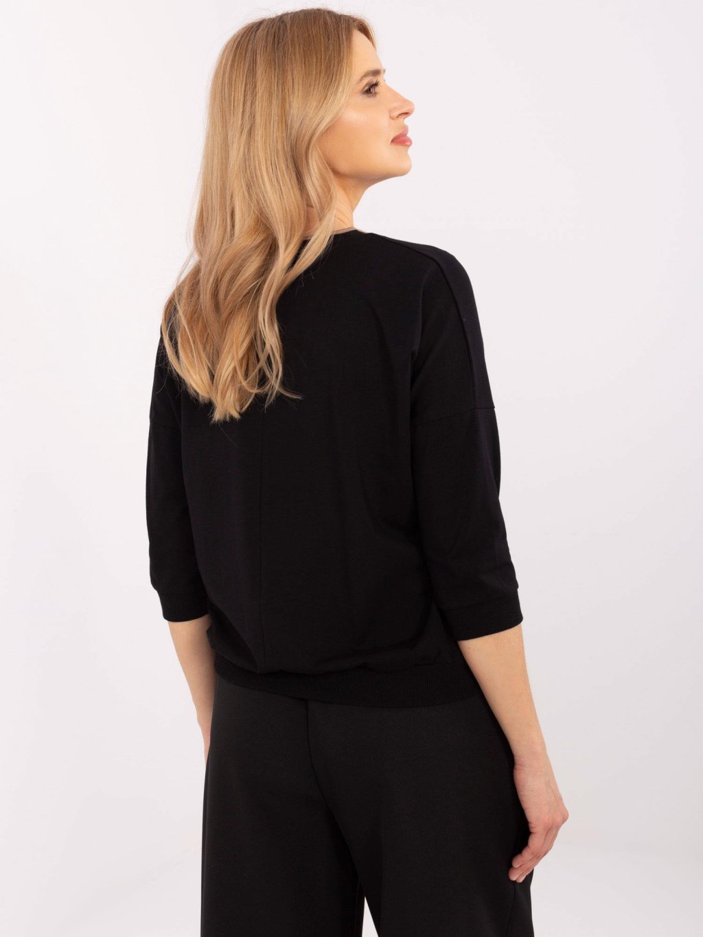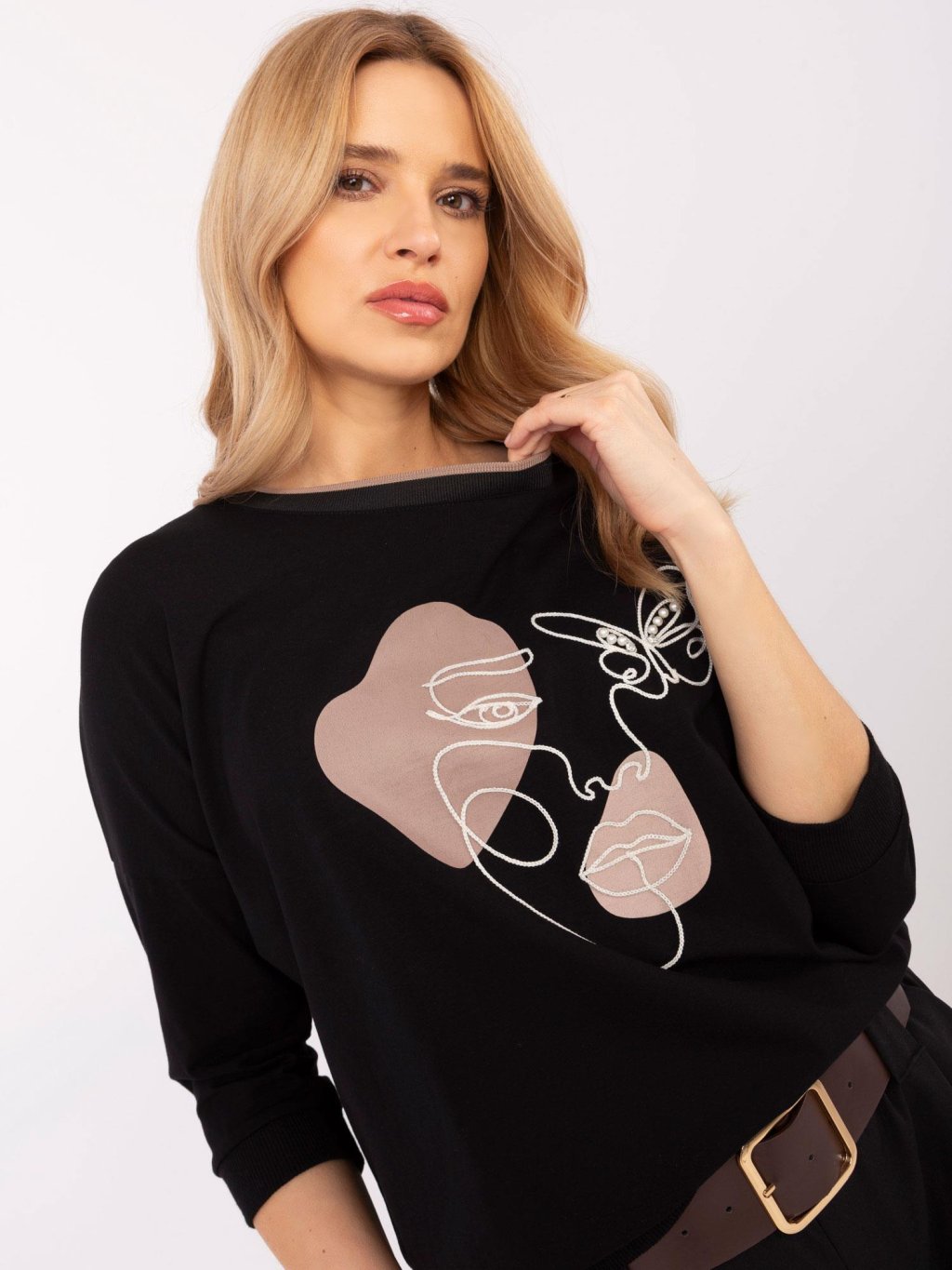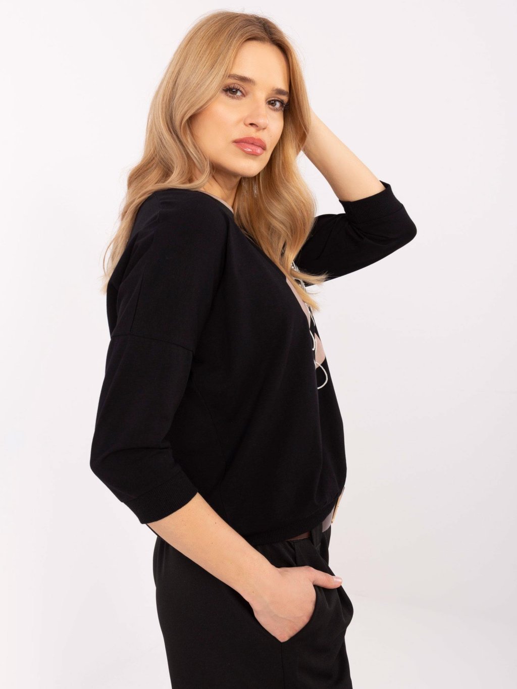 Modelka na obrázcích je vysoká 175 cm, obvod přes prsa má 90 cm, obvod pasu 66 cm a boky 94 cm.