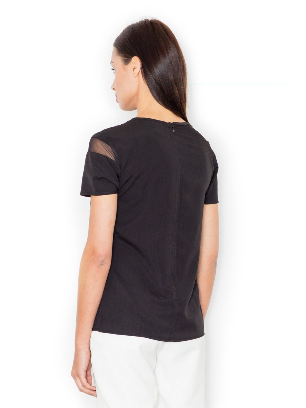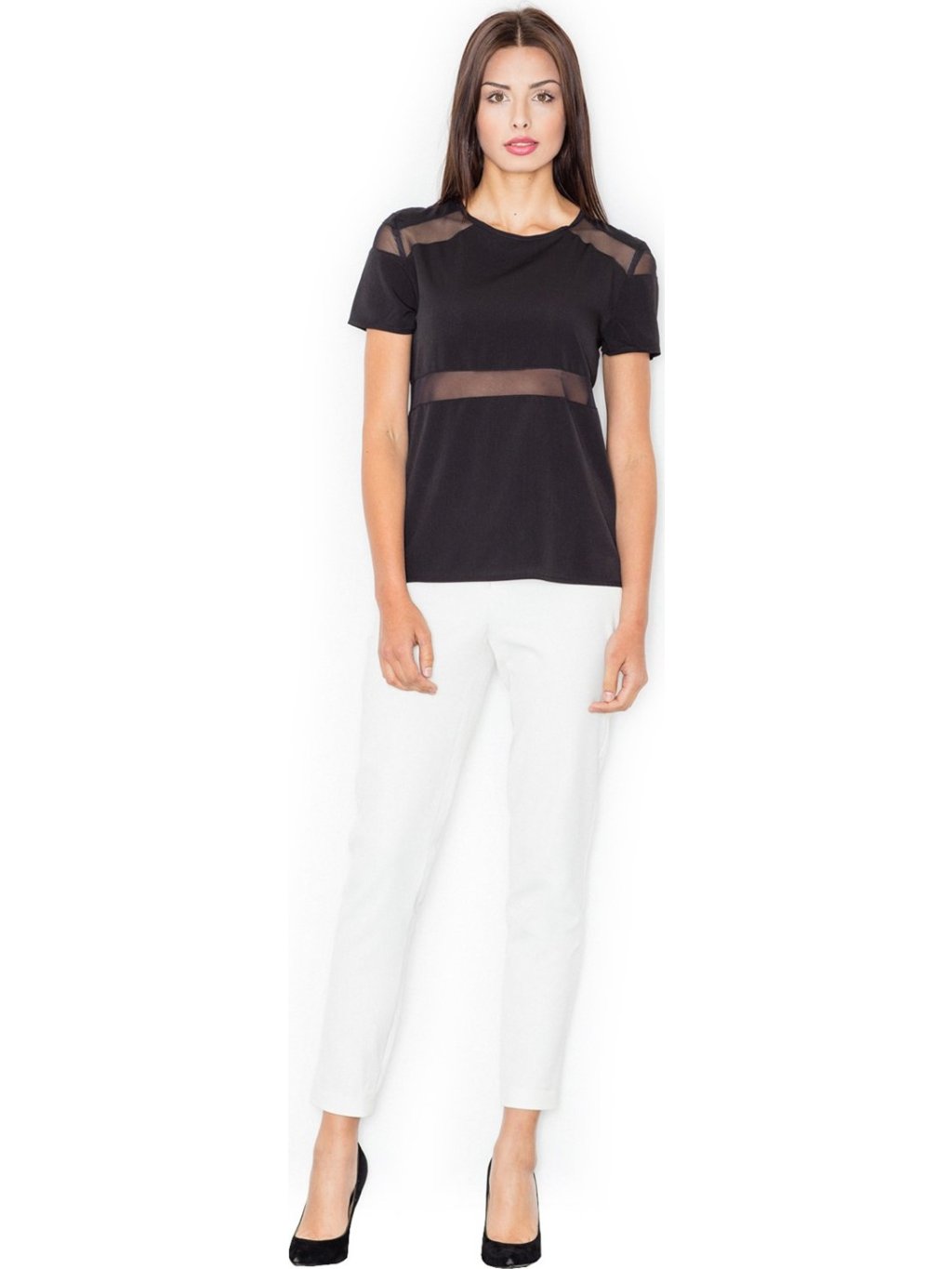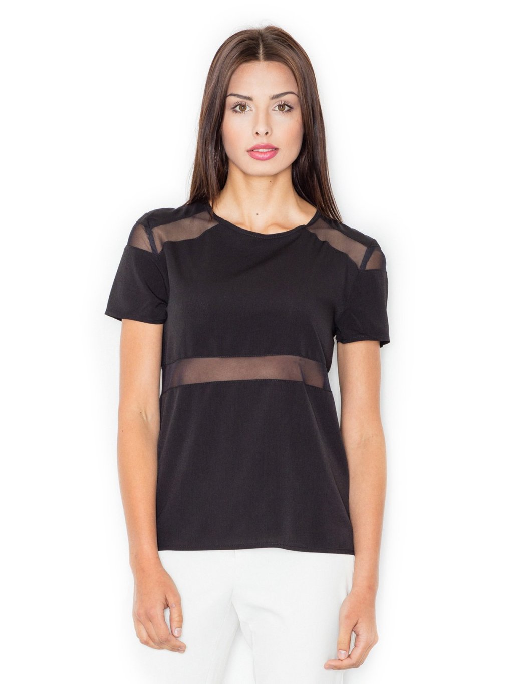 Hladká halenka bez potisku s dekorativními průsvitnými proužky.