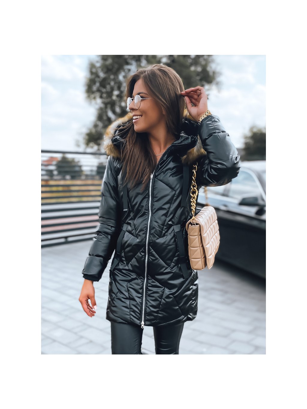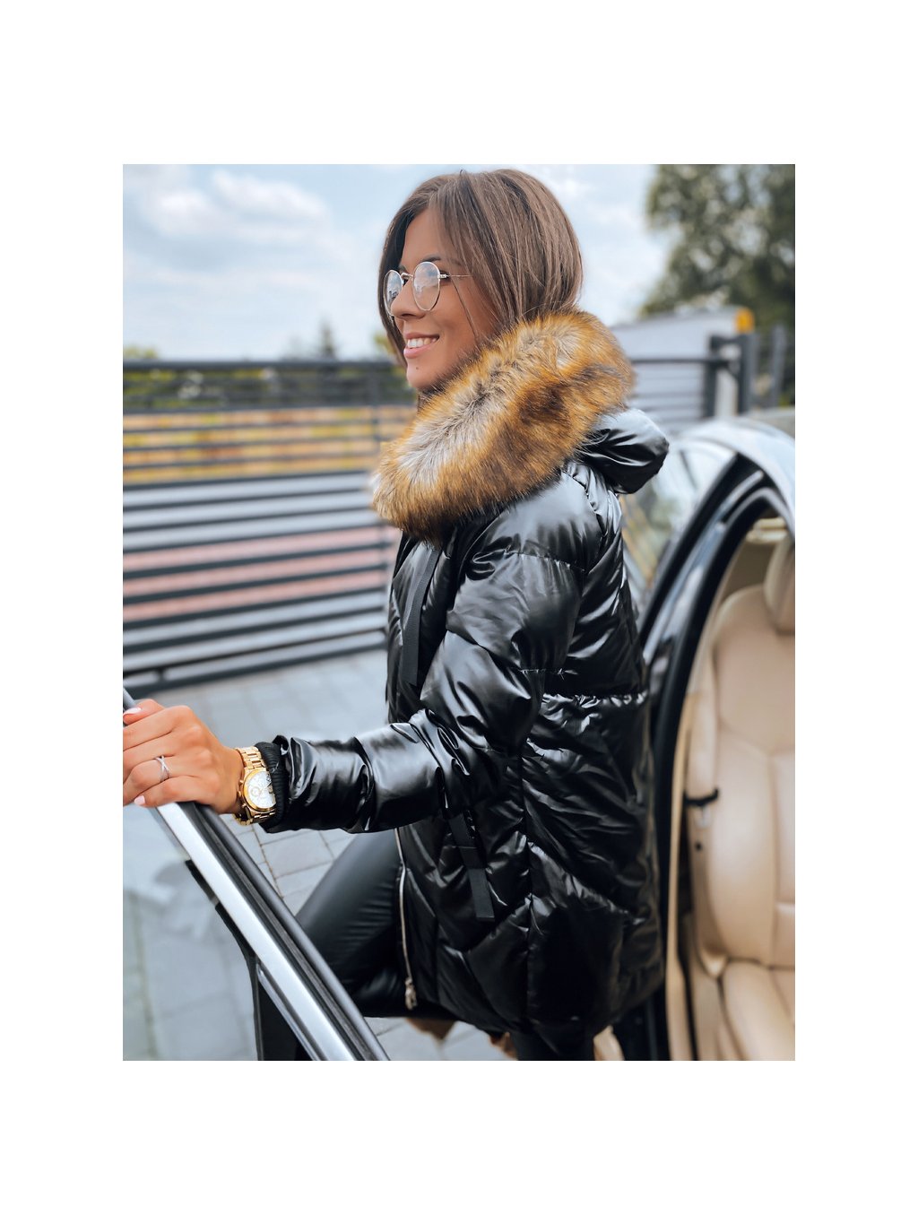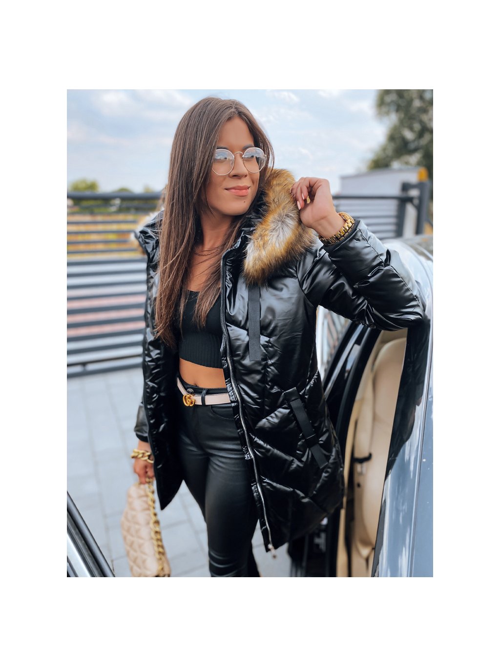 Černá lesklá dlouhá bunda ROYAL
