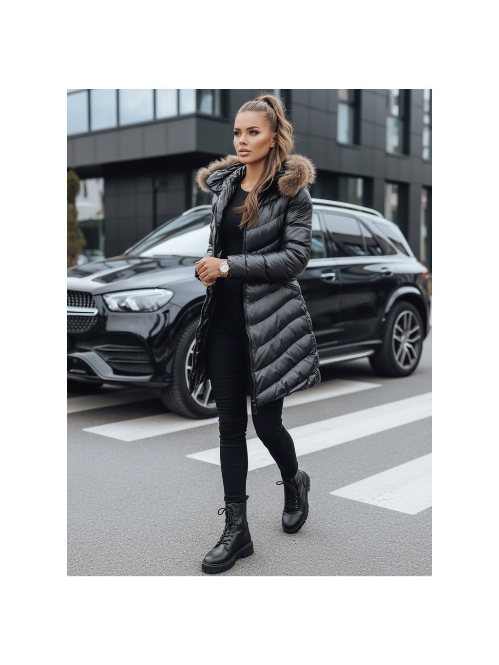 Černá lesklá dlouhá prošívaná bunda PREMIUM