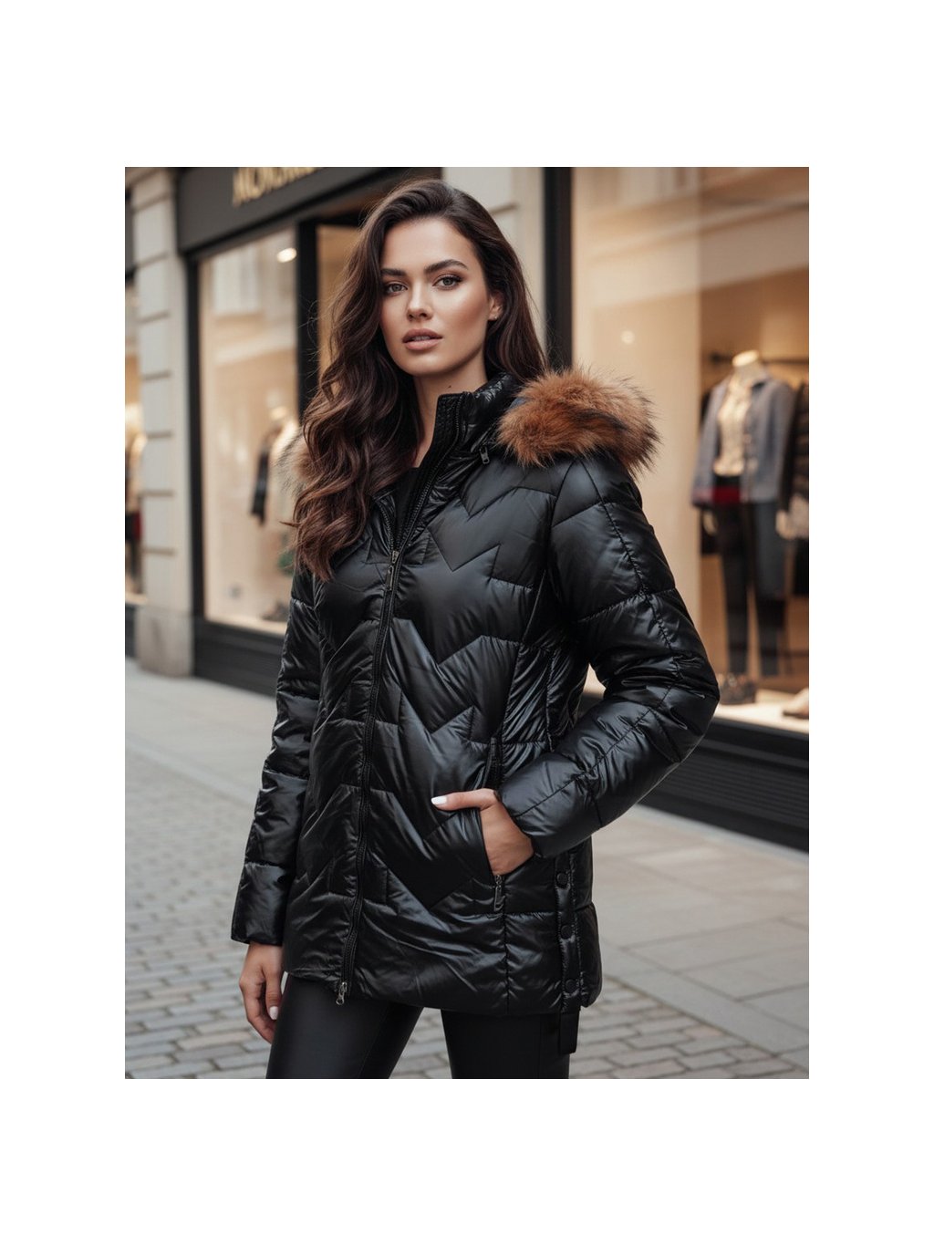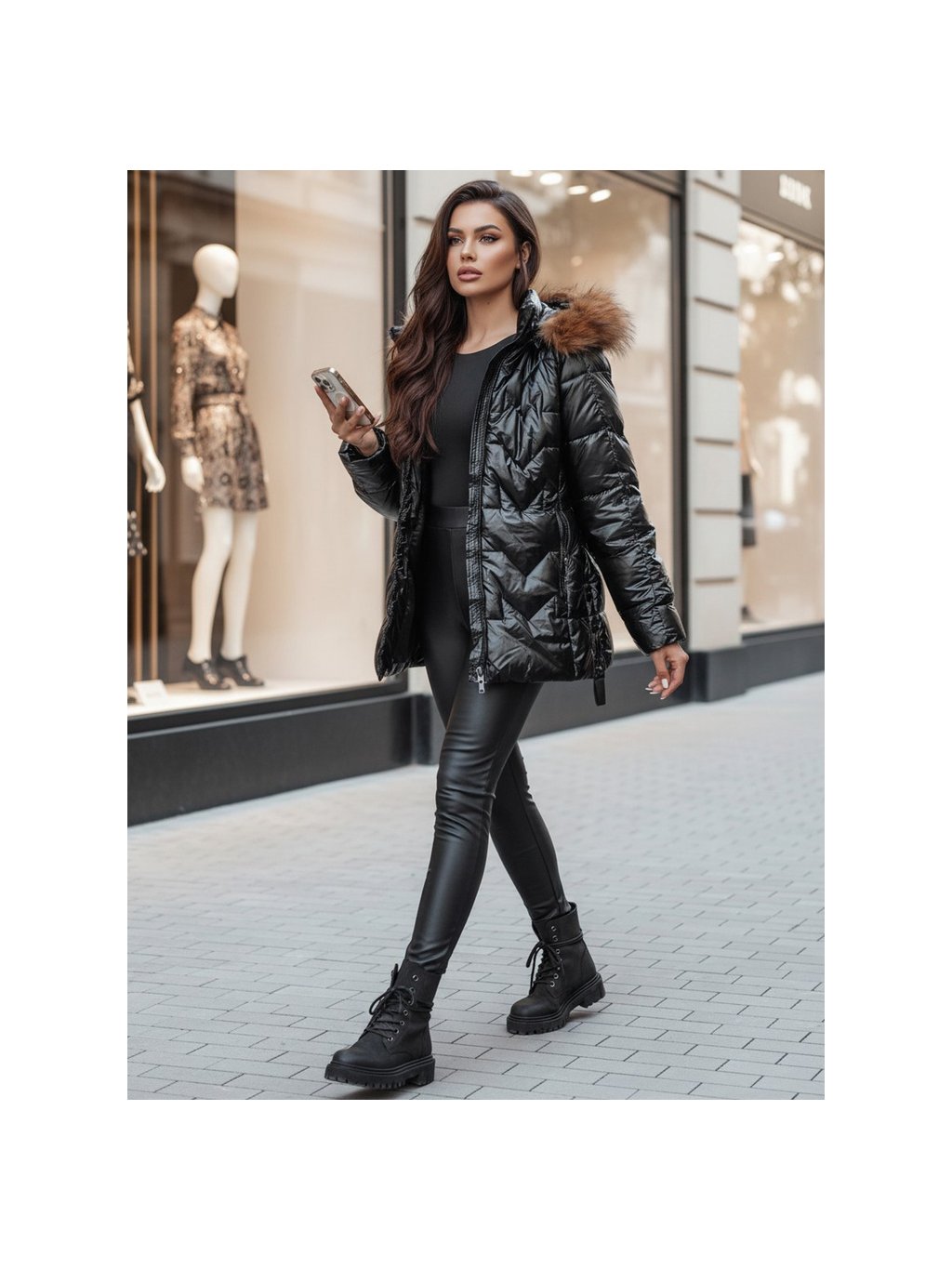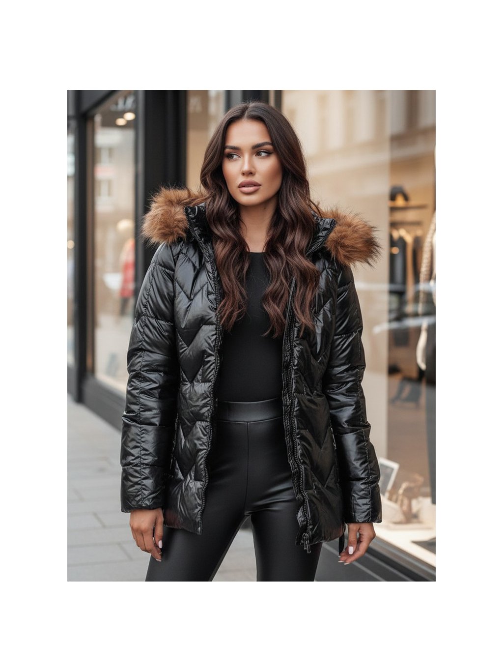 Černá lesklá krátká bunda LANE
