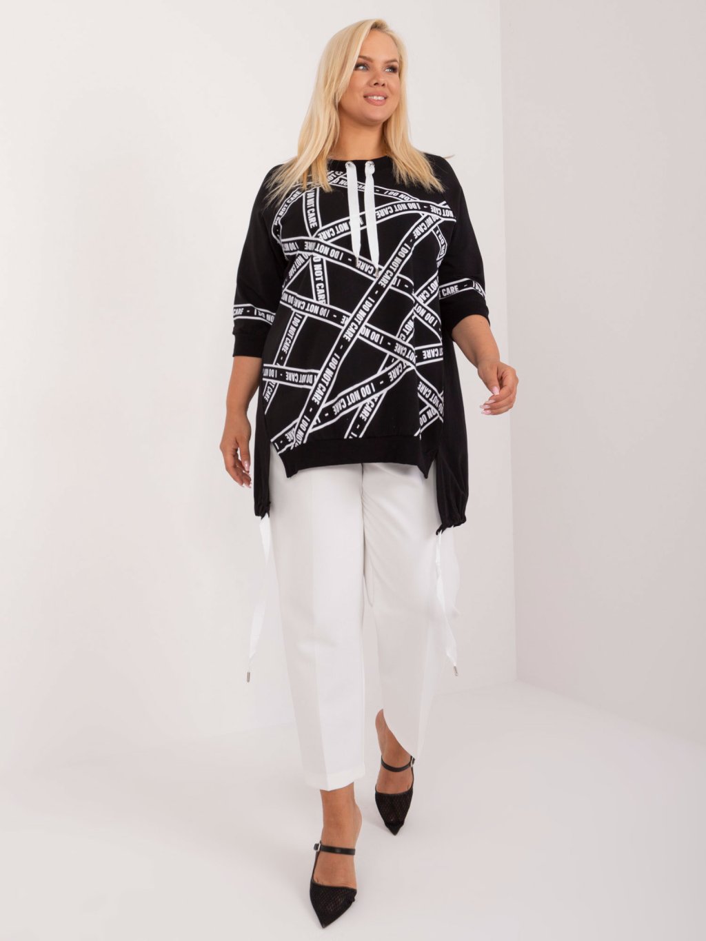 Černá mikinová tunika s potiskem a 3/4 rukávem