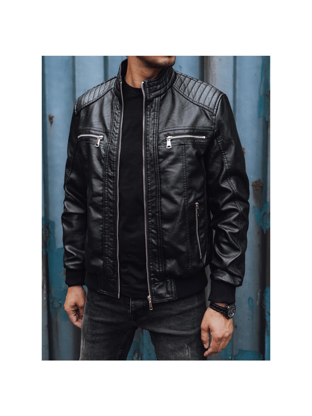 Černá pánská koženková bunda