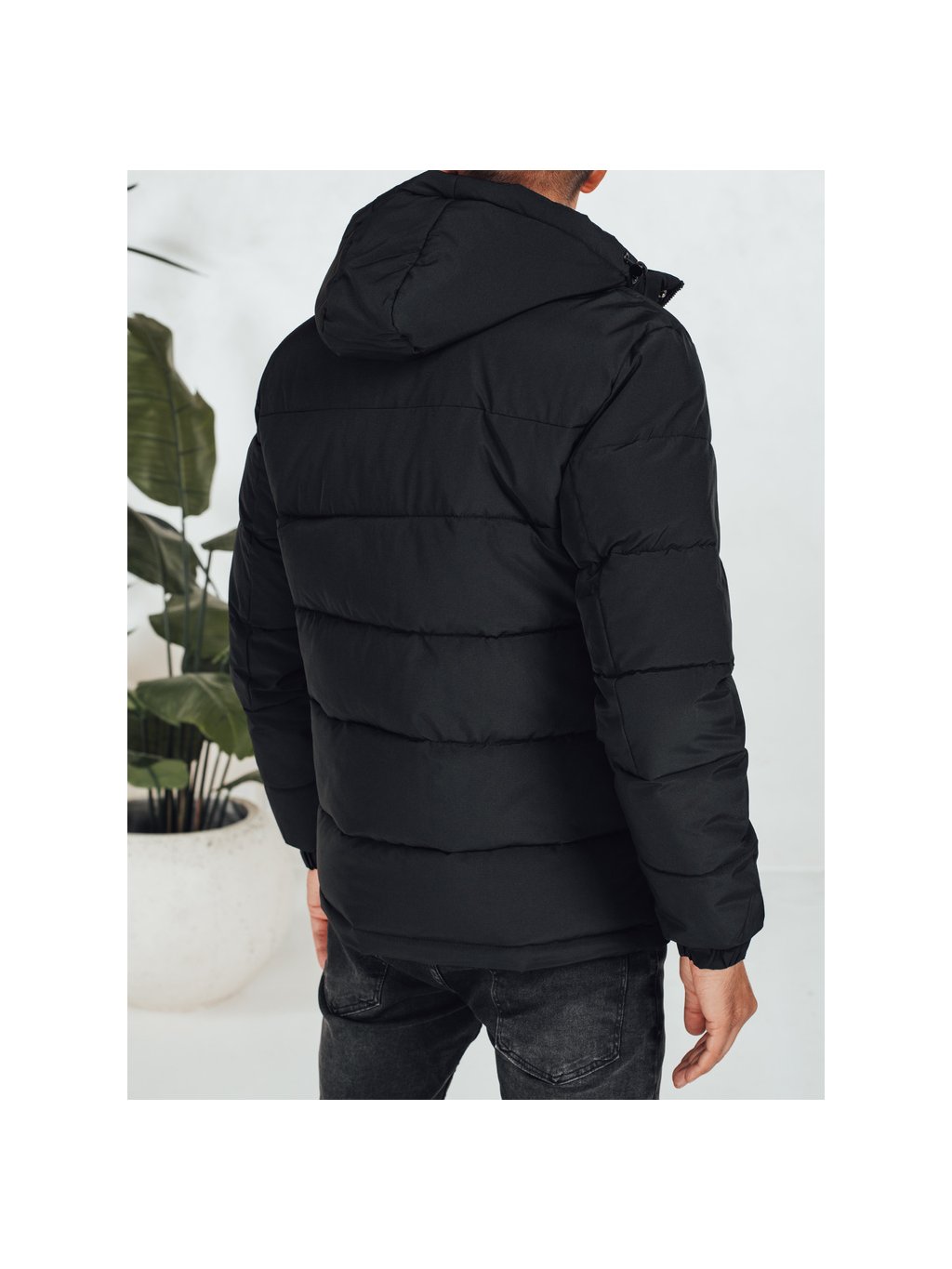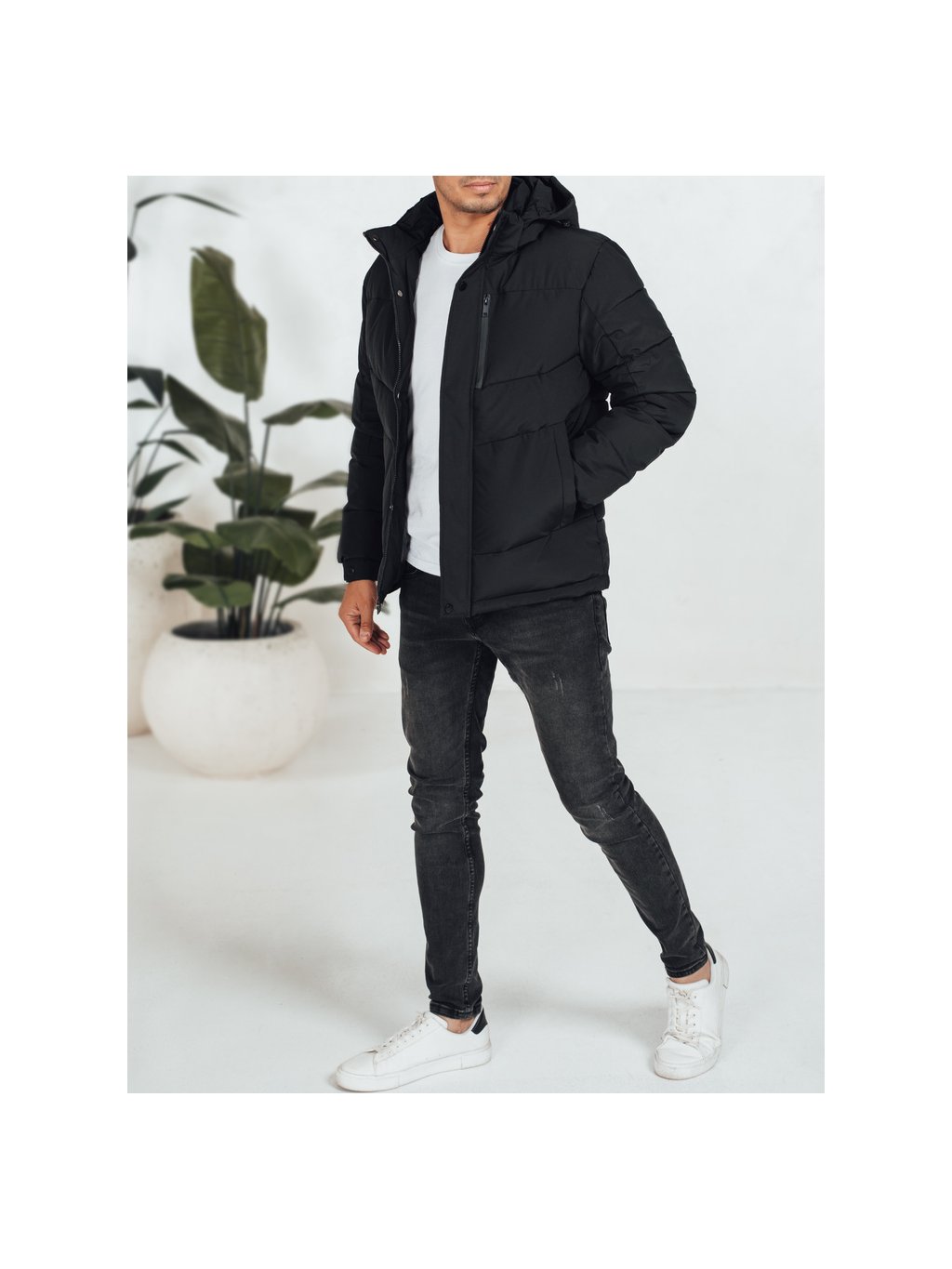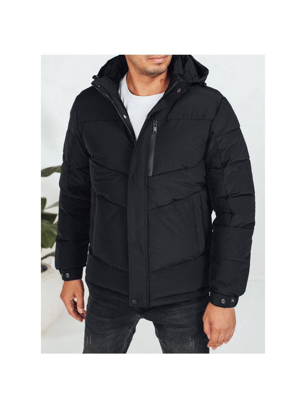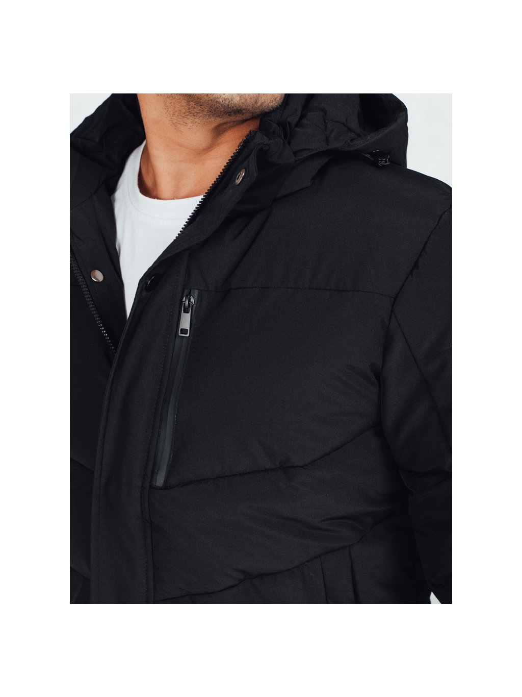 Černá pánská prošívaná zimní bunda s odnímatelnou kapucí