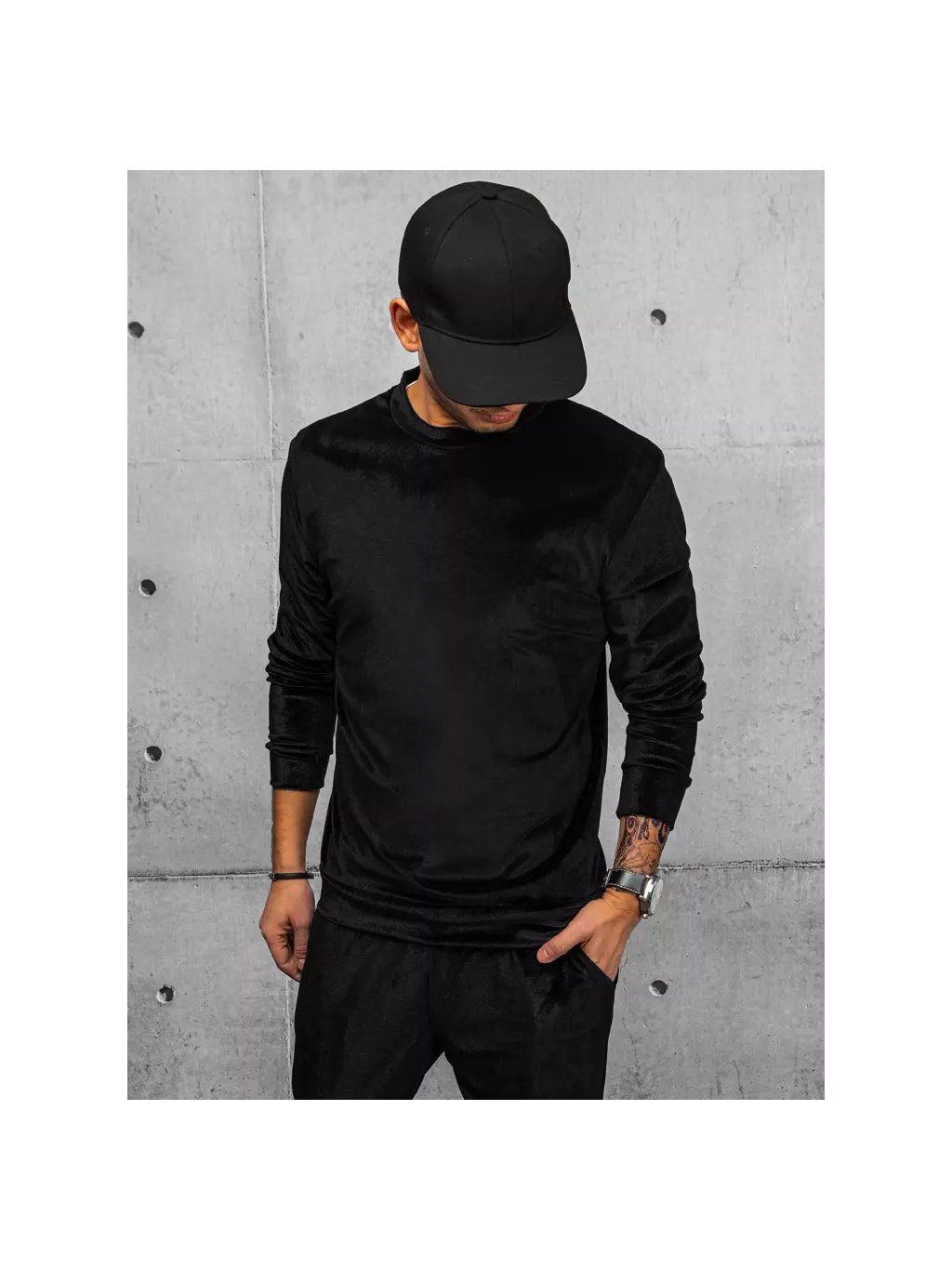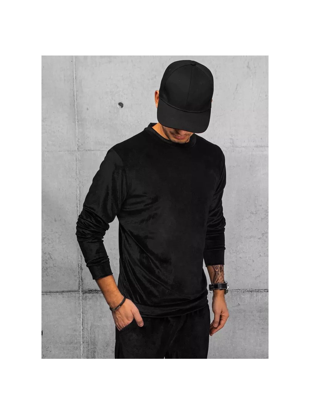 Černá velurová basic mikina