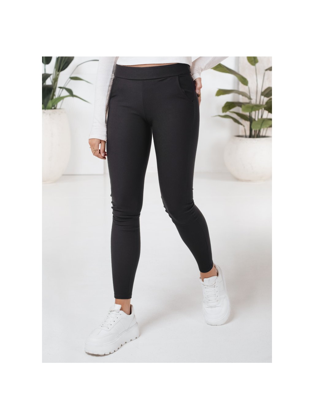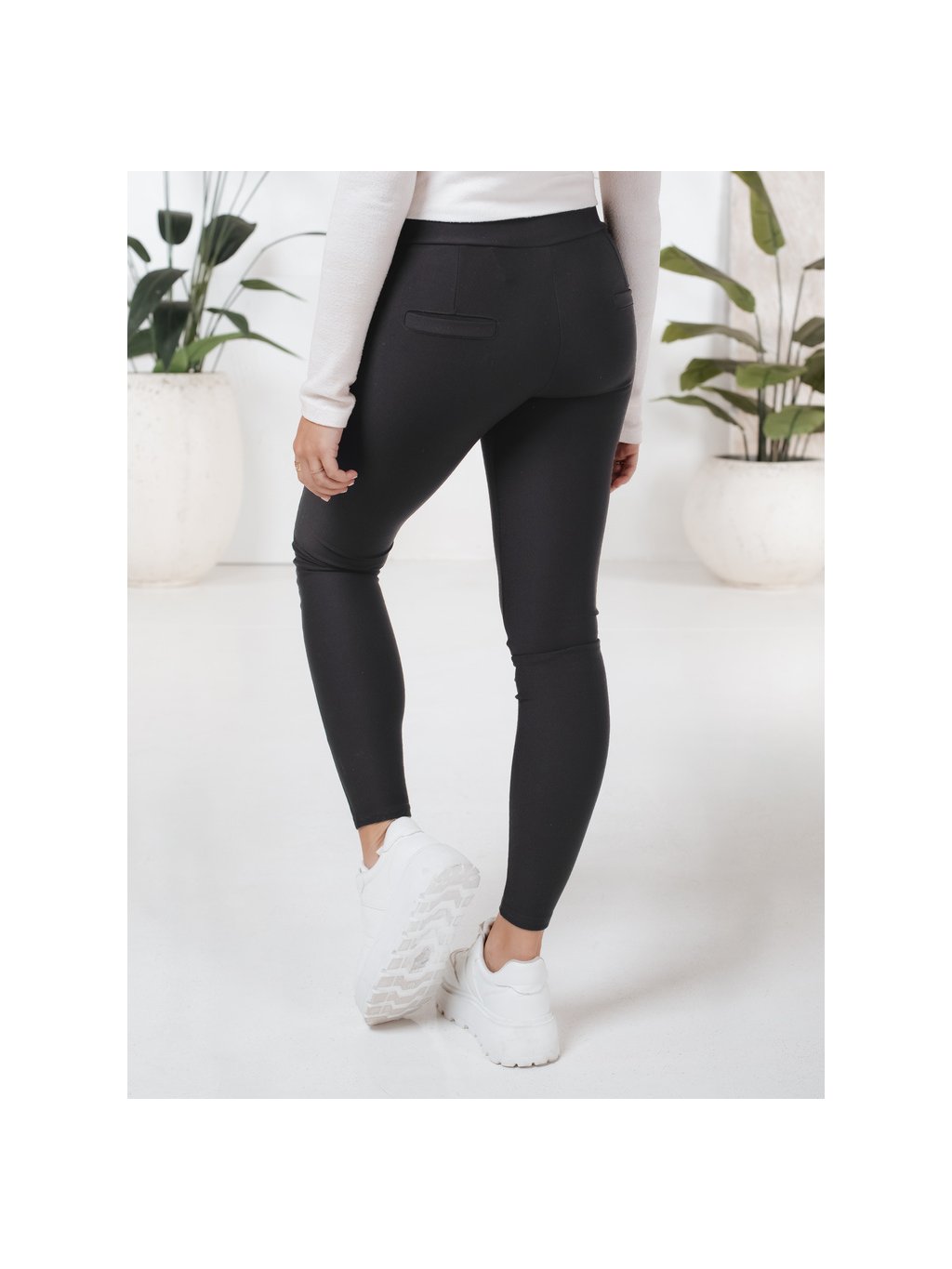 Černé dámské látkové legíny s kapsami