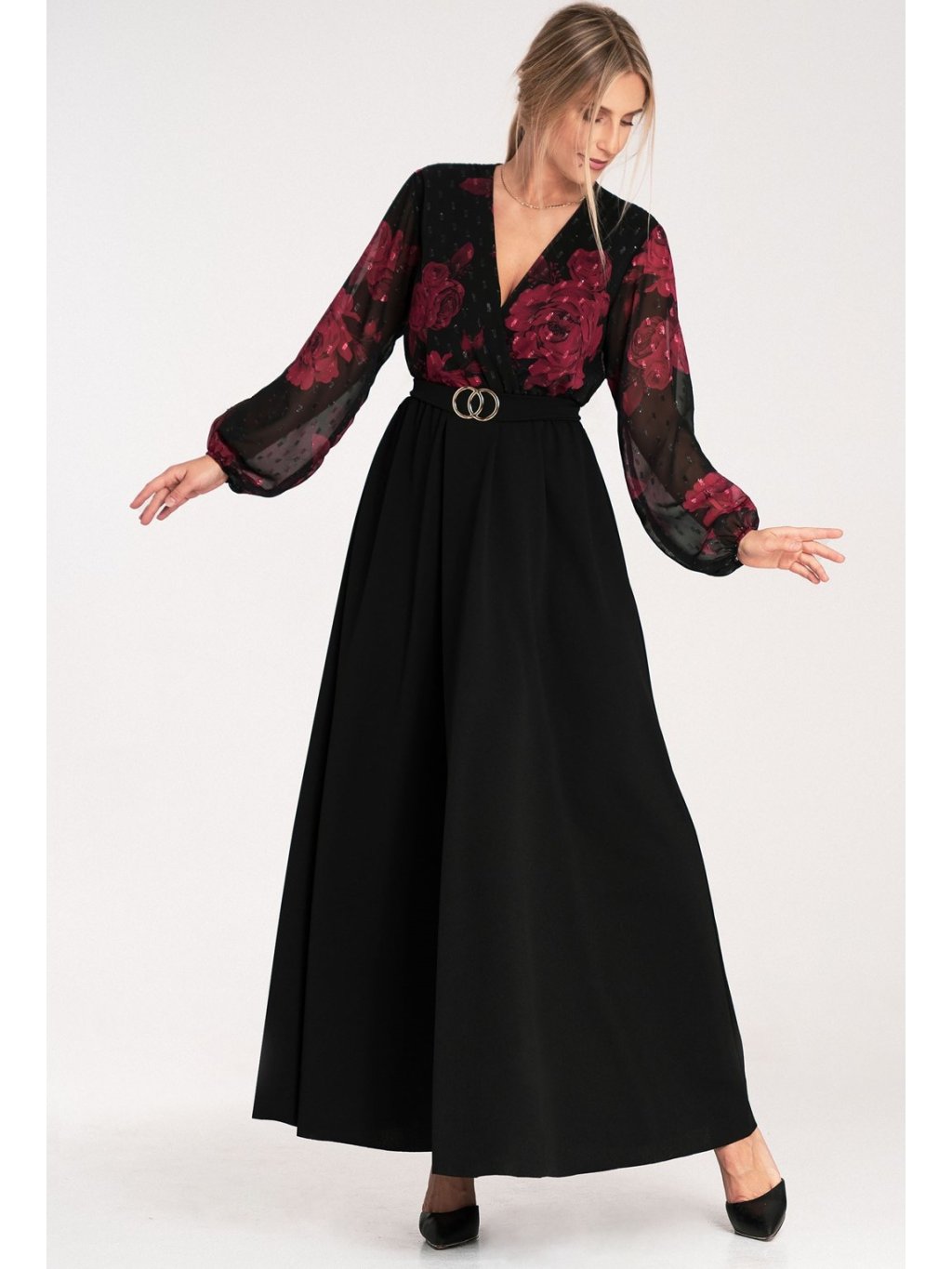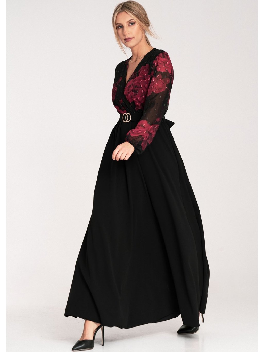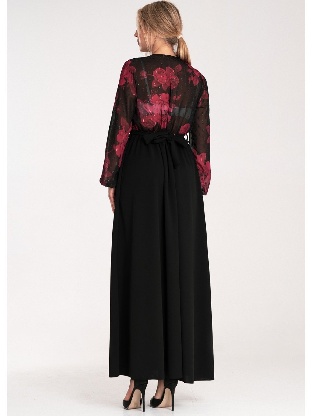 Černé dámské maxi šaty s dlouhými ozdobnými rukávy
