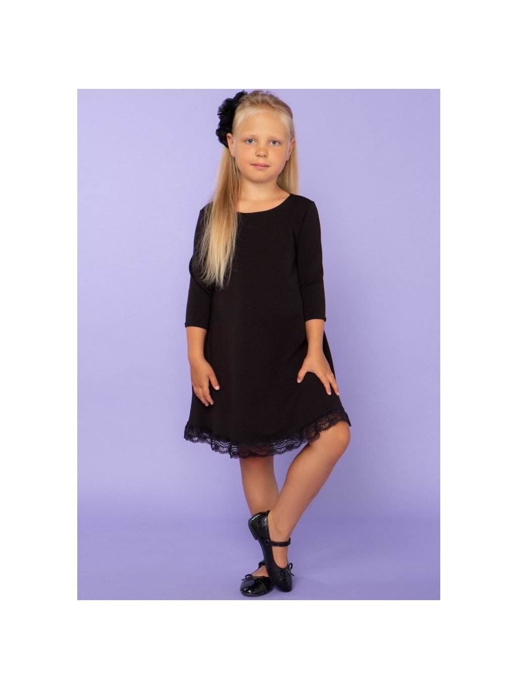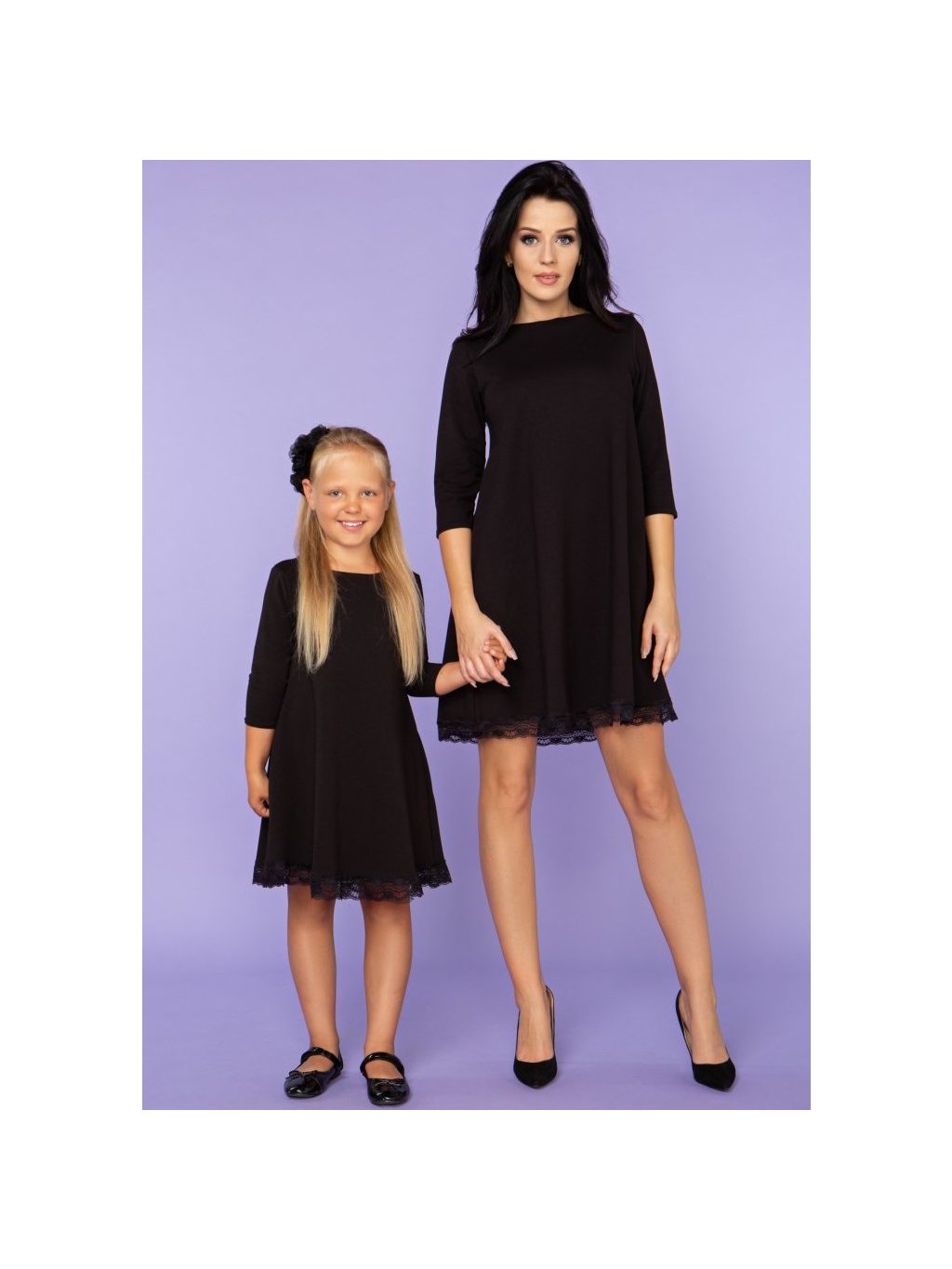 Černé dívčí šaty máma a dcera s krajkou ve spodní části