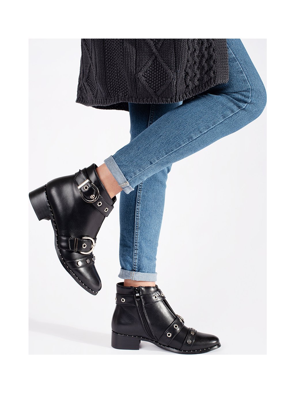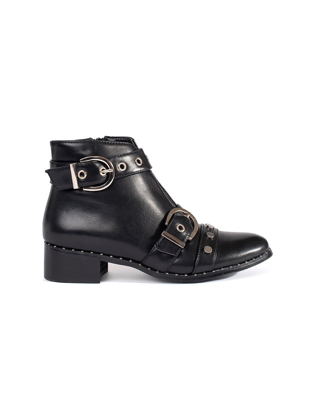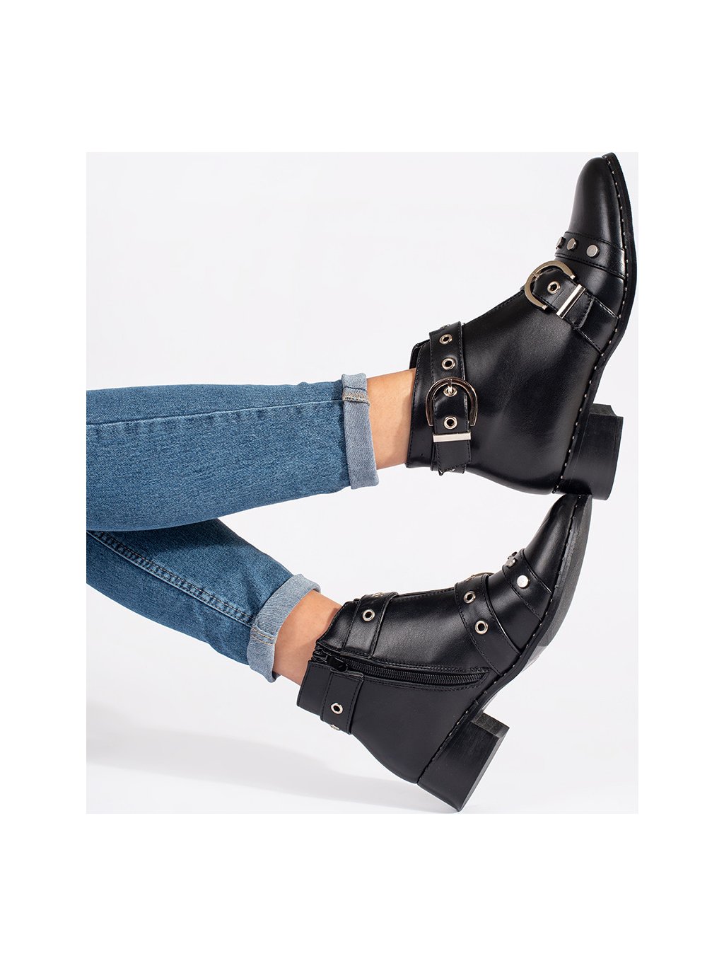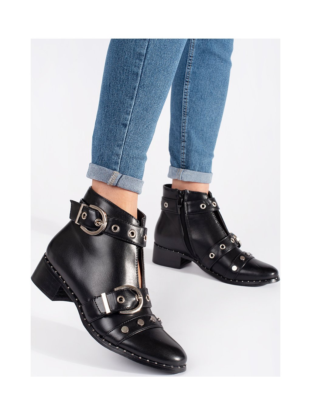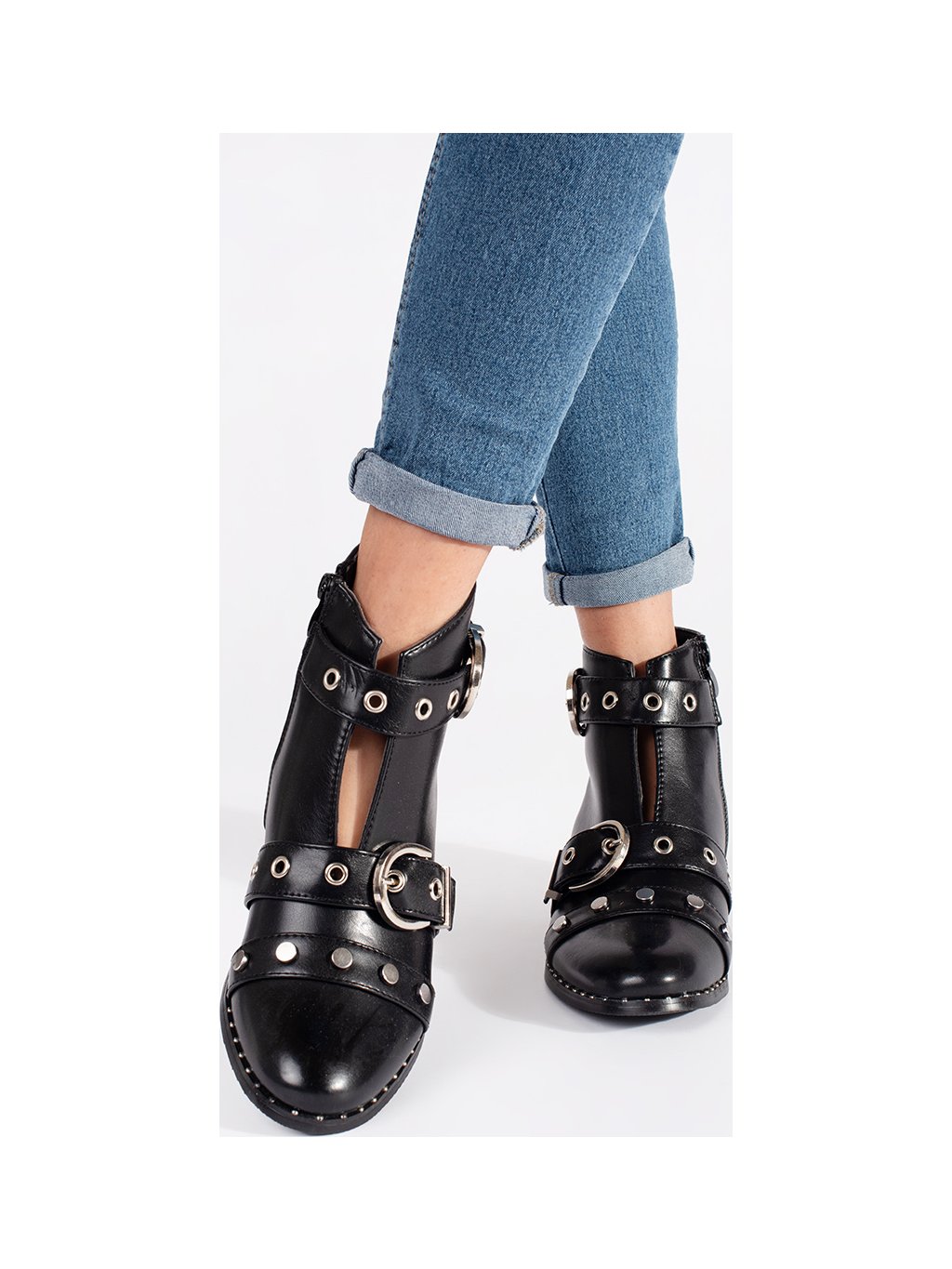Černé kotníkové boty se zajímavým zdobením, podpatek 4 cm