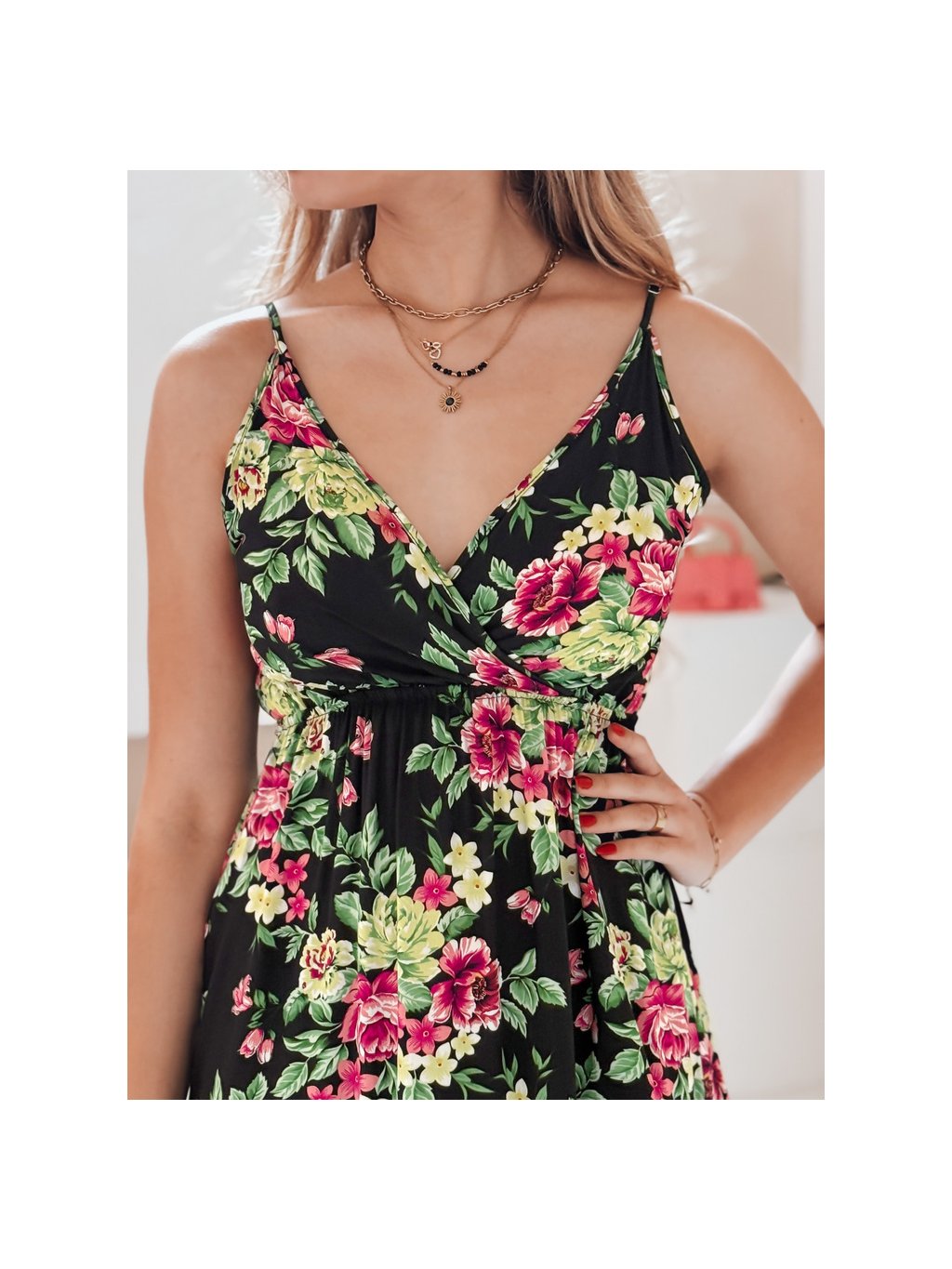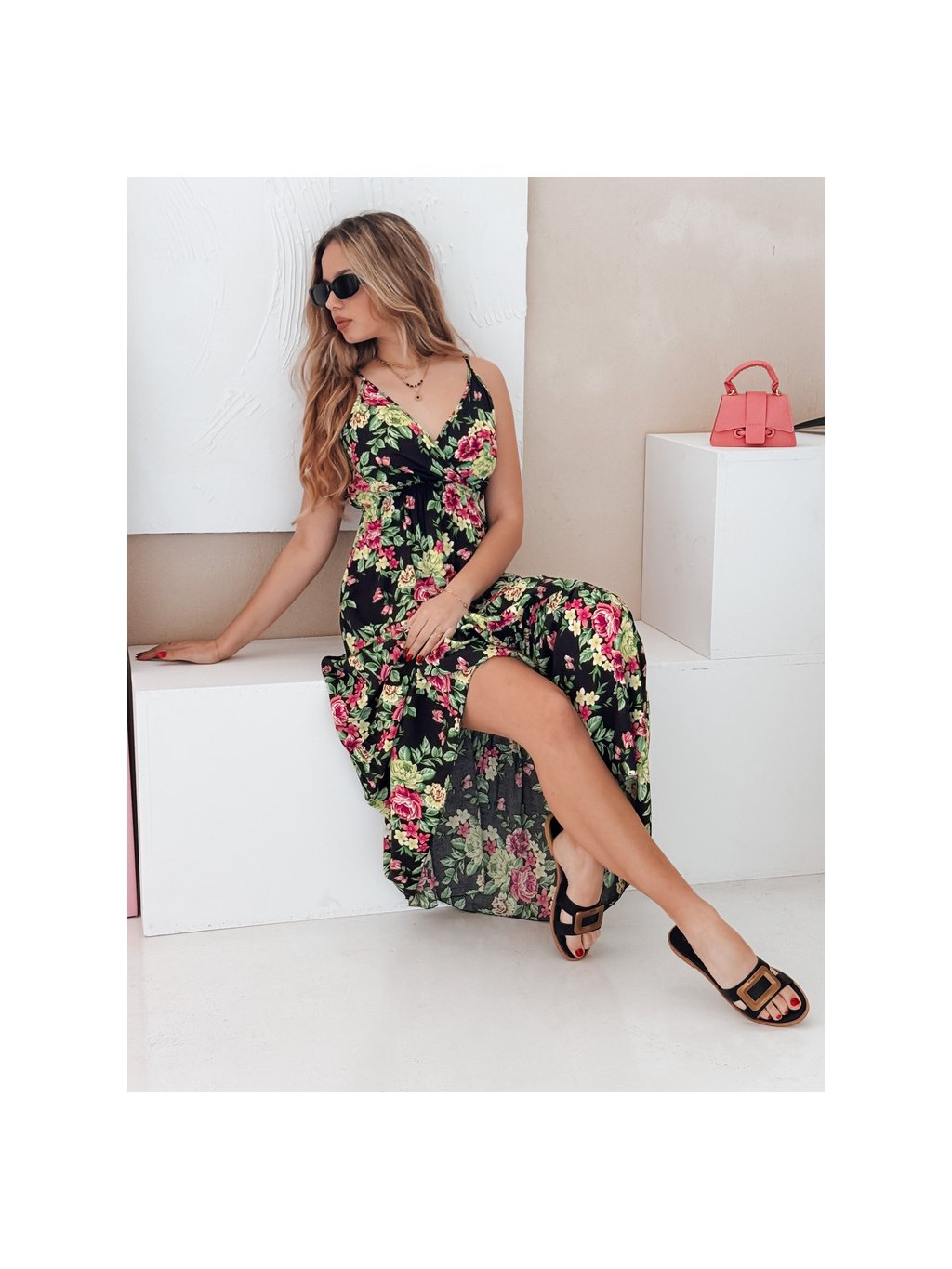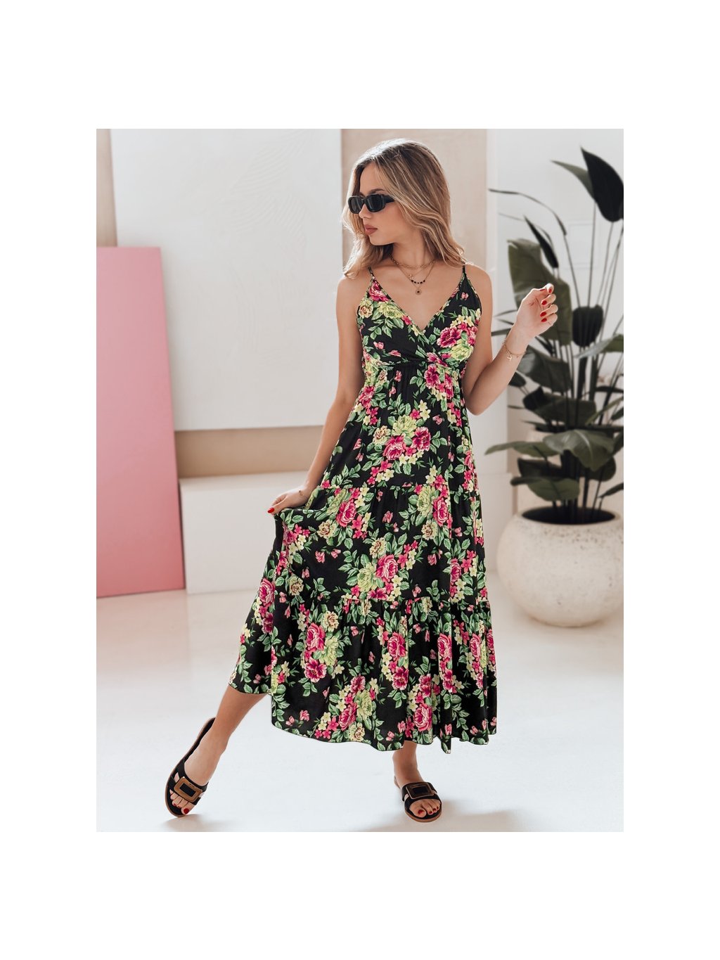Černé květované dámské maxi šaty na ramínka MISSBLOSSY