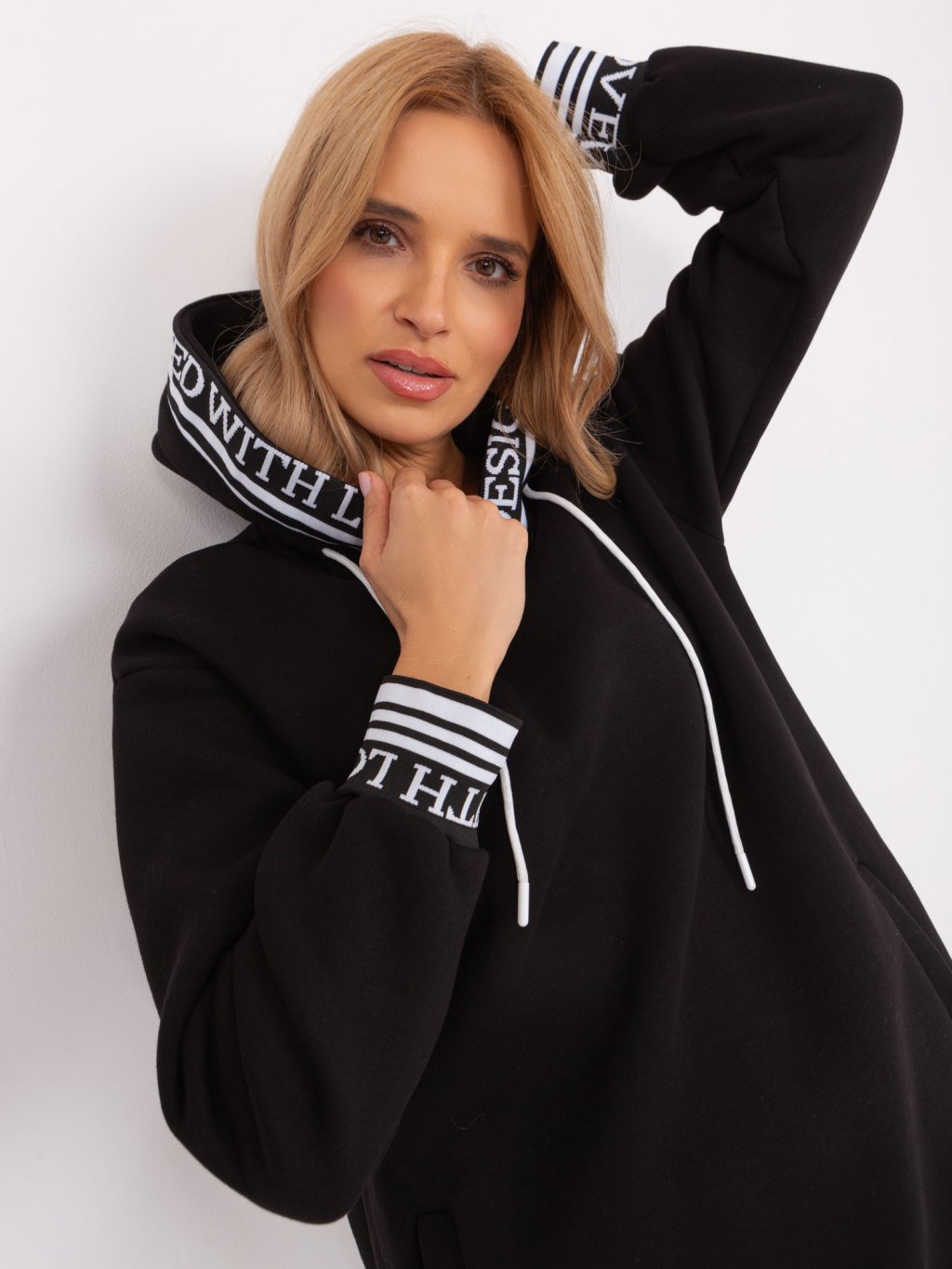Modelka na obrázcích je vysoká 175 cm, obvod přes prsa 90 cm, obvod pasu 66 cm a boky 94 cm.
