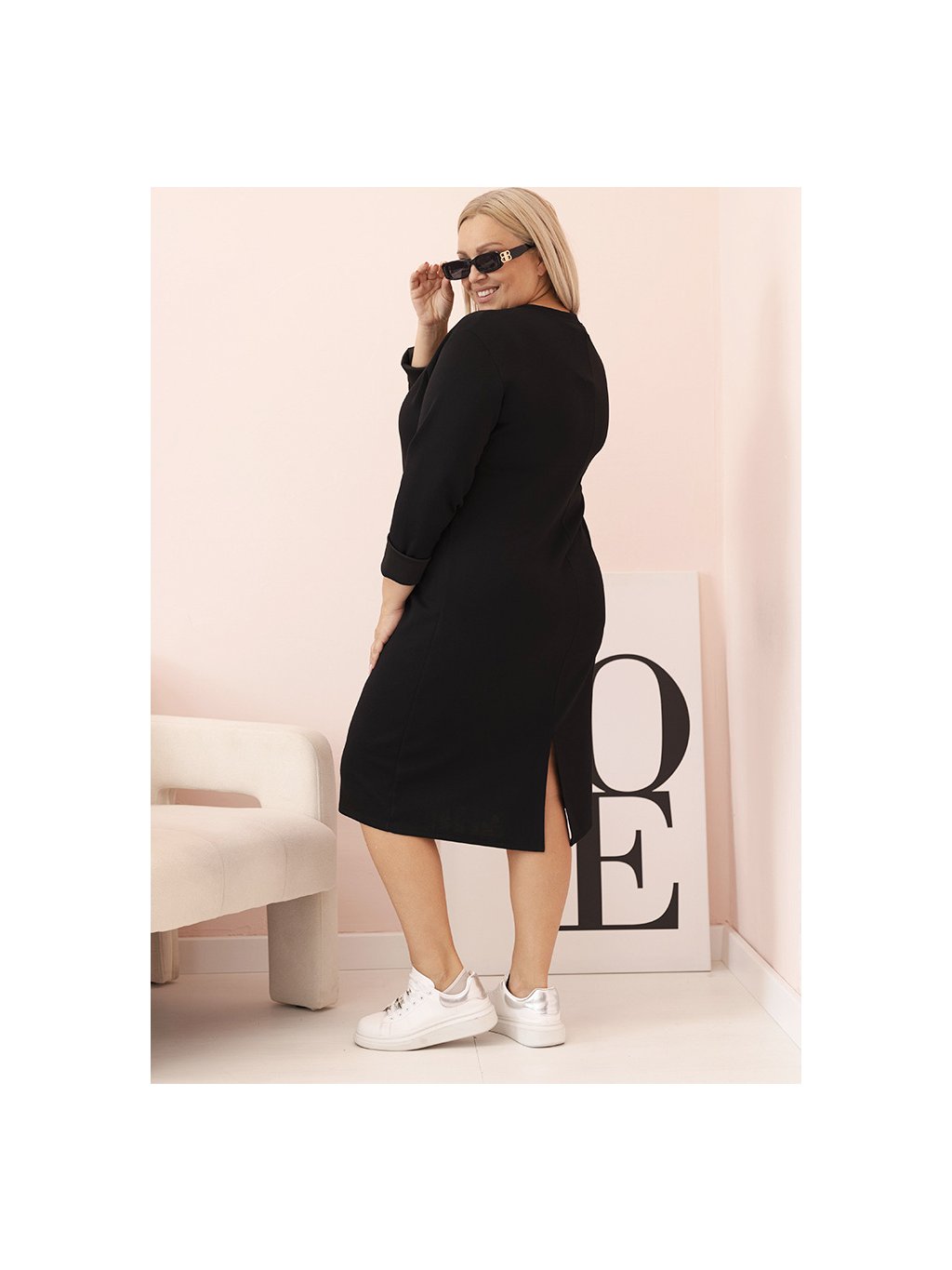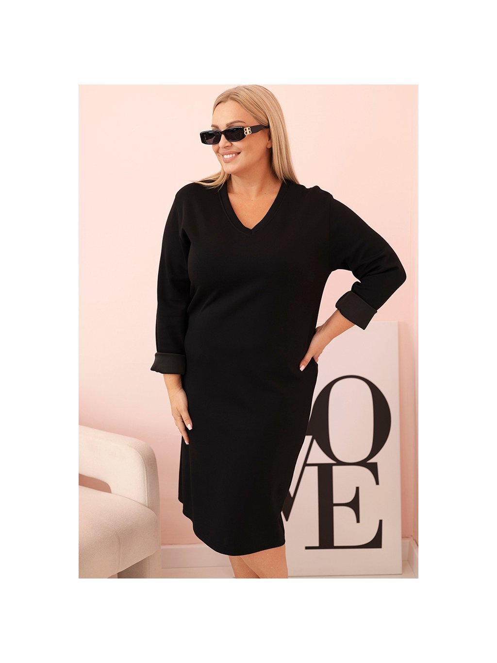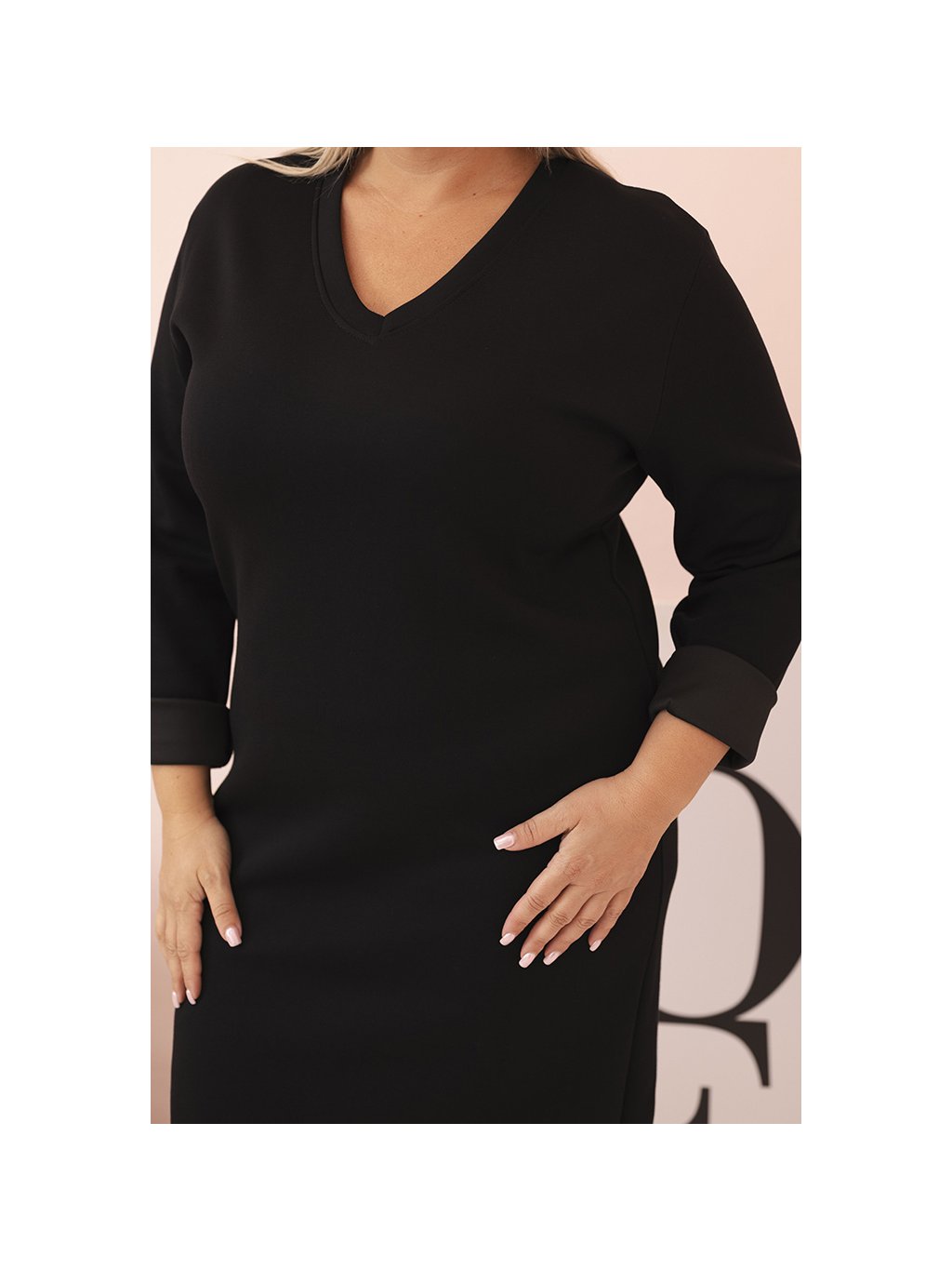 Černé Plus Size šaty s výstřihem do V a 3/4 rukávy