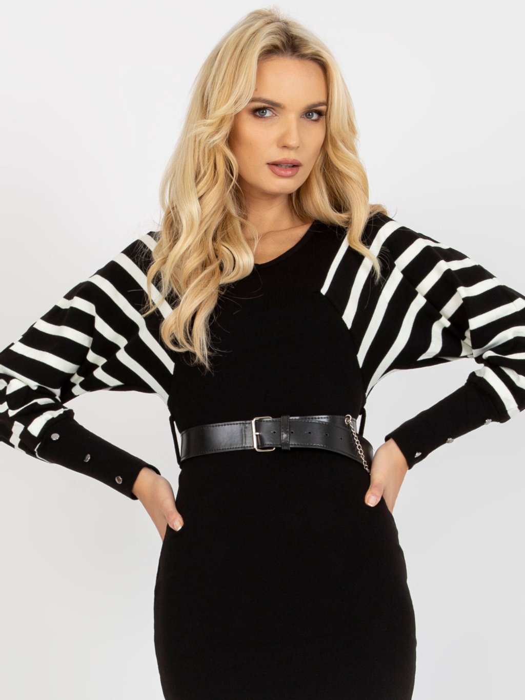 Černé šaty s pruhovanými rukávy