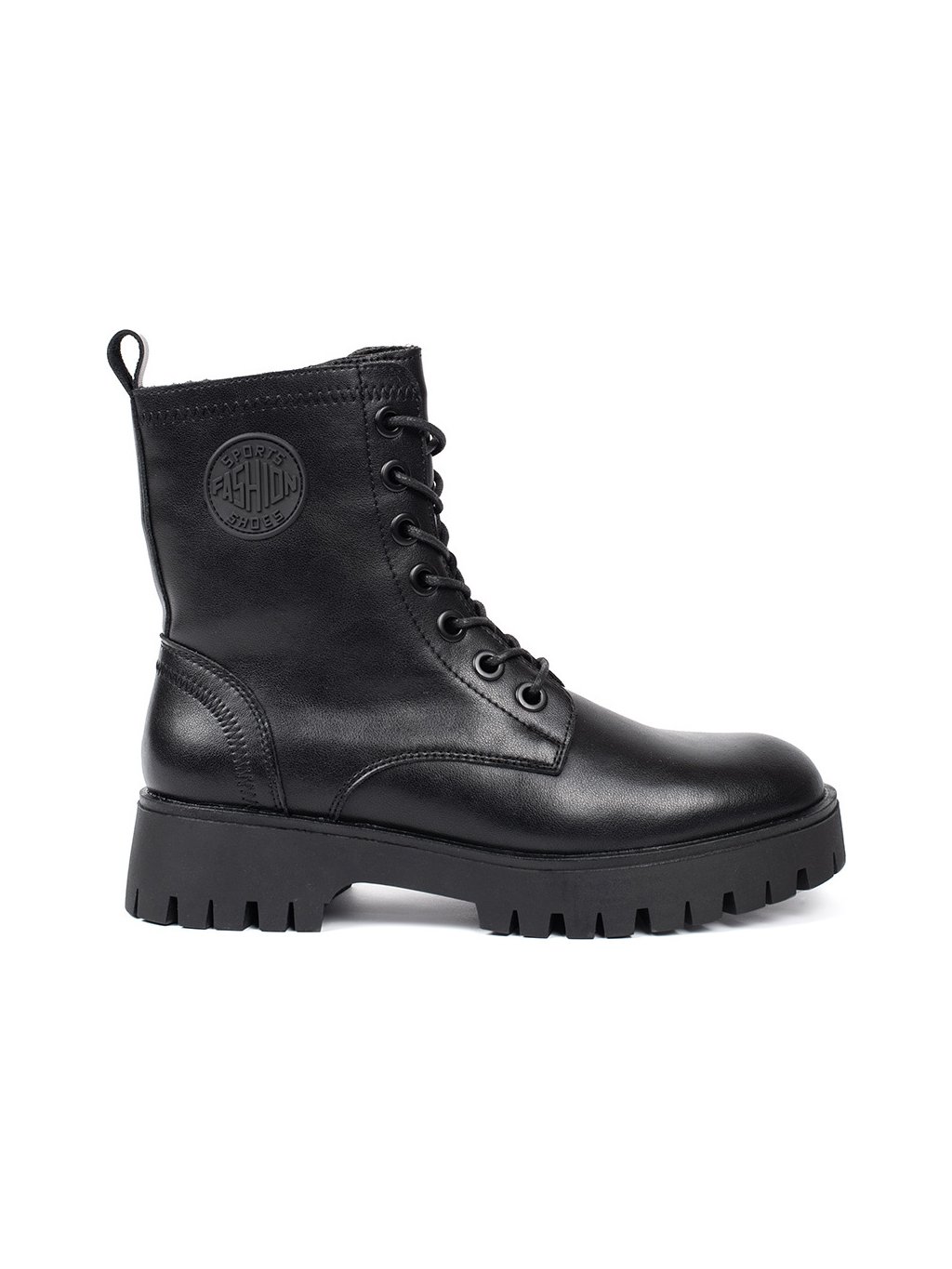 Černé šněrovací dámské kotníkové boty na platformě Sergio Leone, podpatek 4 cm