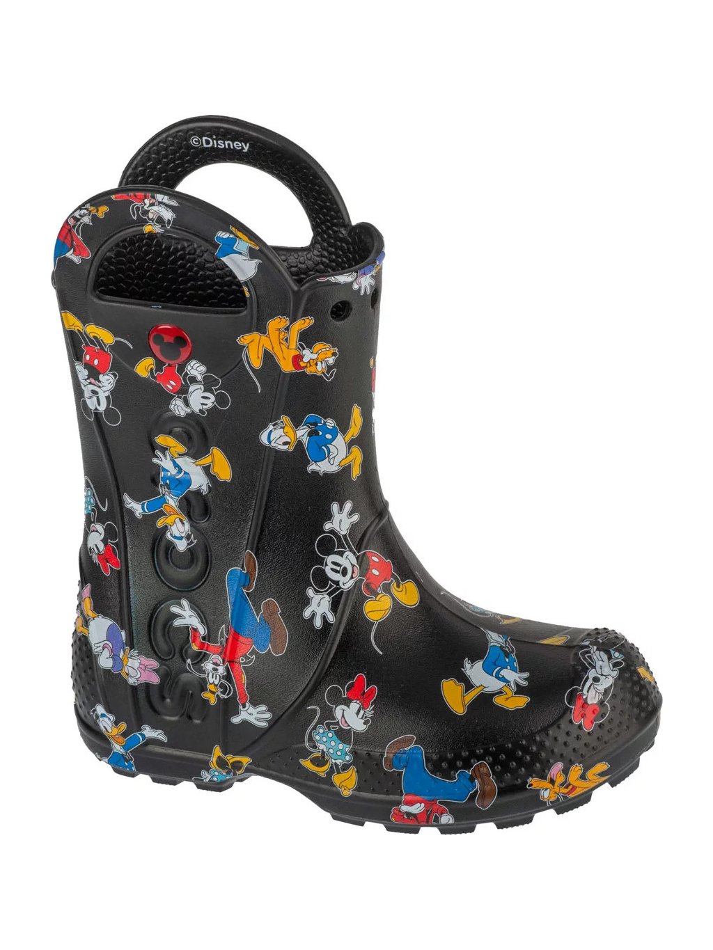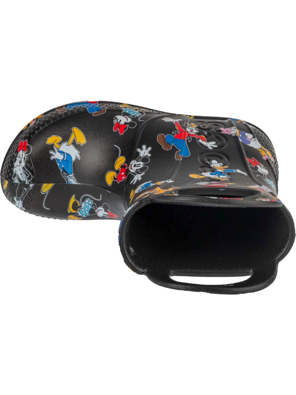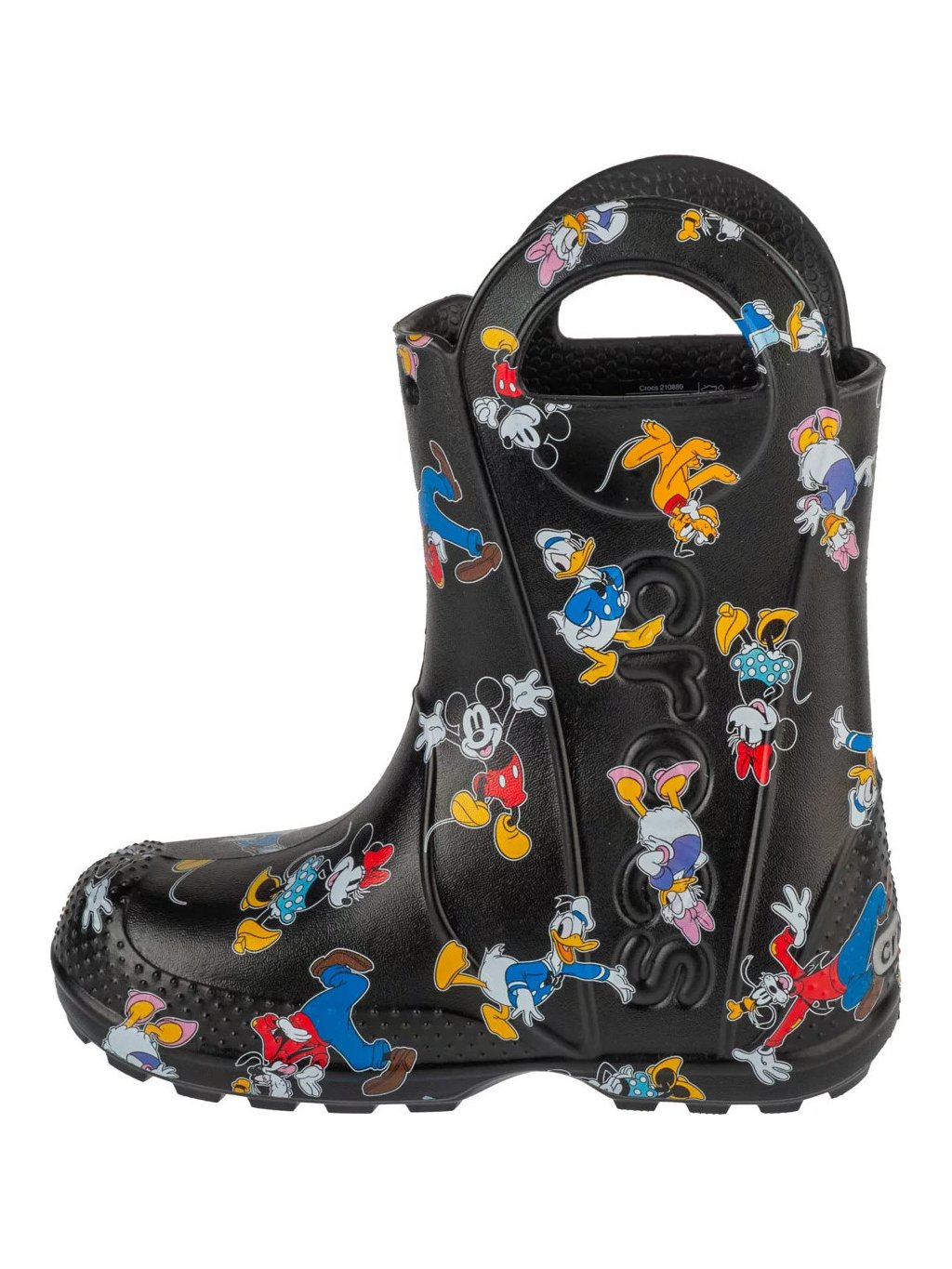 Černé vzorované dětské holínky Crocs Mickey Friends Handle It Boot Kids