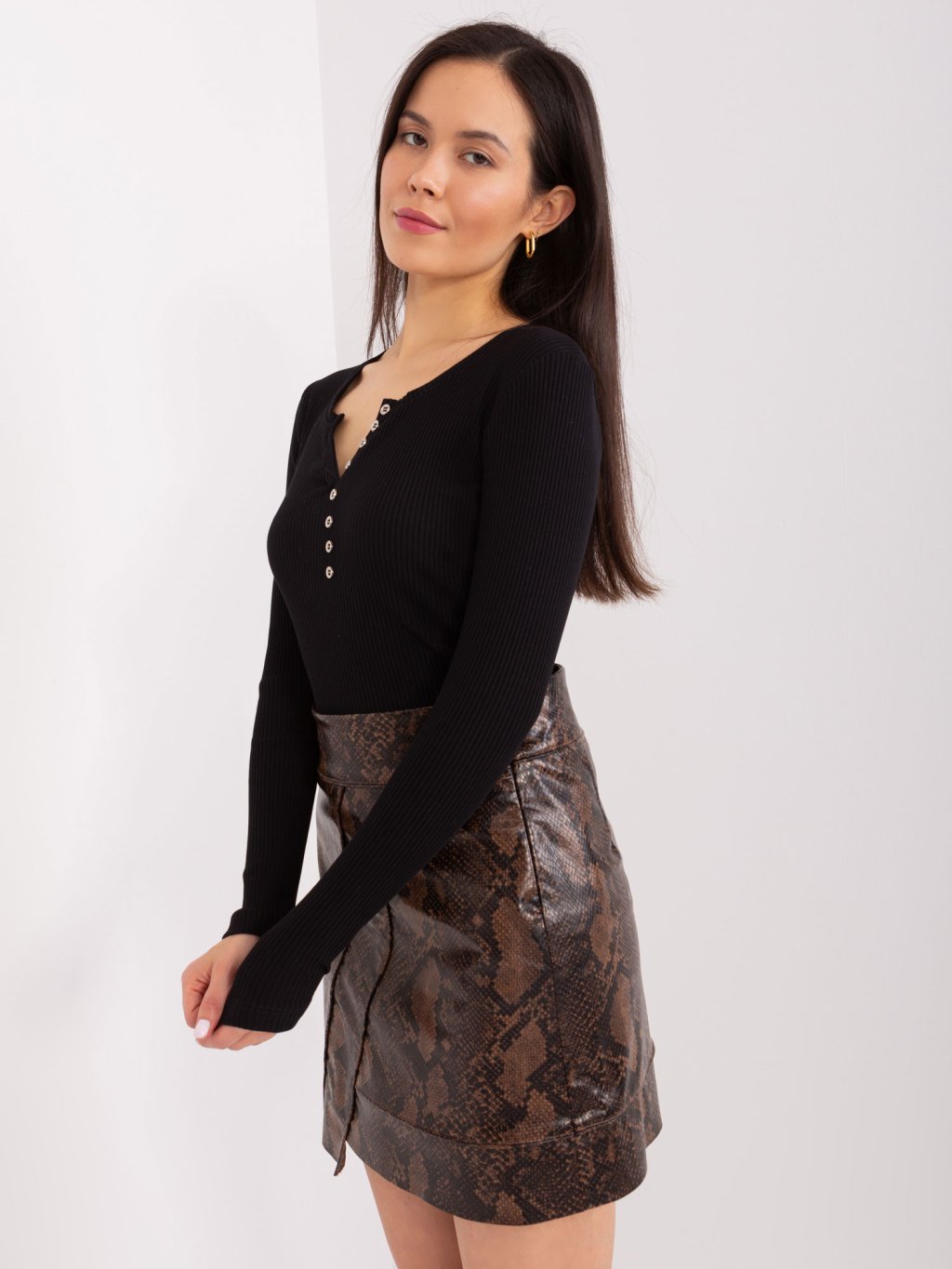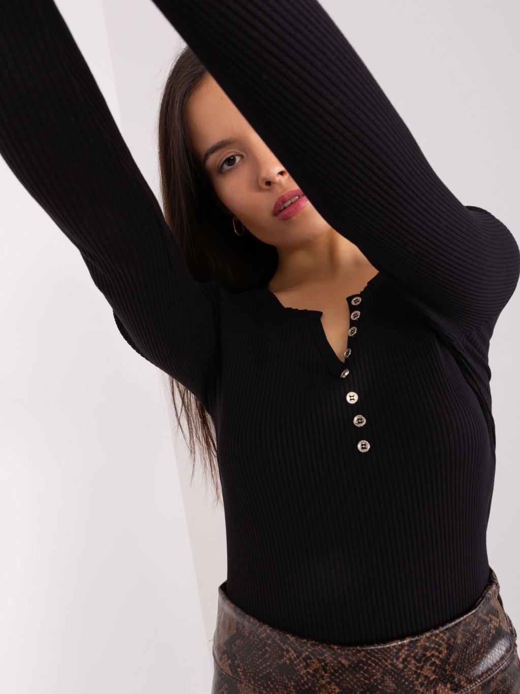 Černé žebrované tričko s výstřihem