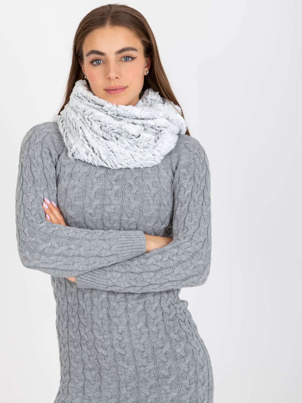 Černo-bílá kožešinová šála