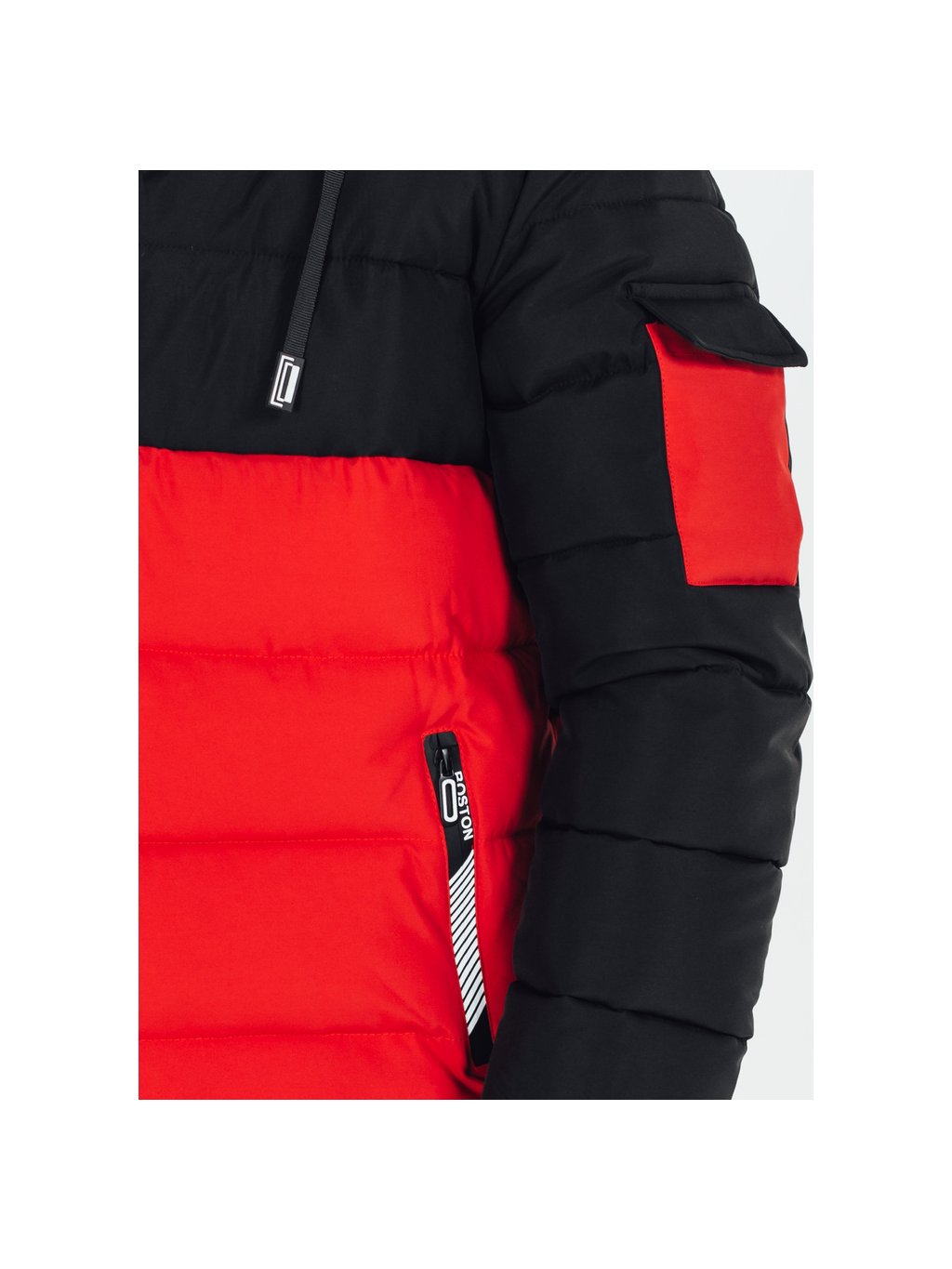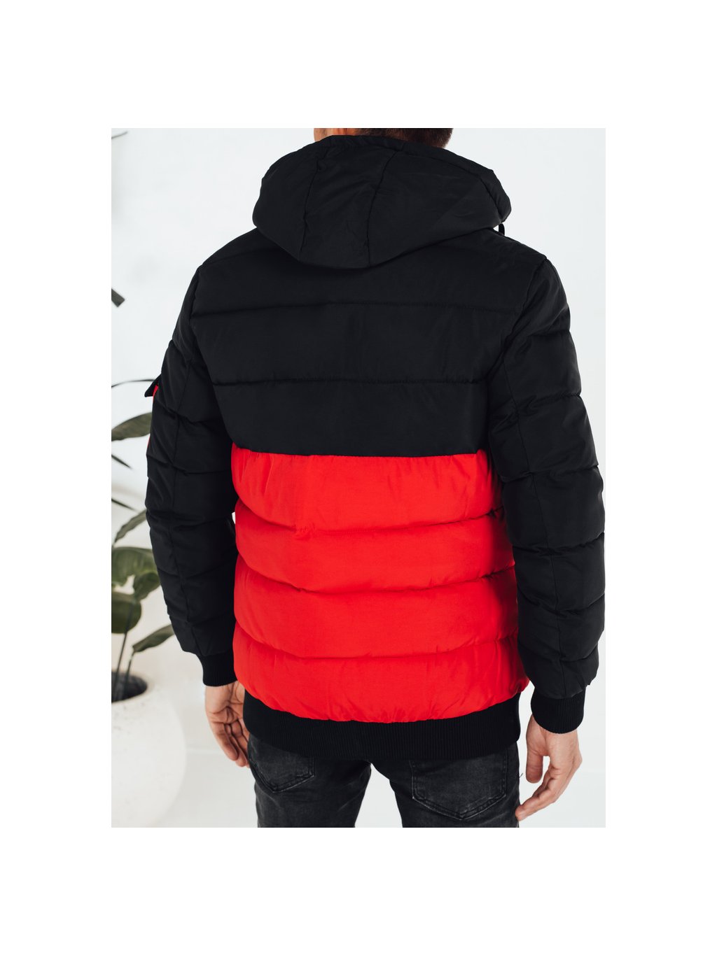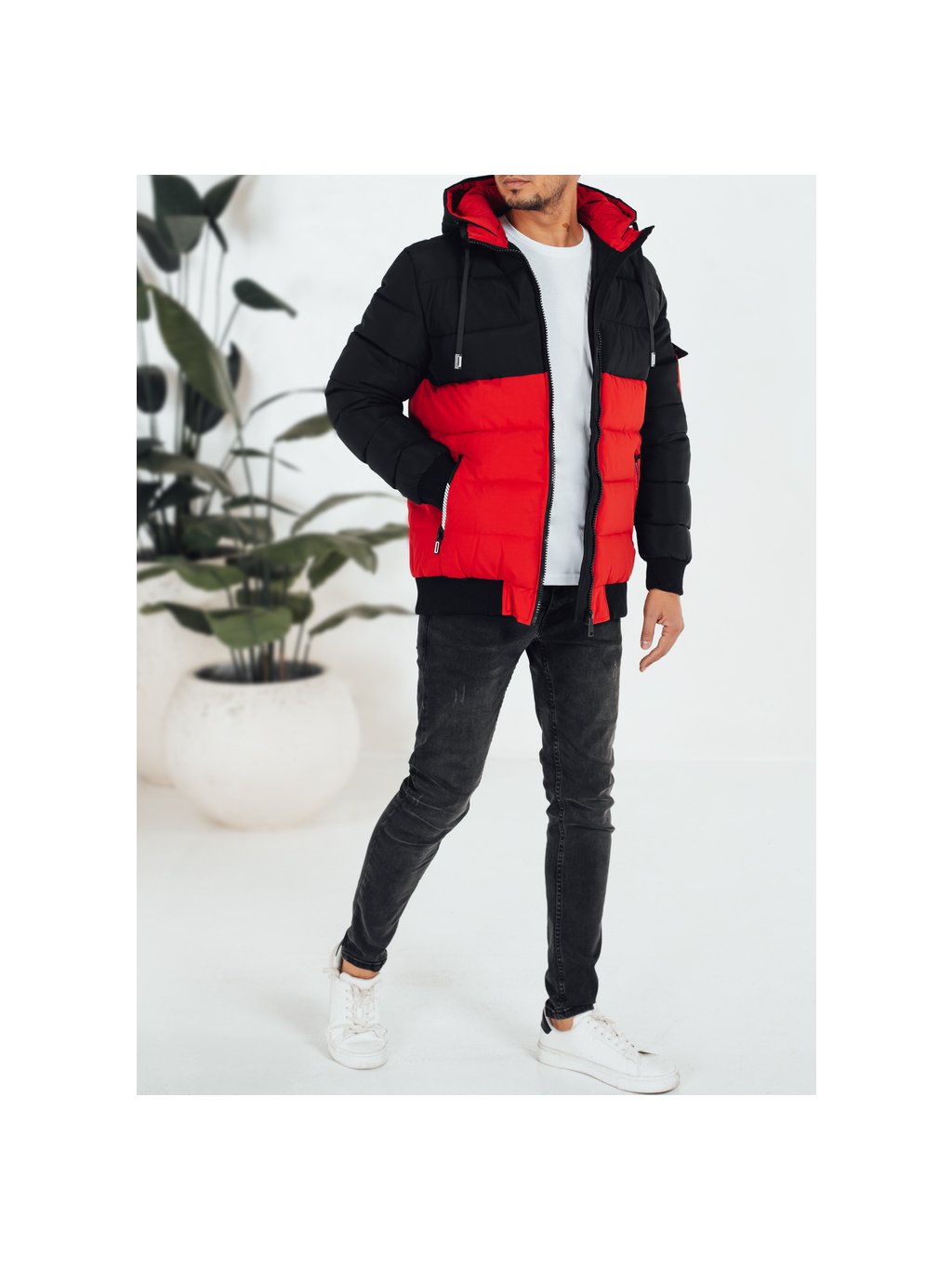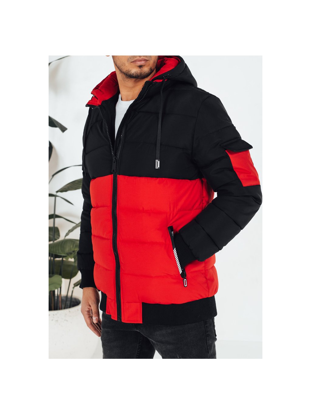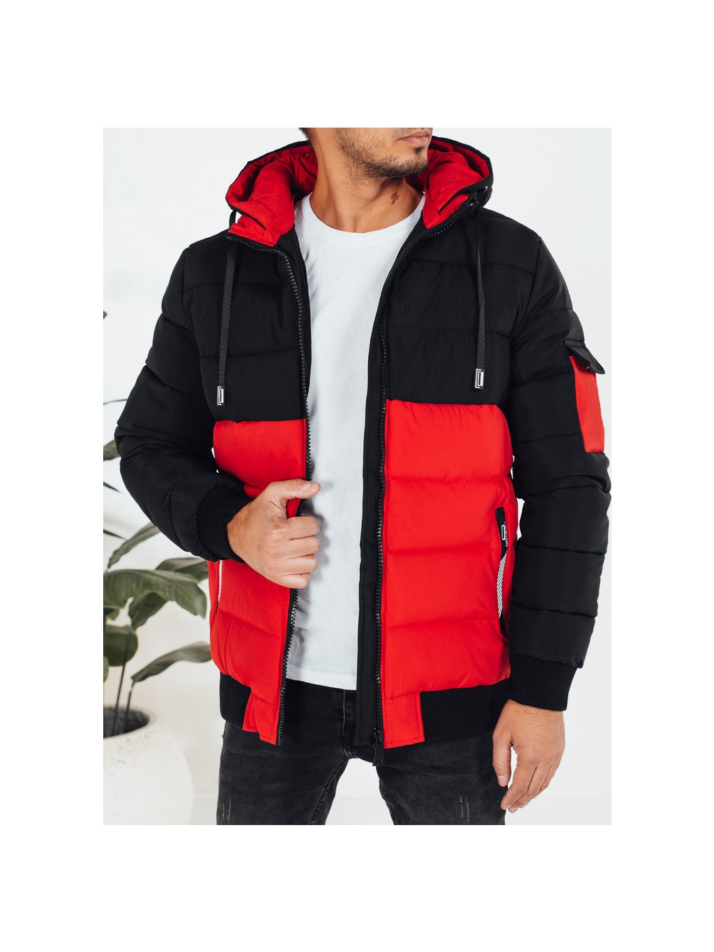 Černo-červená pánská zimní bunda s kapucí