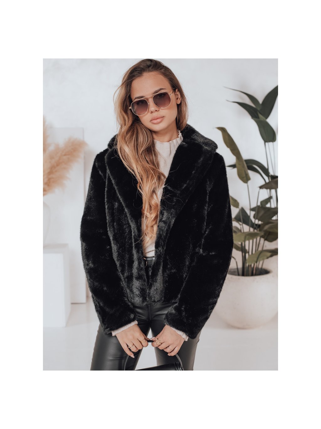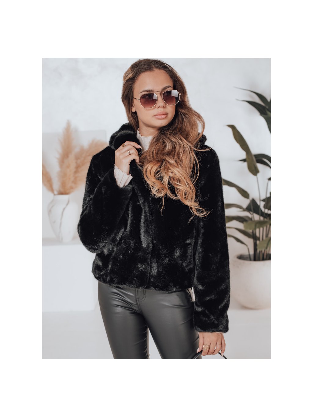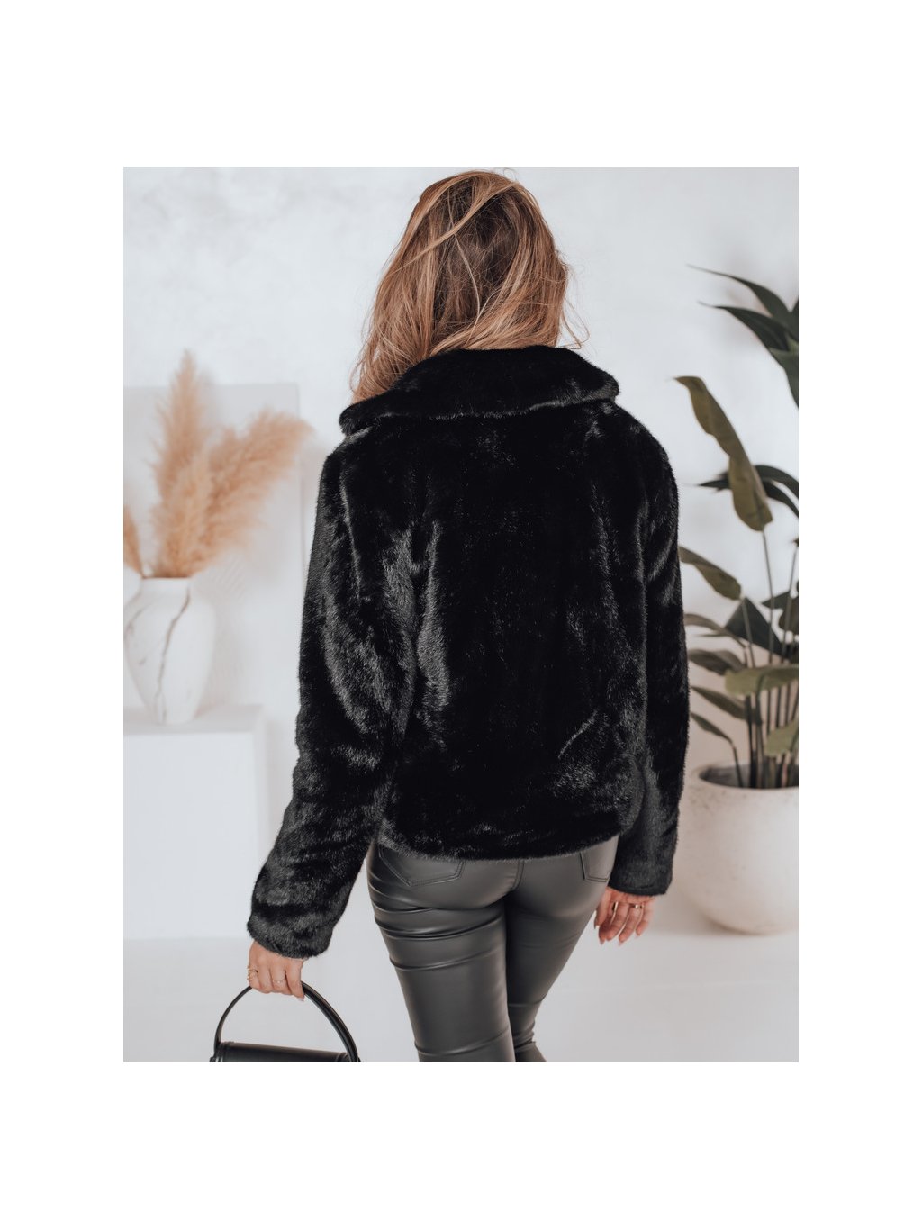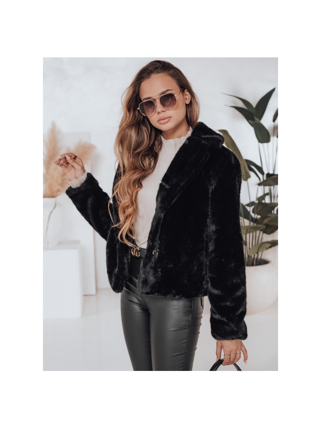 Černý dámský kožíšek s klasickým límcem GLAMFLUFFY