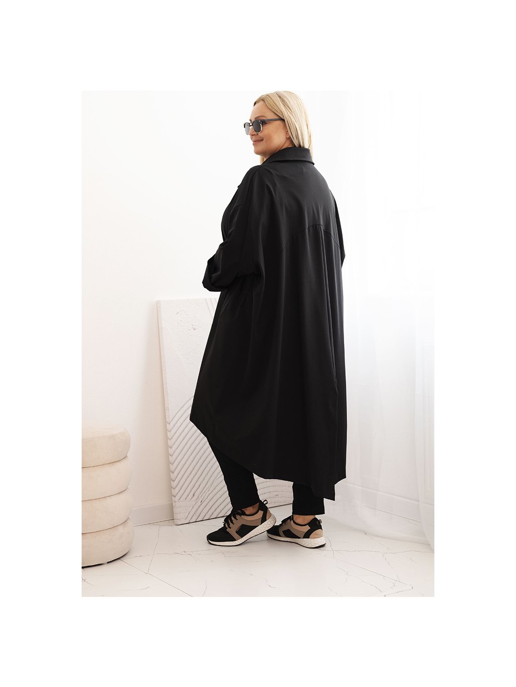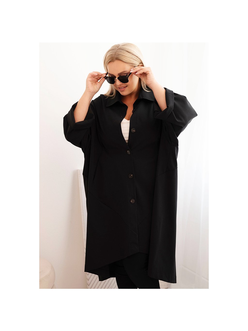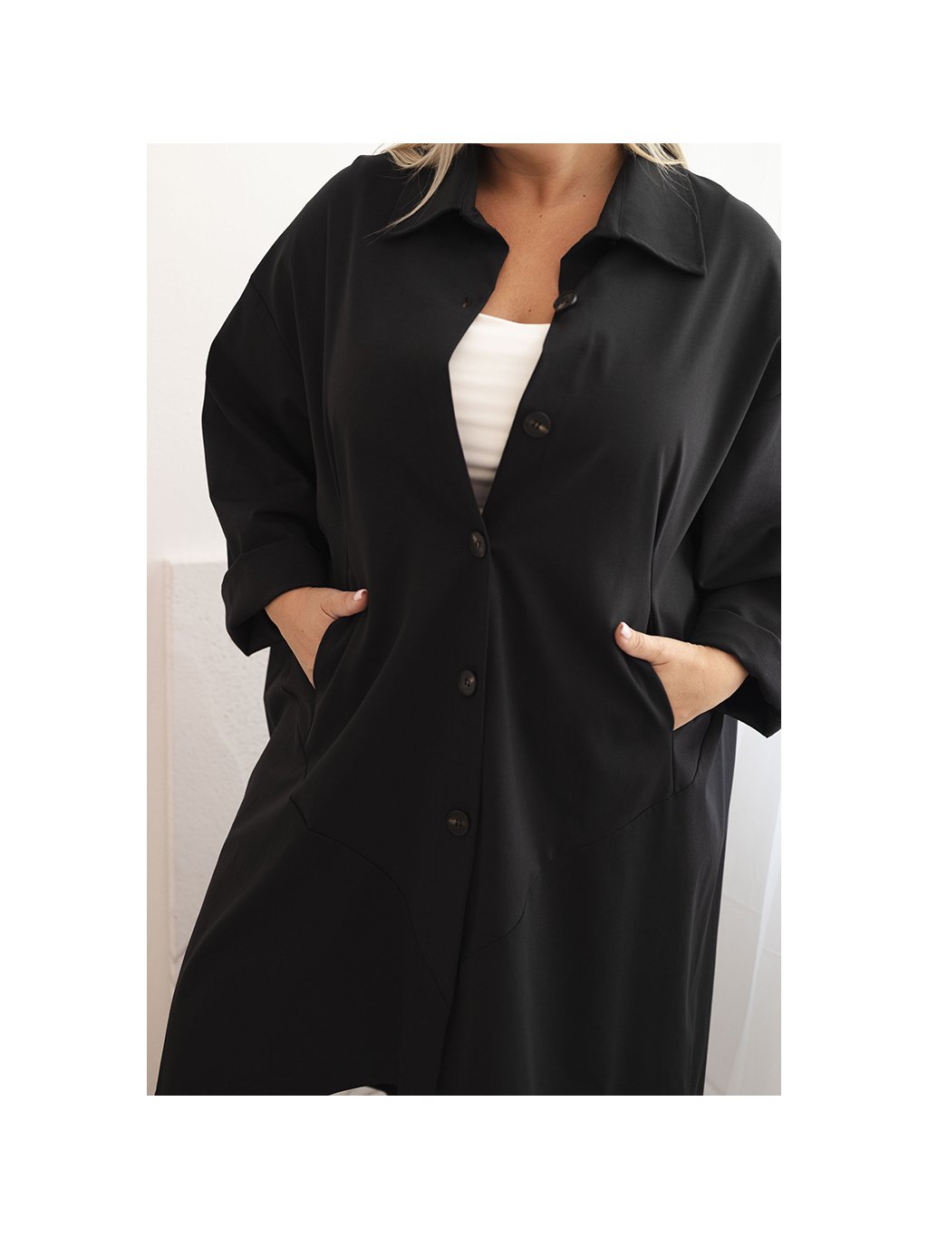 Černý dámský lehký kabátek s klasickým límcem