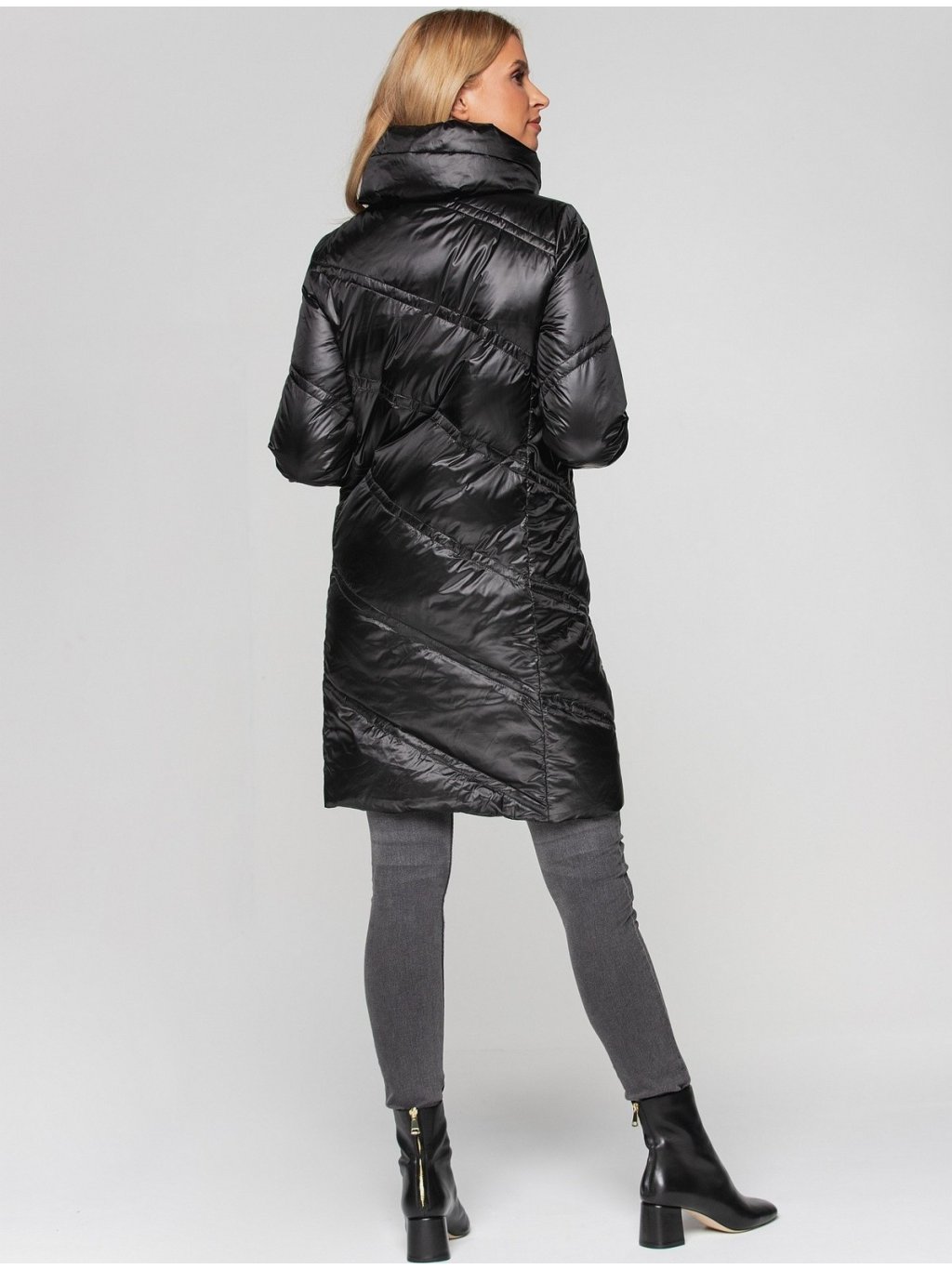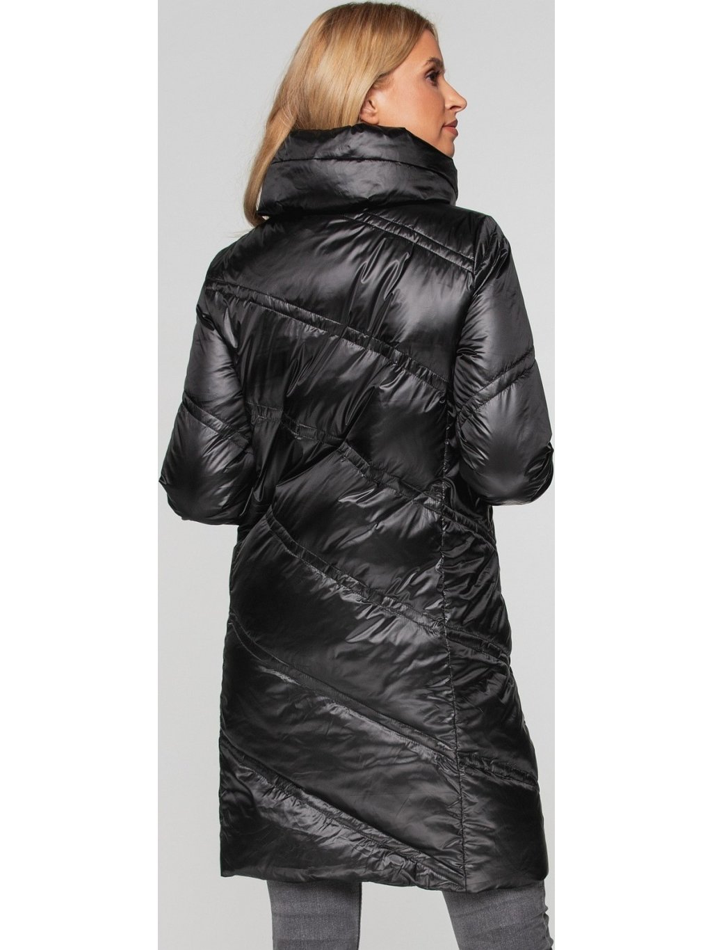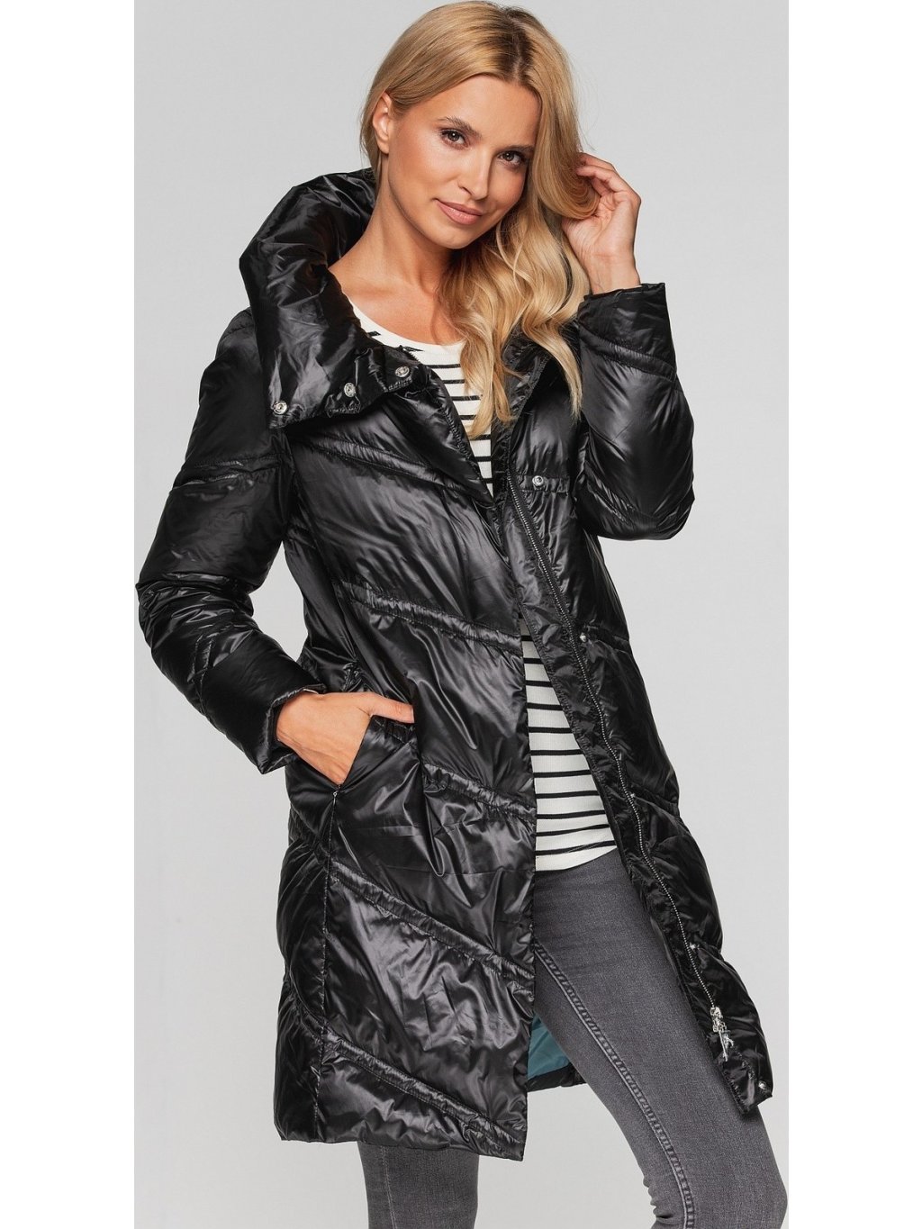 Černý dámský prošívaný zimní péřový kabát
