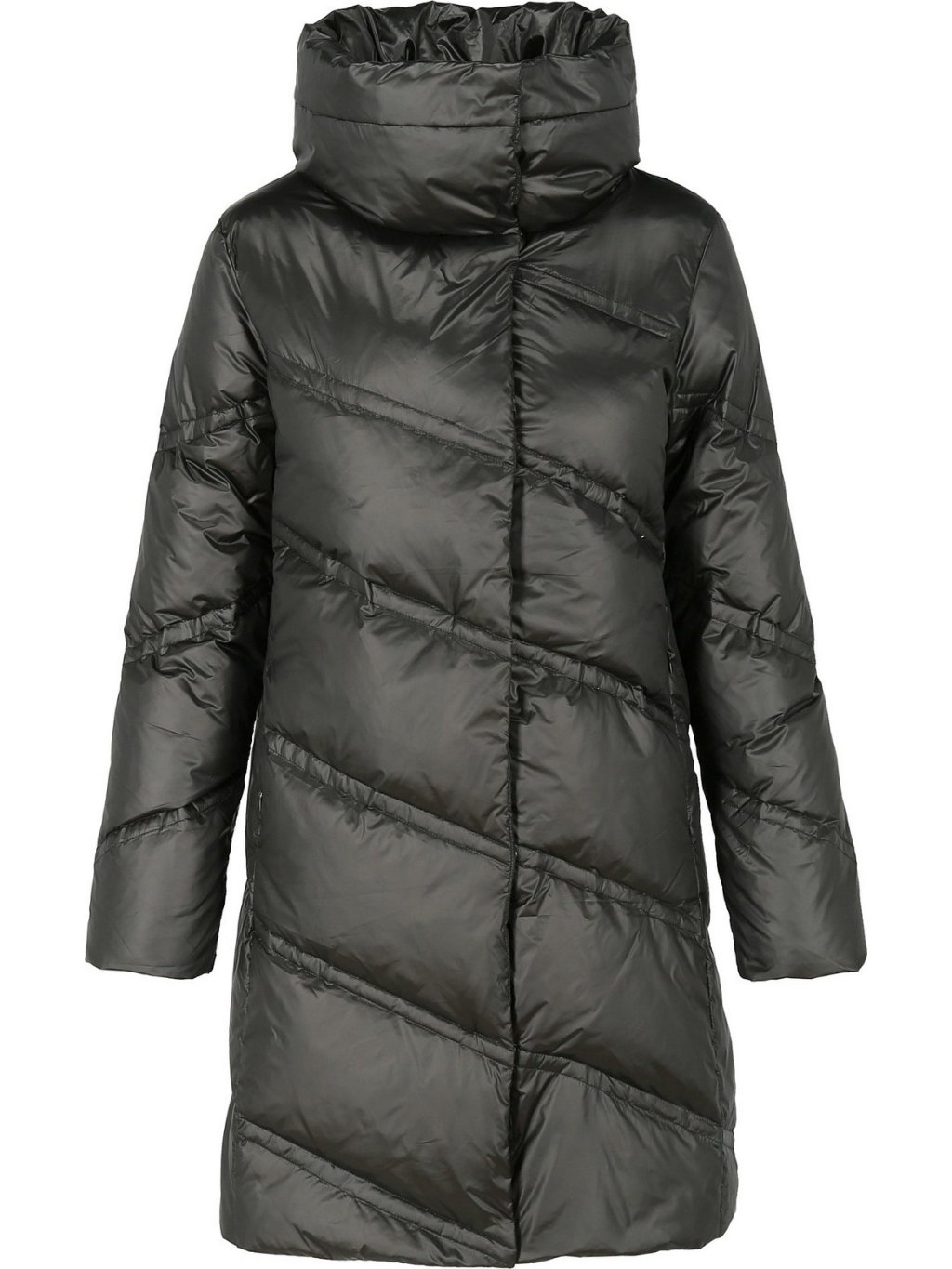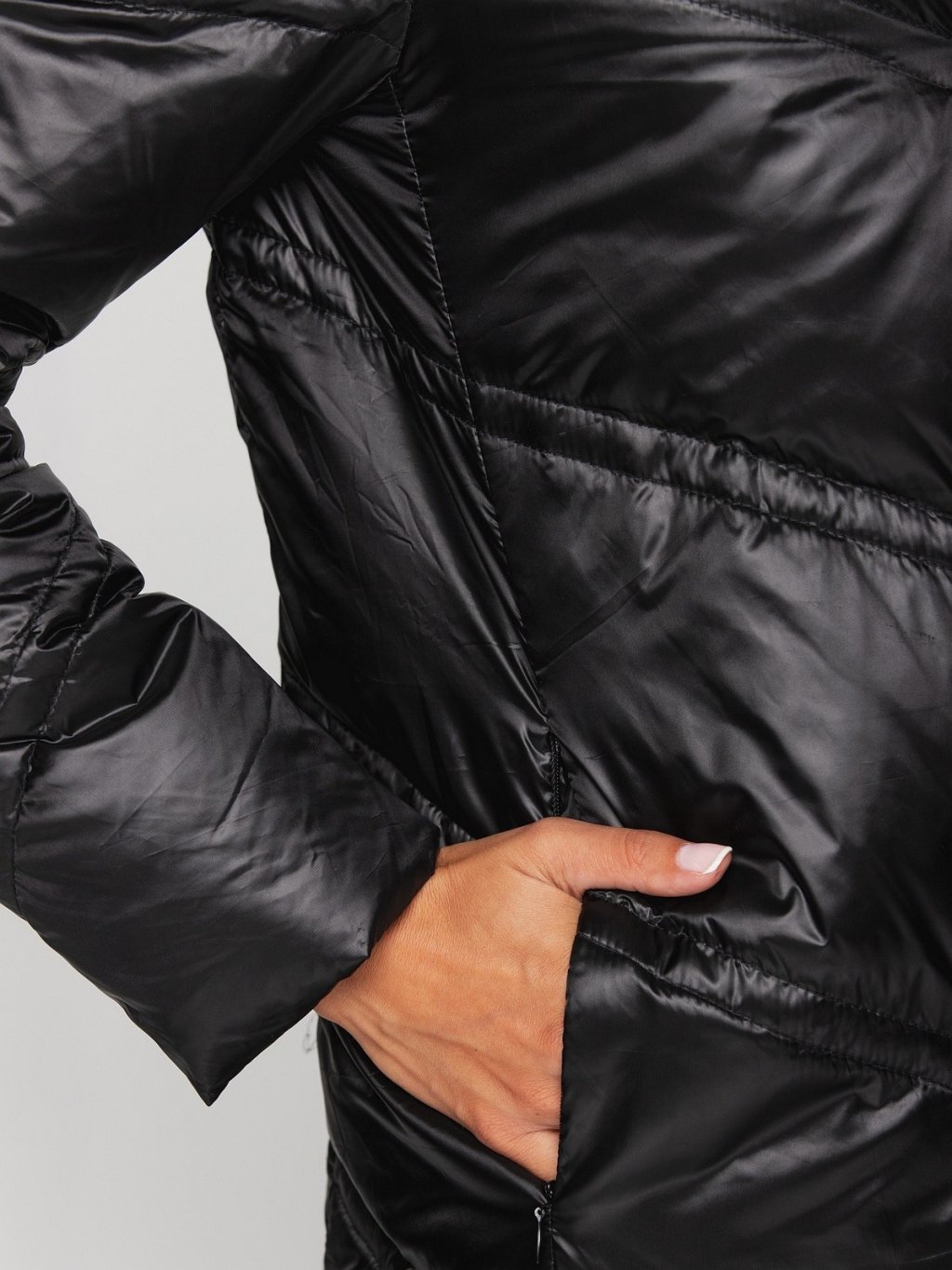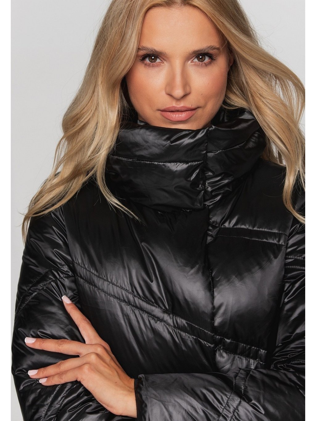 Černý dámský prošívaný zimní péřový kabát