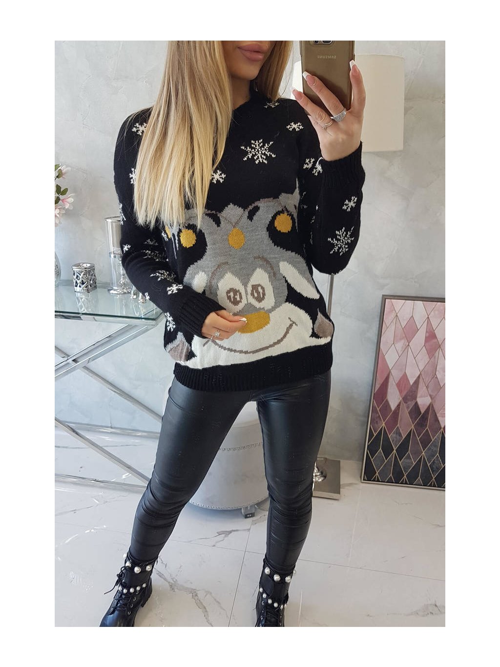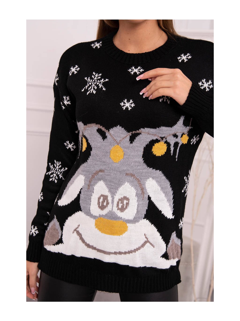 Černý dámský vánoční svetr s motivem soba