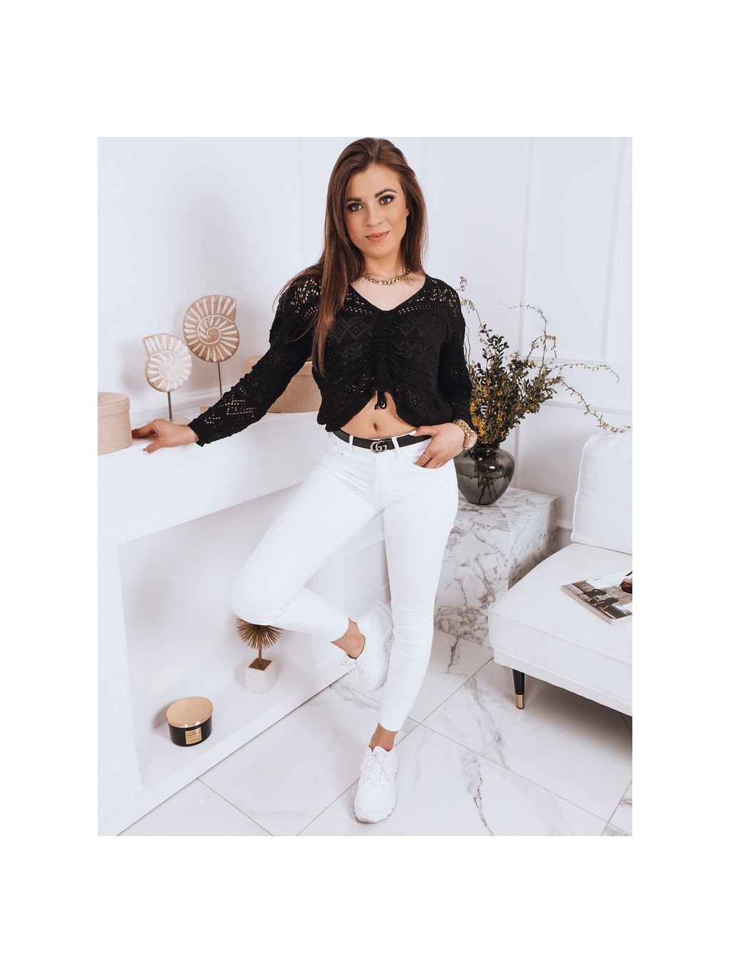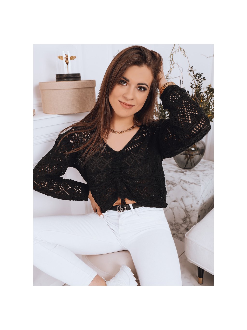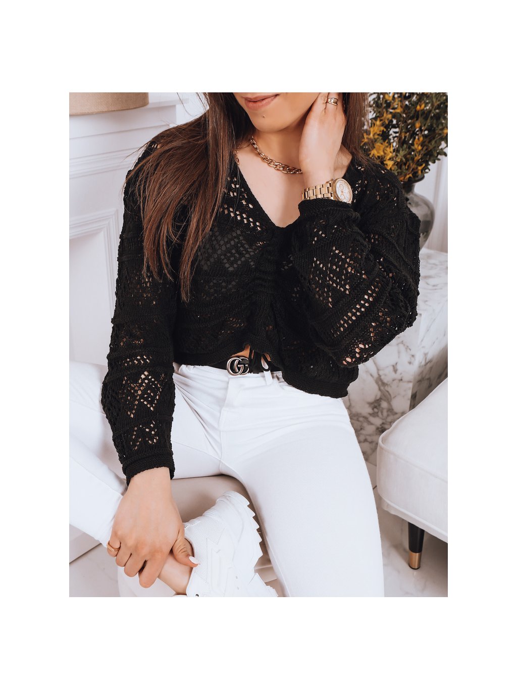 Černý háčkovaný svetr MISTELLA