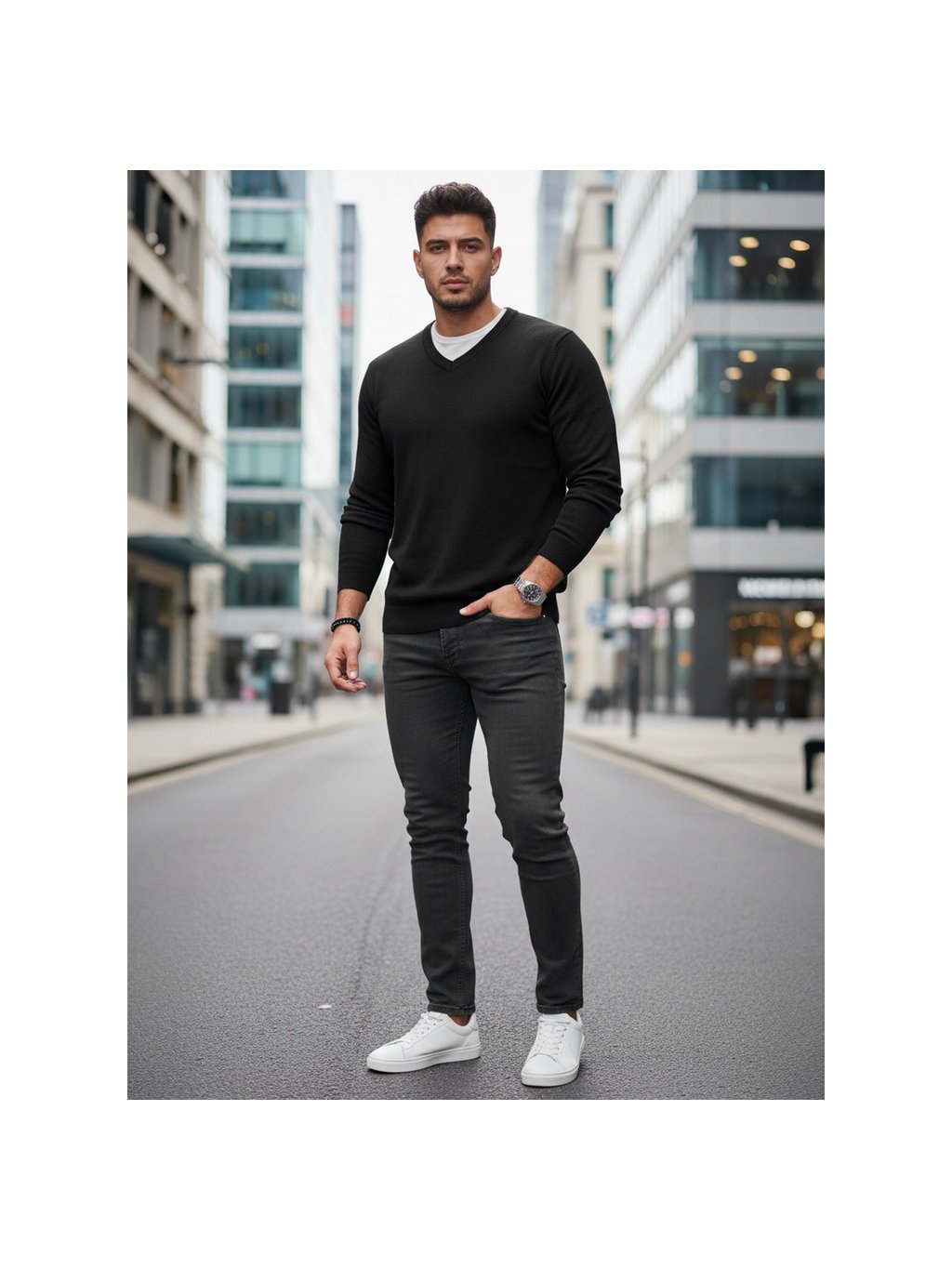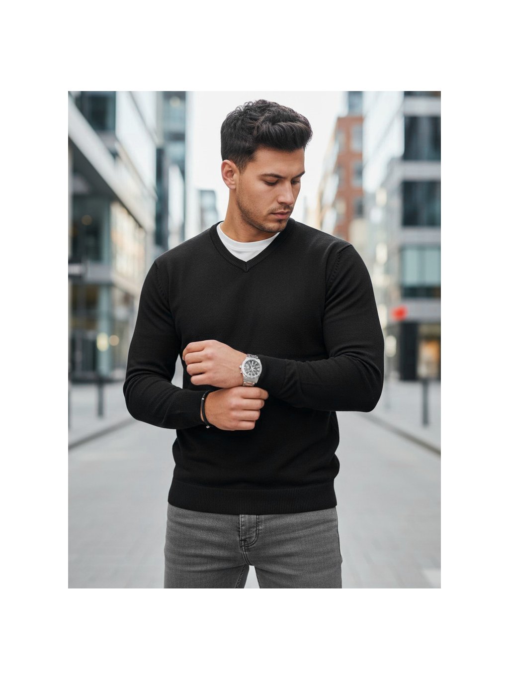 Černý pánský svetr s výstřihem do V