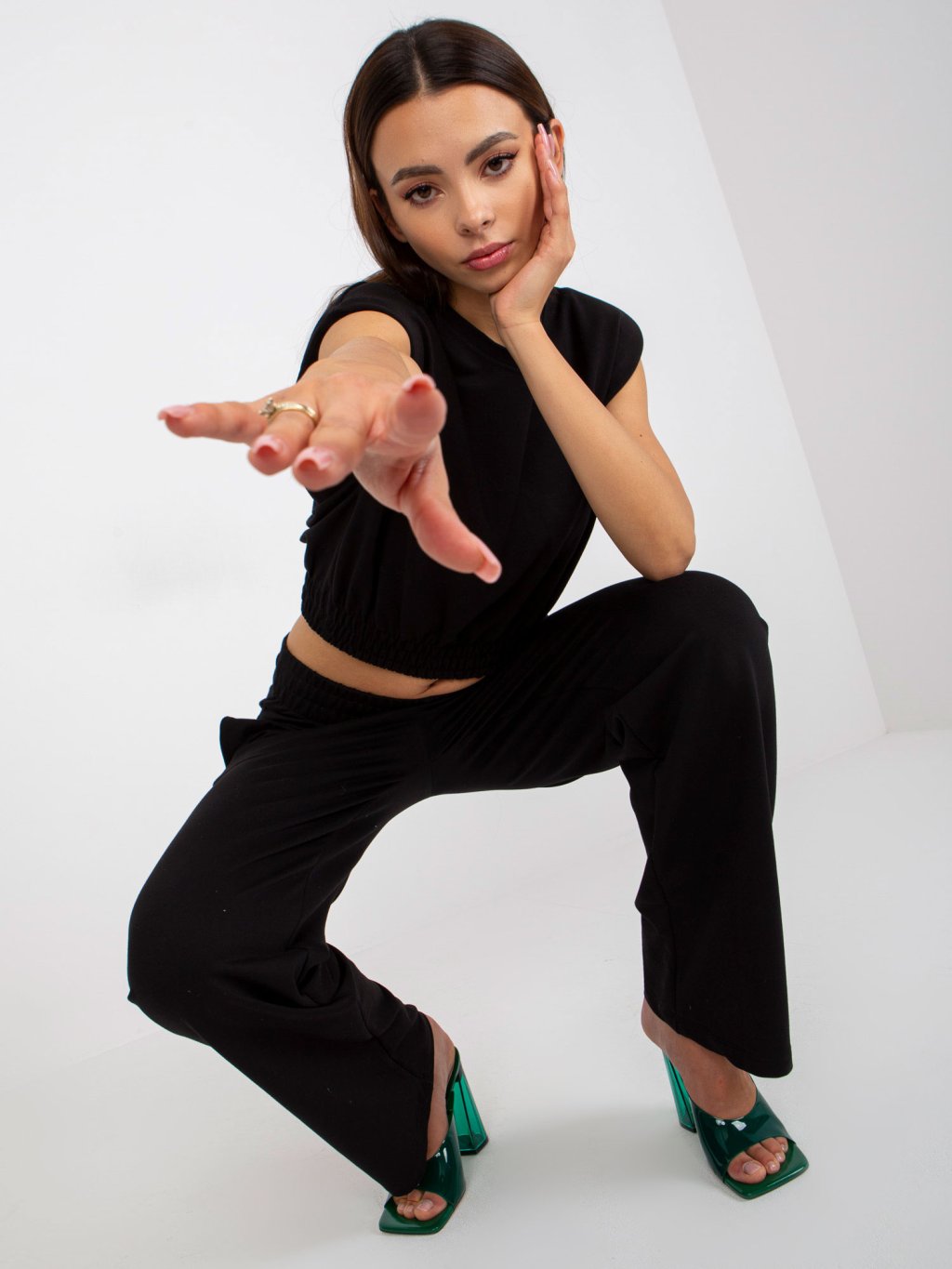 Modelka na obrázcích je vysoká 175 cm, obvod přes prsa 84 cm, obvod pasu 61 cm a boky 91 cm.
