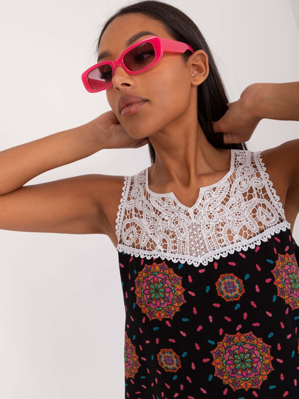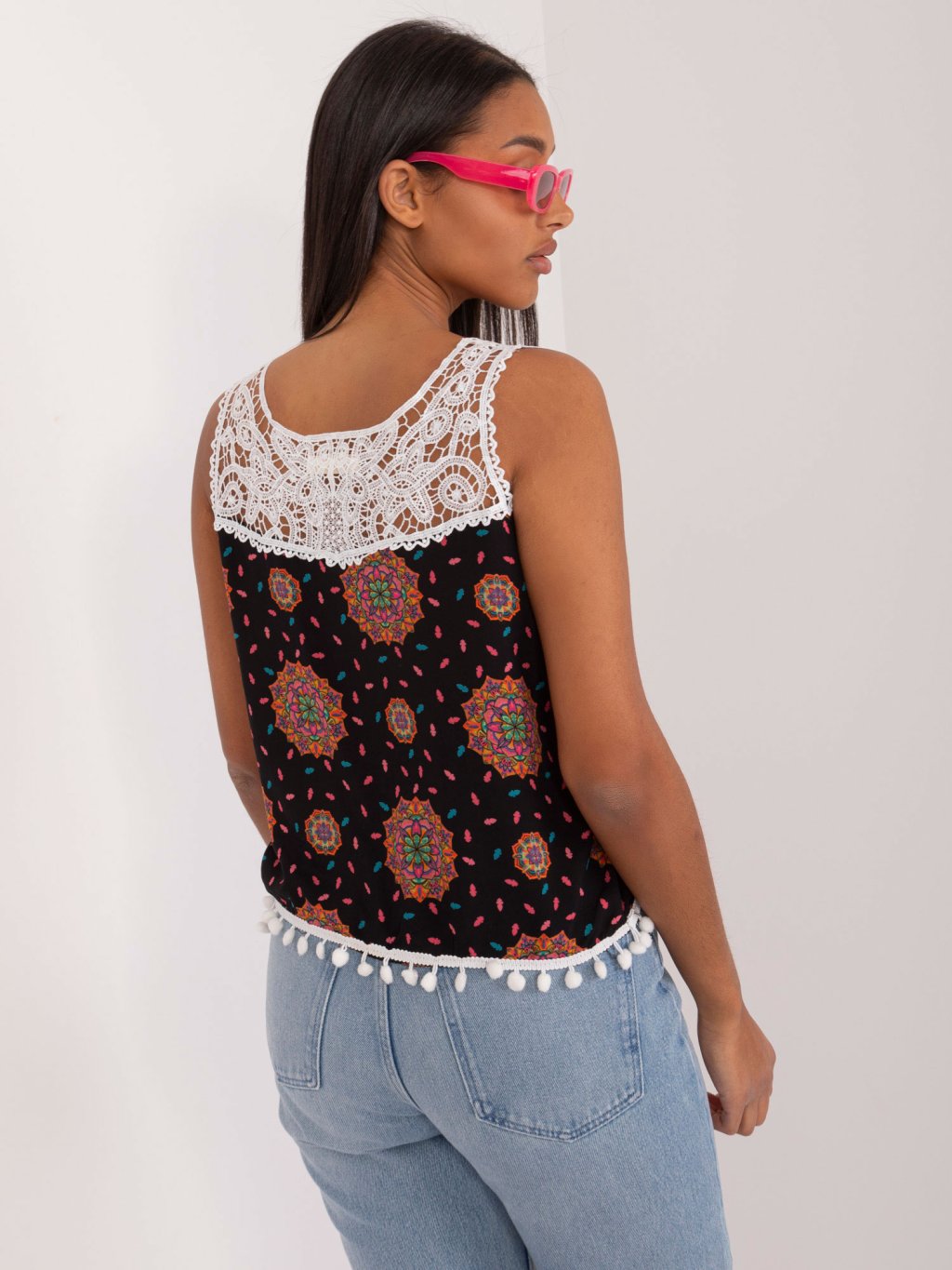 Černý top se vzory a krajkou