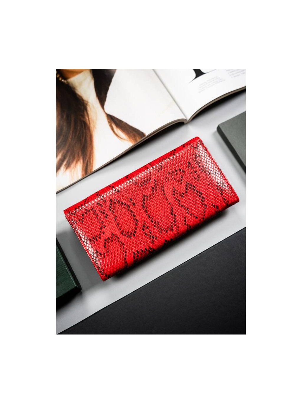 Červená dámská peněženka s hadím vzorem Cavaldi M778