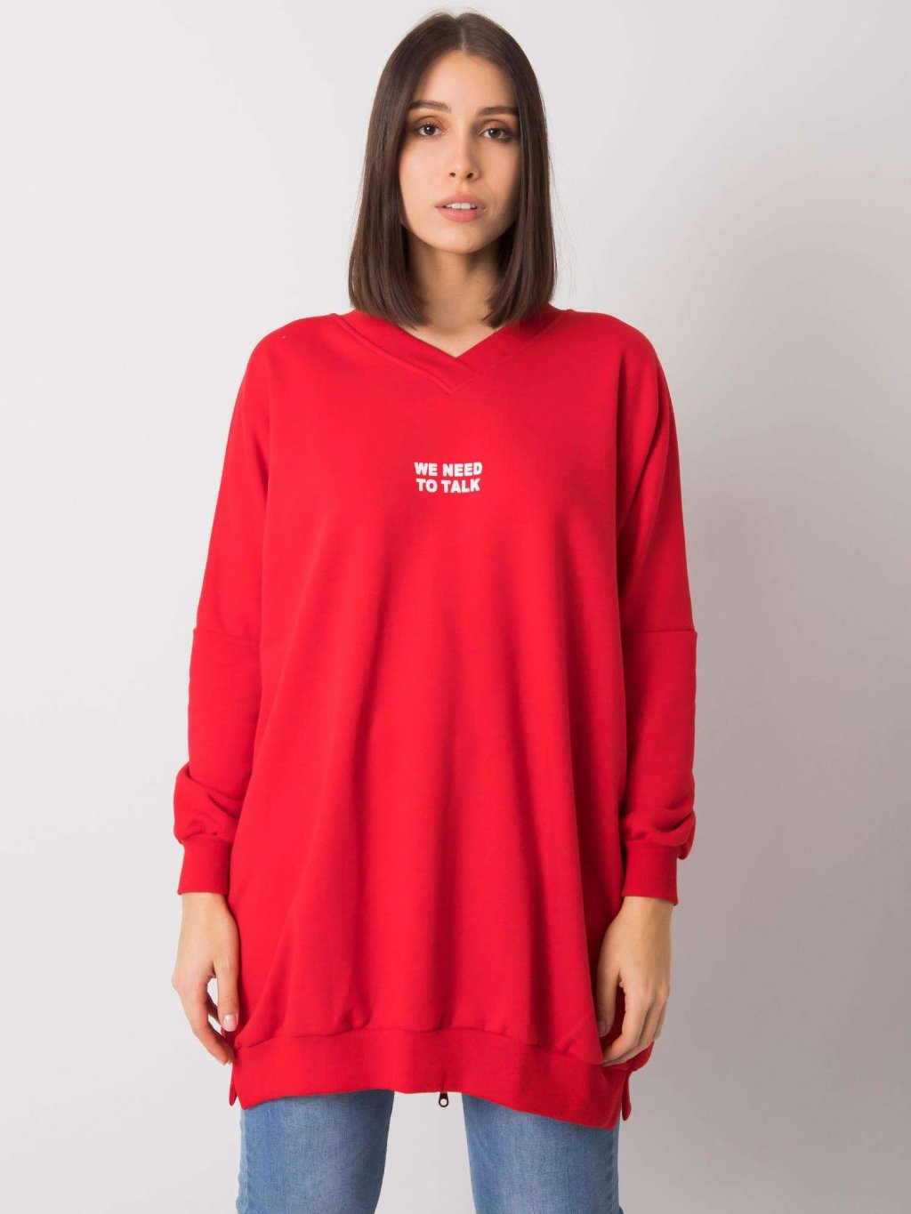 Červená tunika Raella s nápisem We need to talk