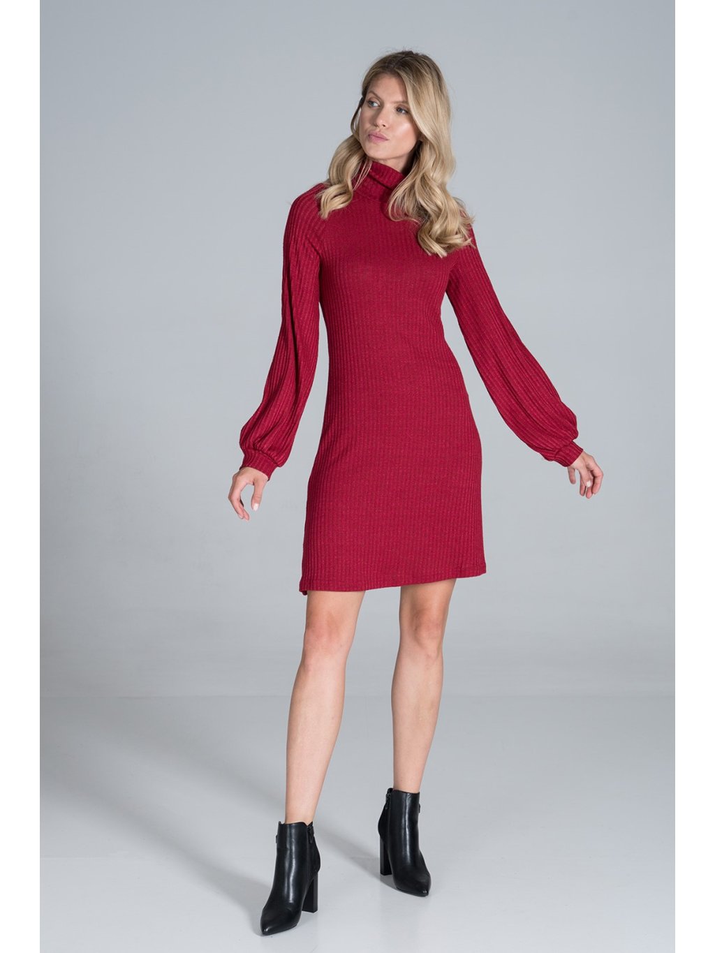 Červené šaty s dlouhými rukávy