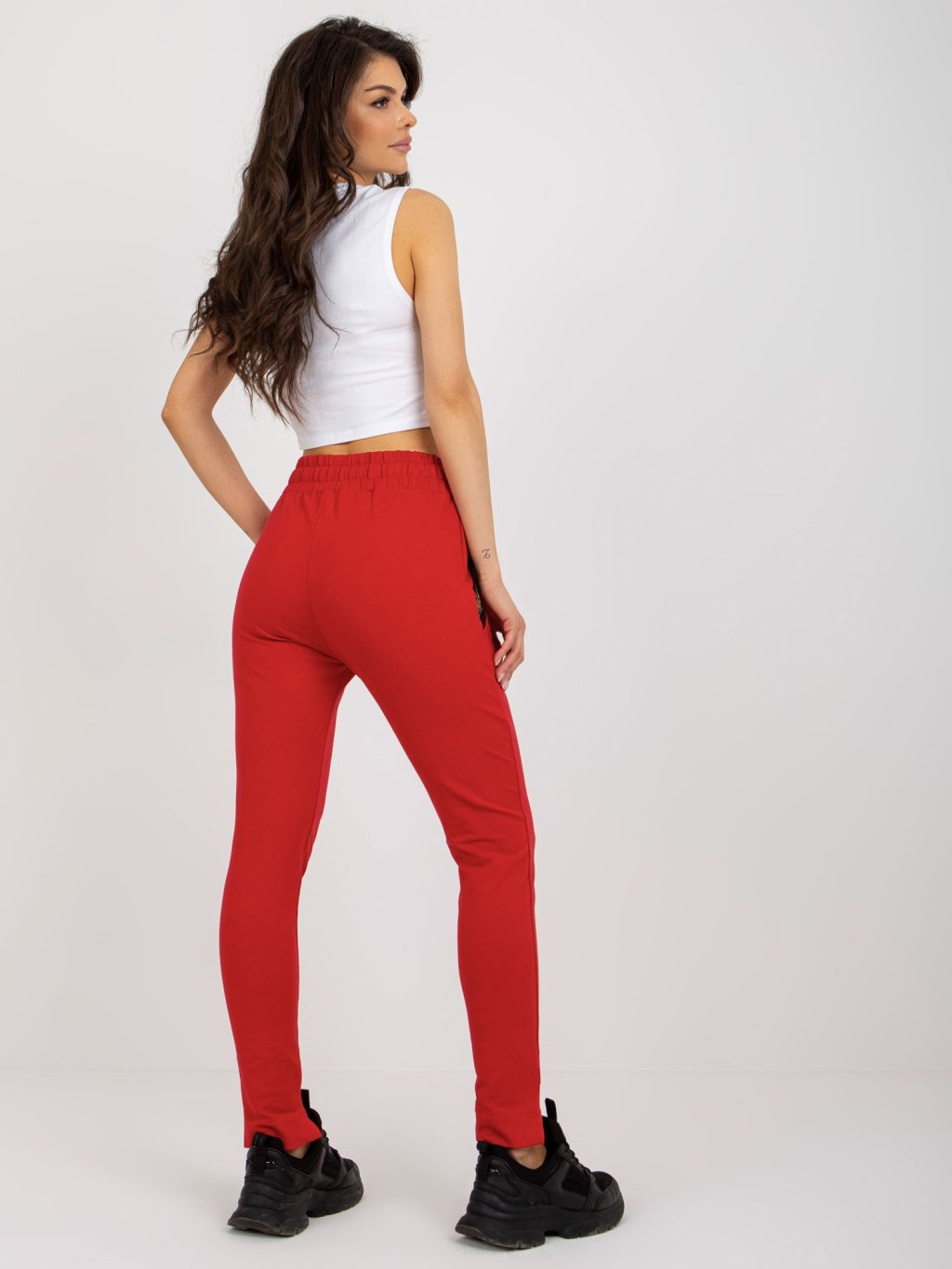 Červené tepláky s kapsami