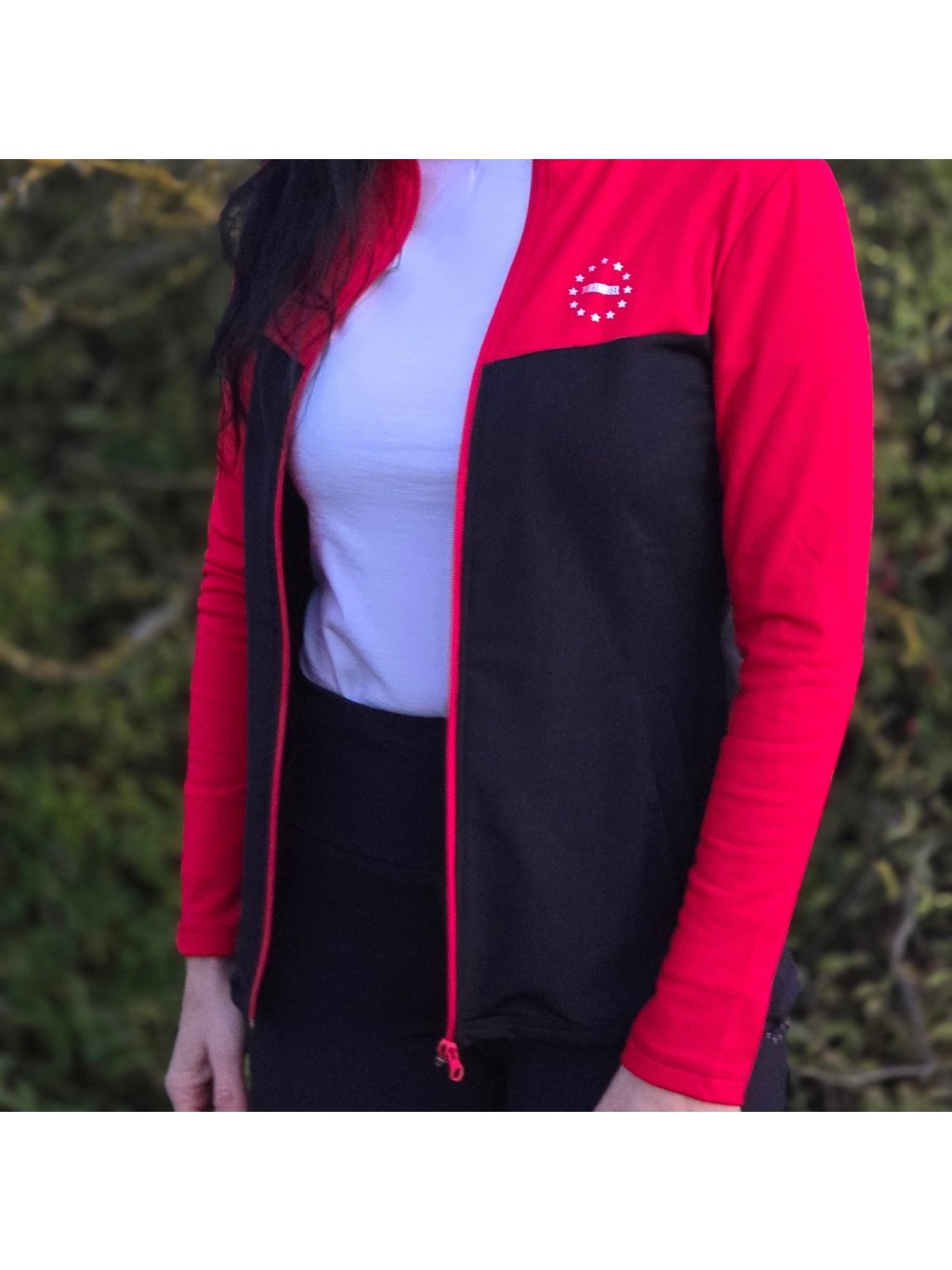 Červeno-černá dámská funkční mikina s potiskem