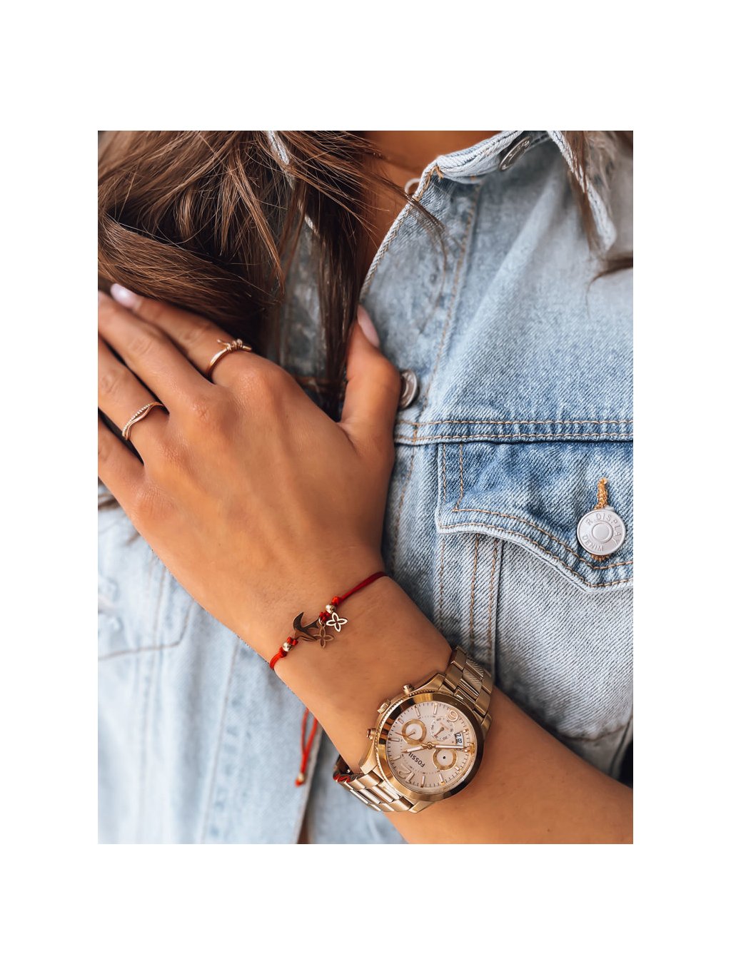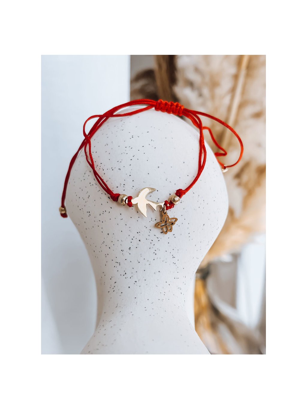 Červený náramek HEARTBEAT s ptáčkem a květinkami