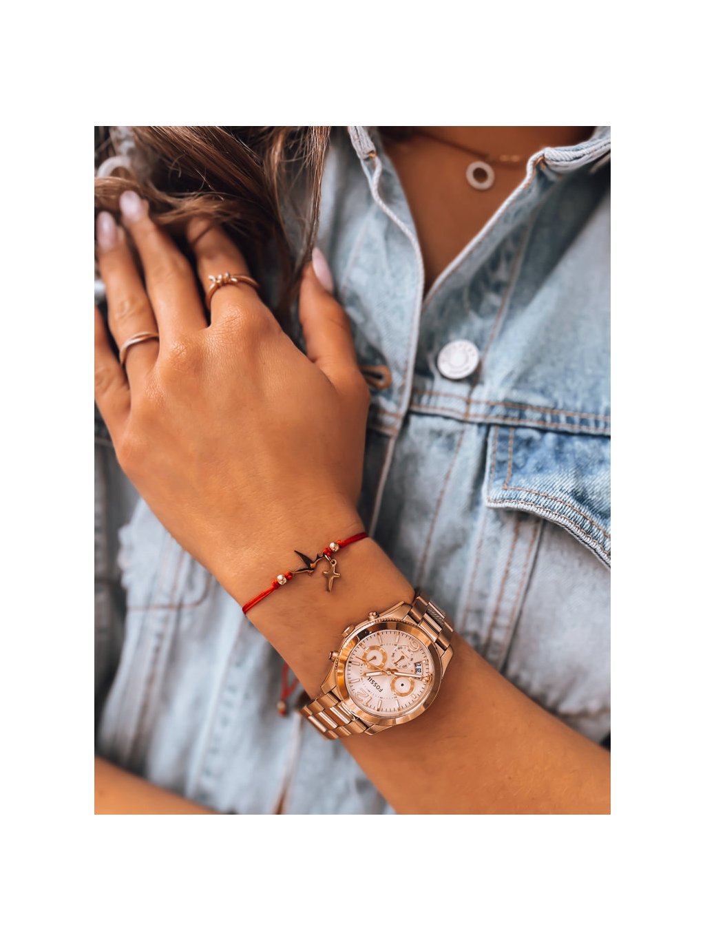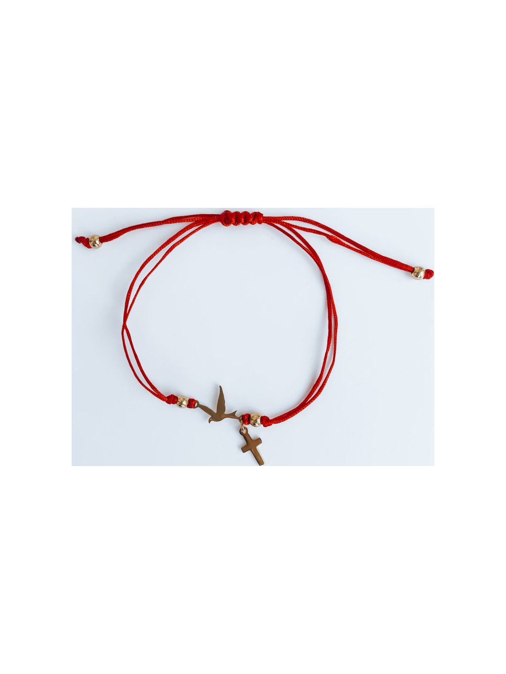 Červený náramek s ptáčkem a křížkem HEARTBEAT
