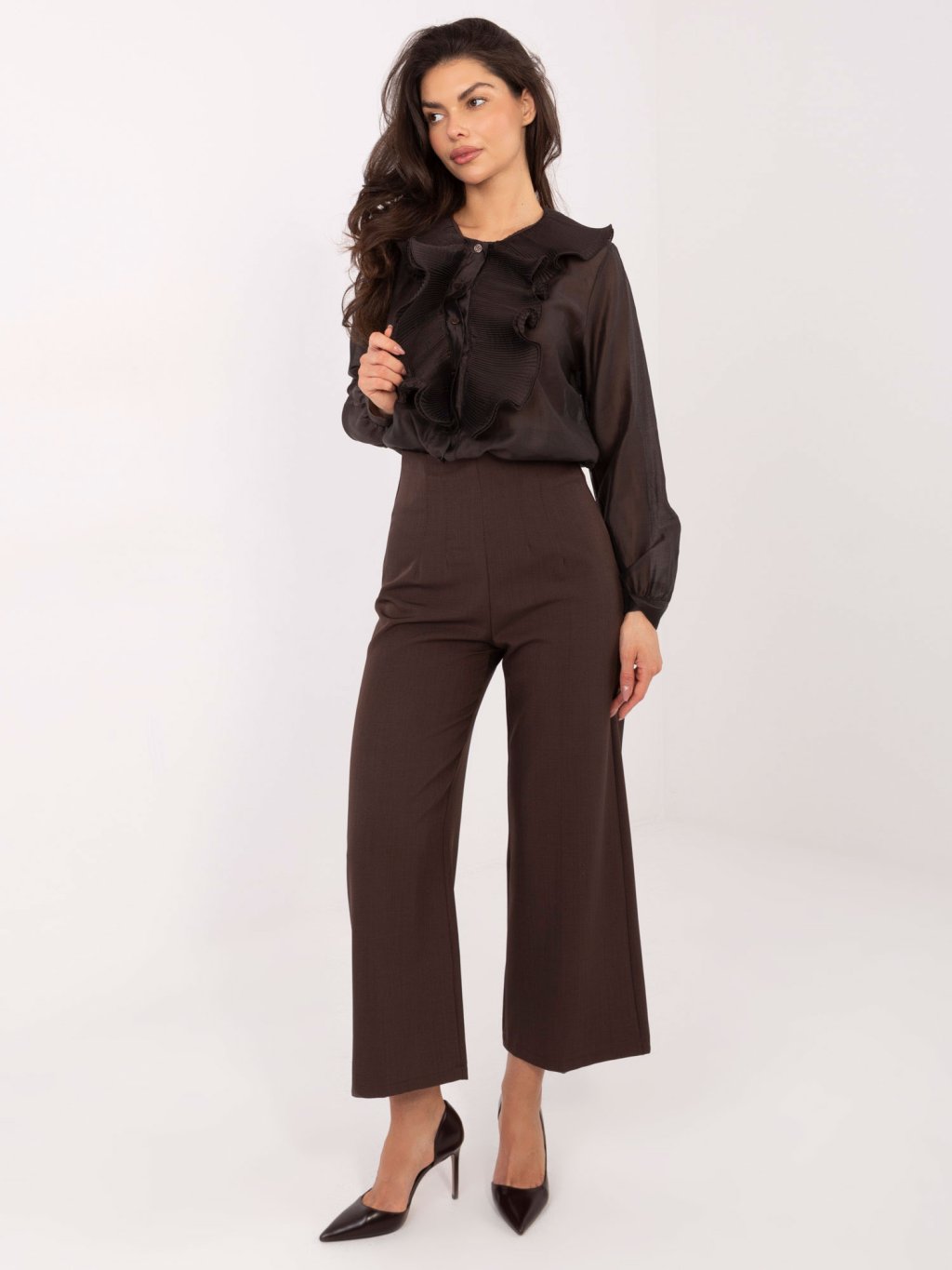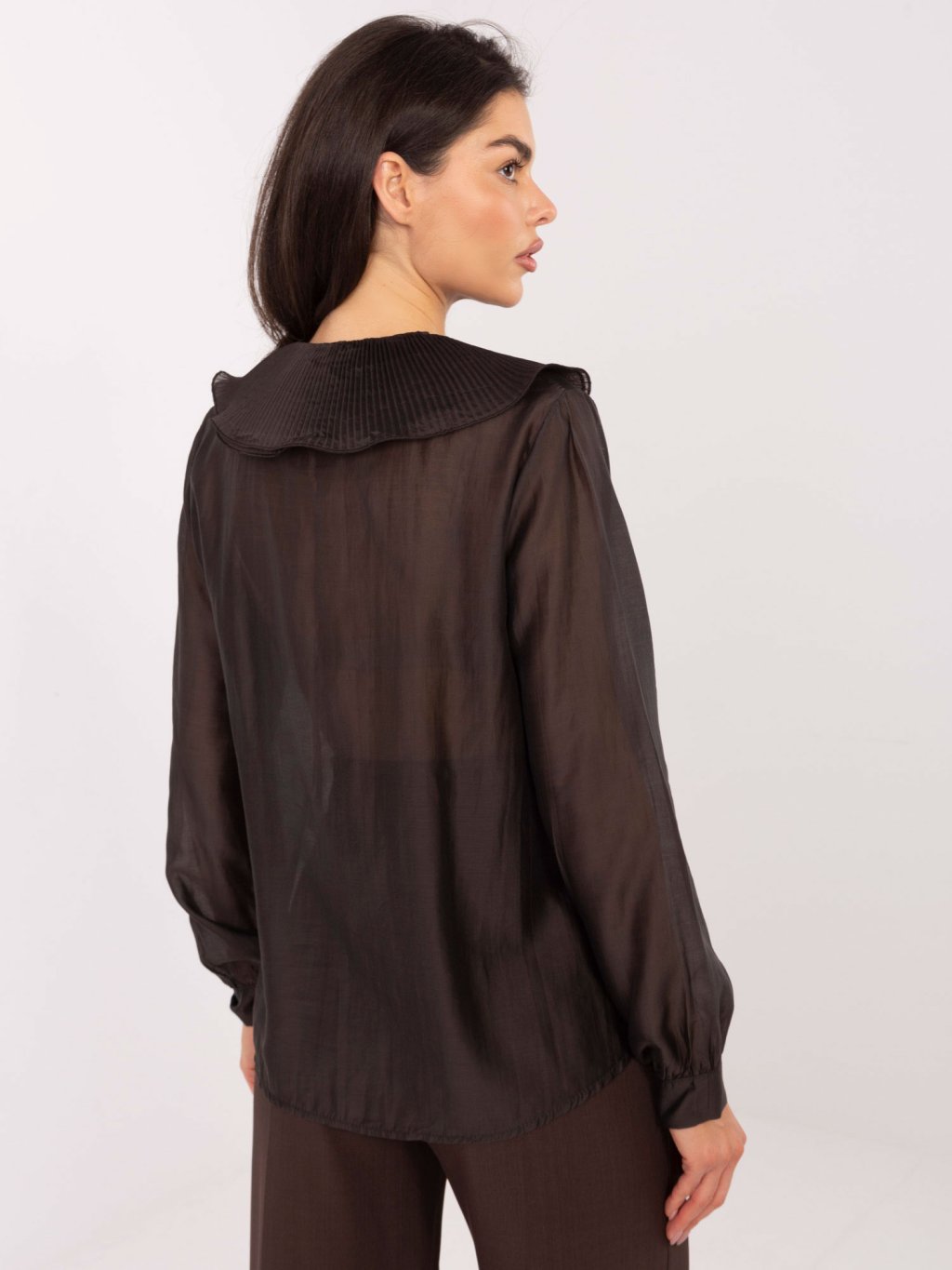 Čokoládově hnědá dámská košile s plisovaným volánem