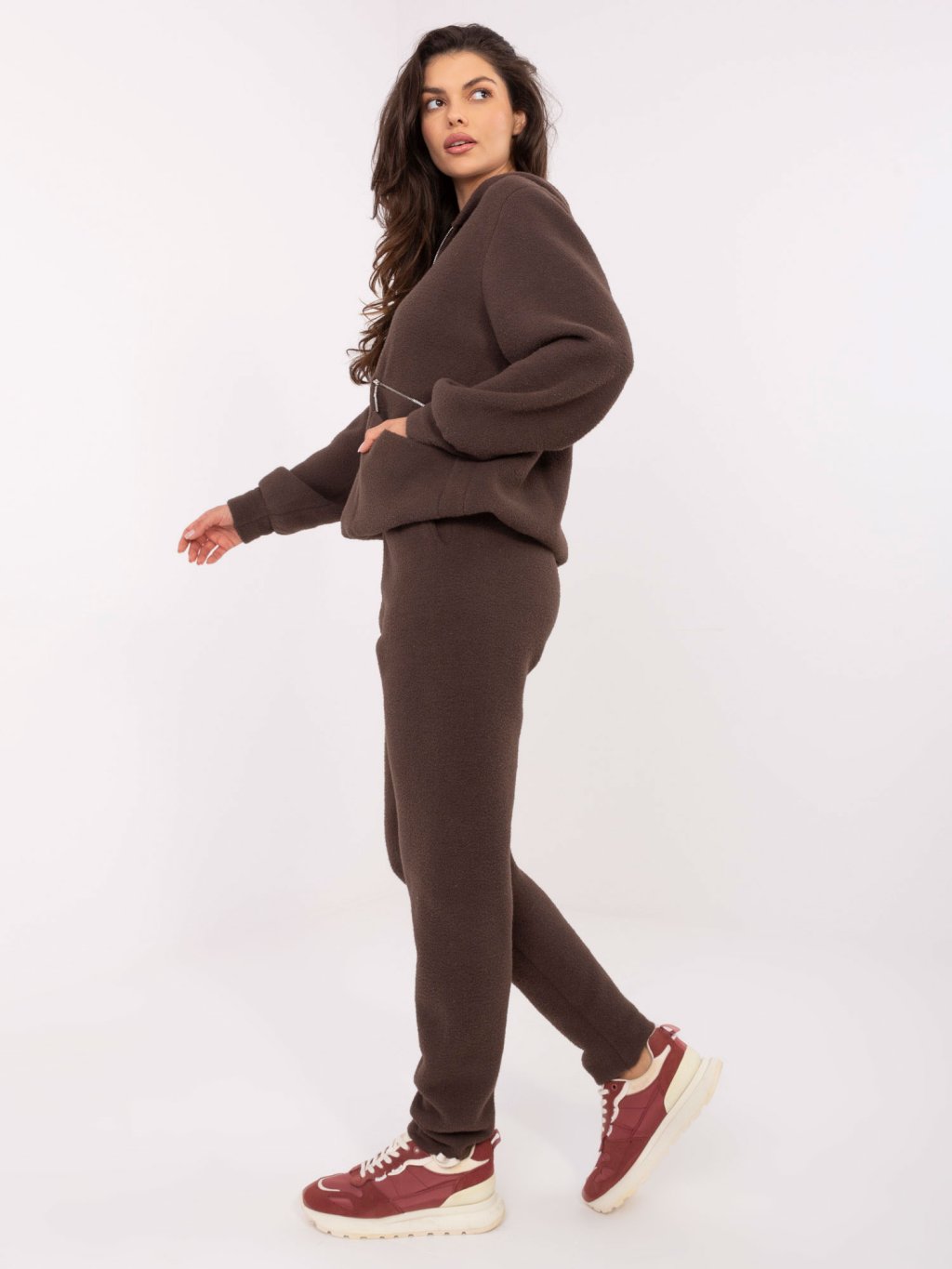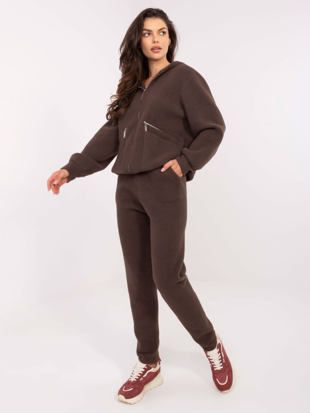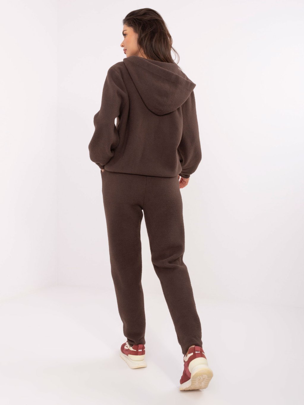 Čokoládově hnědá dámská pletená souprava mikiny a kalhot s ozdobnými zipy
