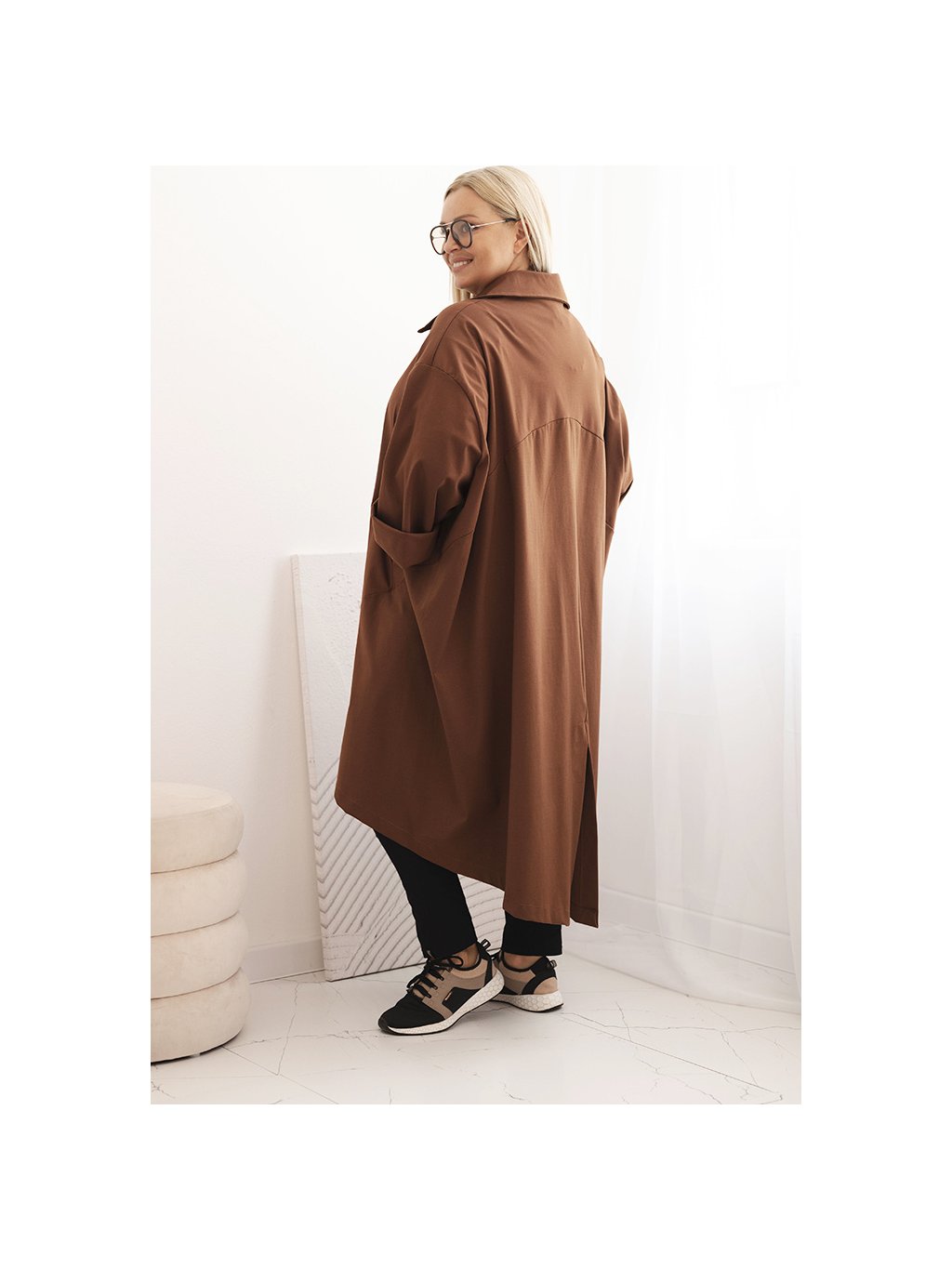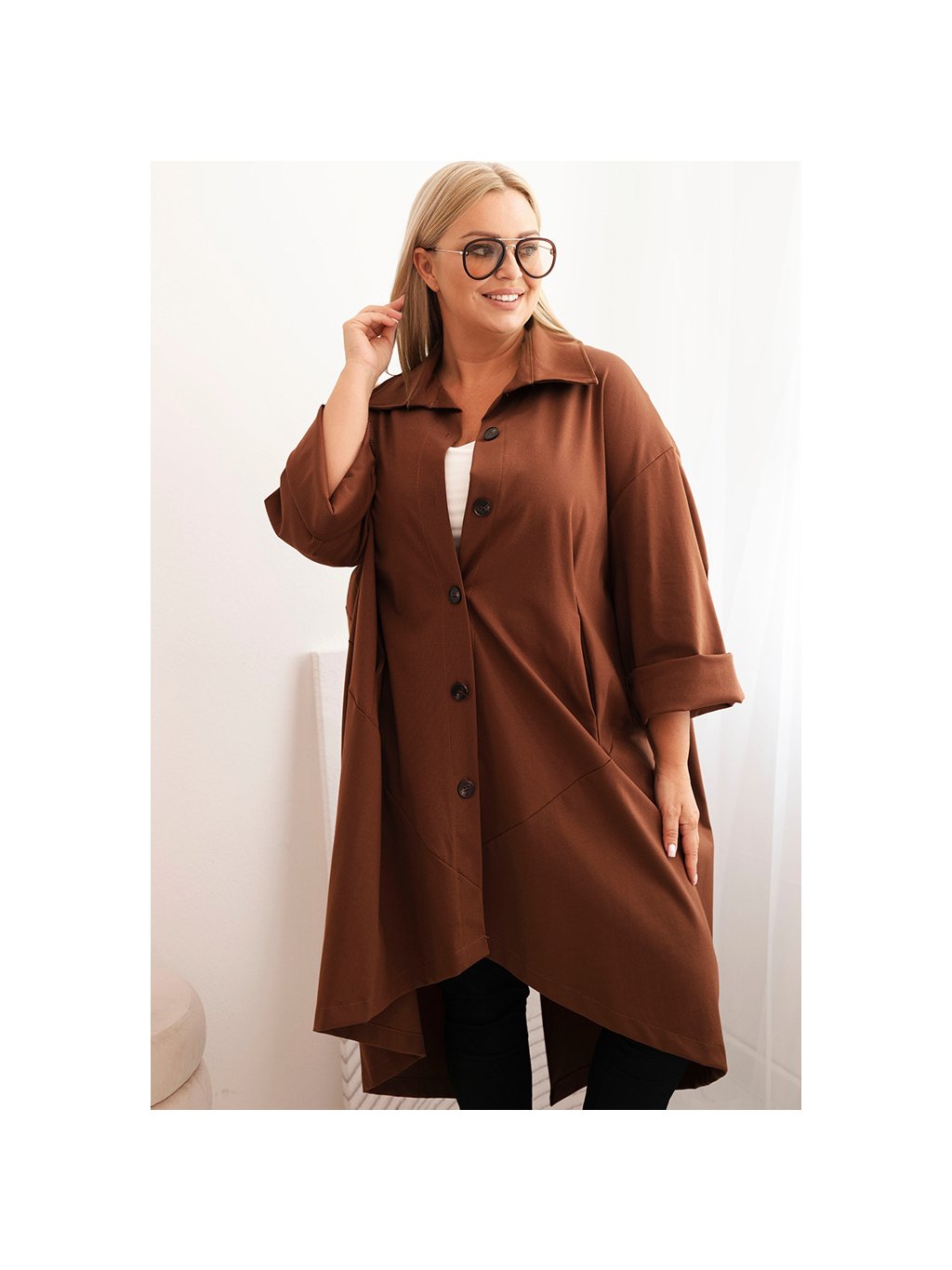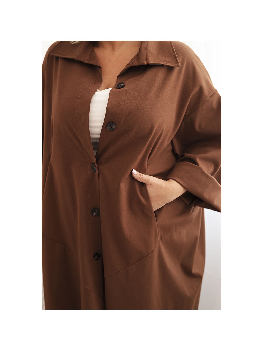 Čokoládově hnědý dámský lehký kabátek s klasickým límcem