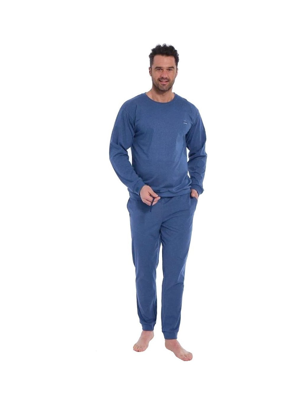 Cornette Modré melanž pánské dlouhé pyžamo
