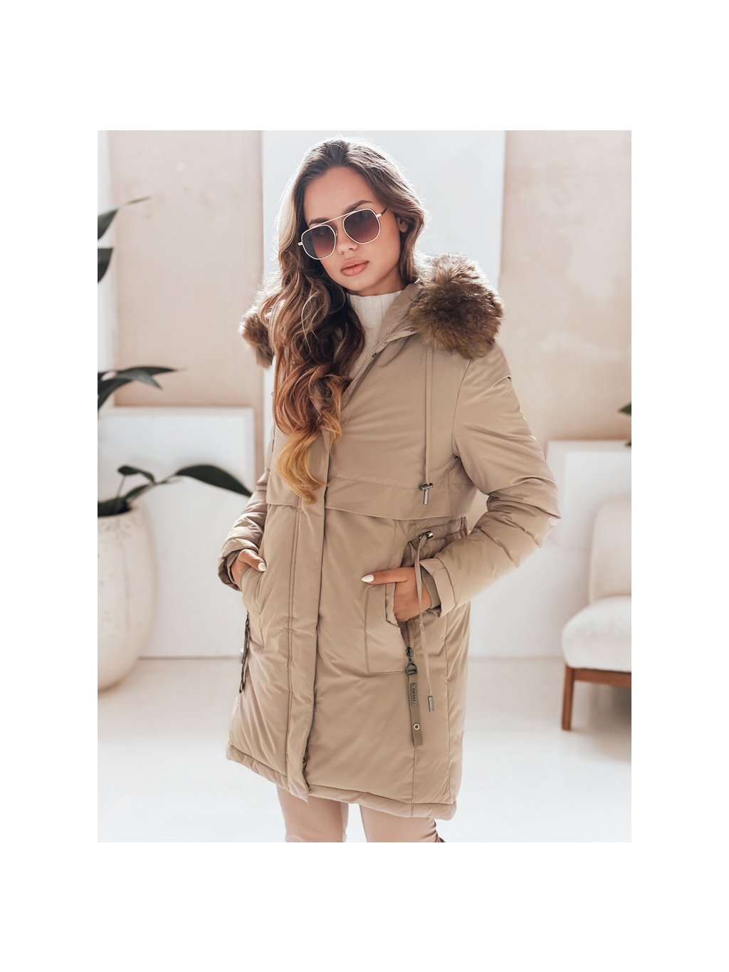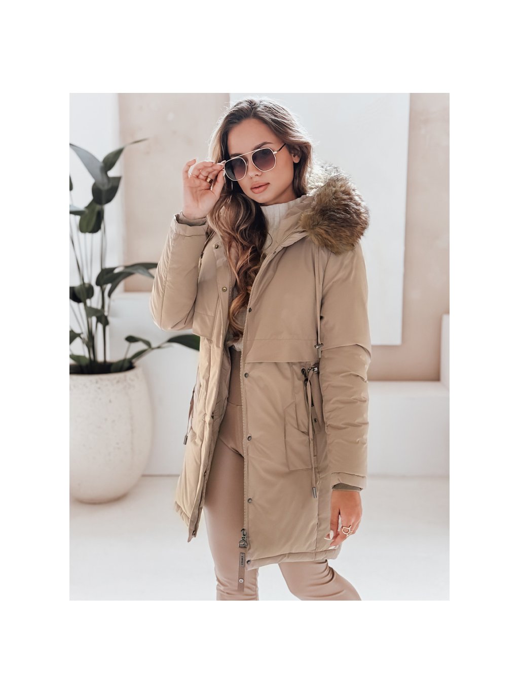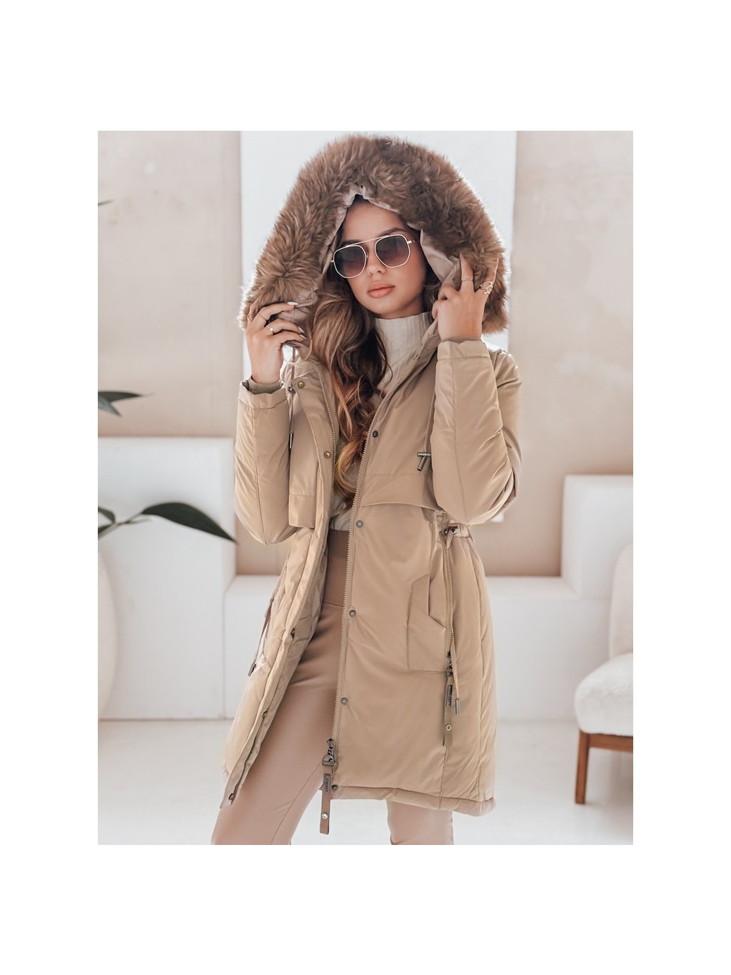 Dámská béžová zimní parka s kapucí