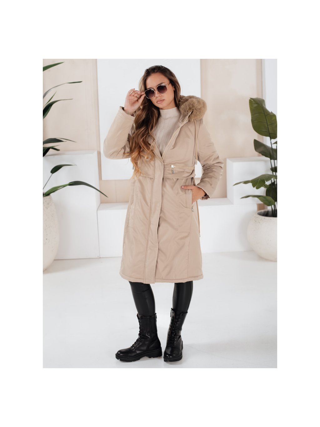 Dámská béžová zimní parka s kožešinou