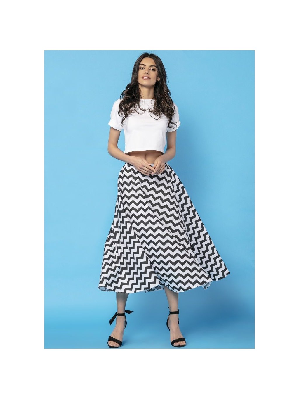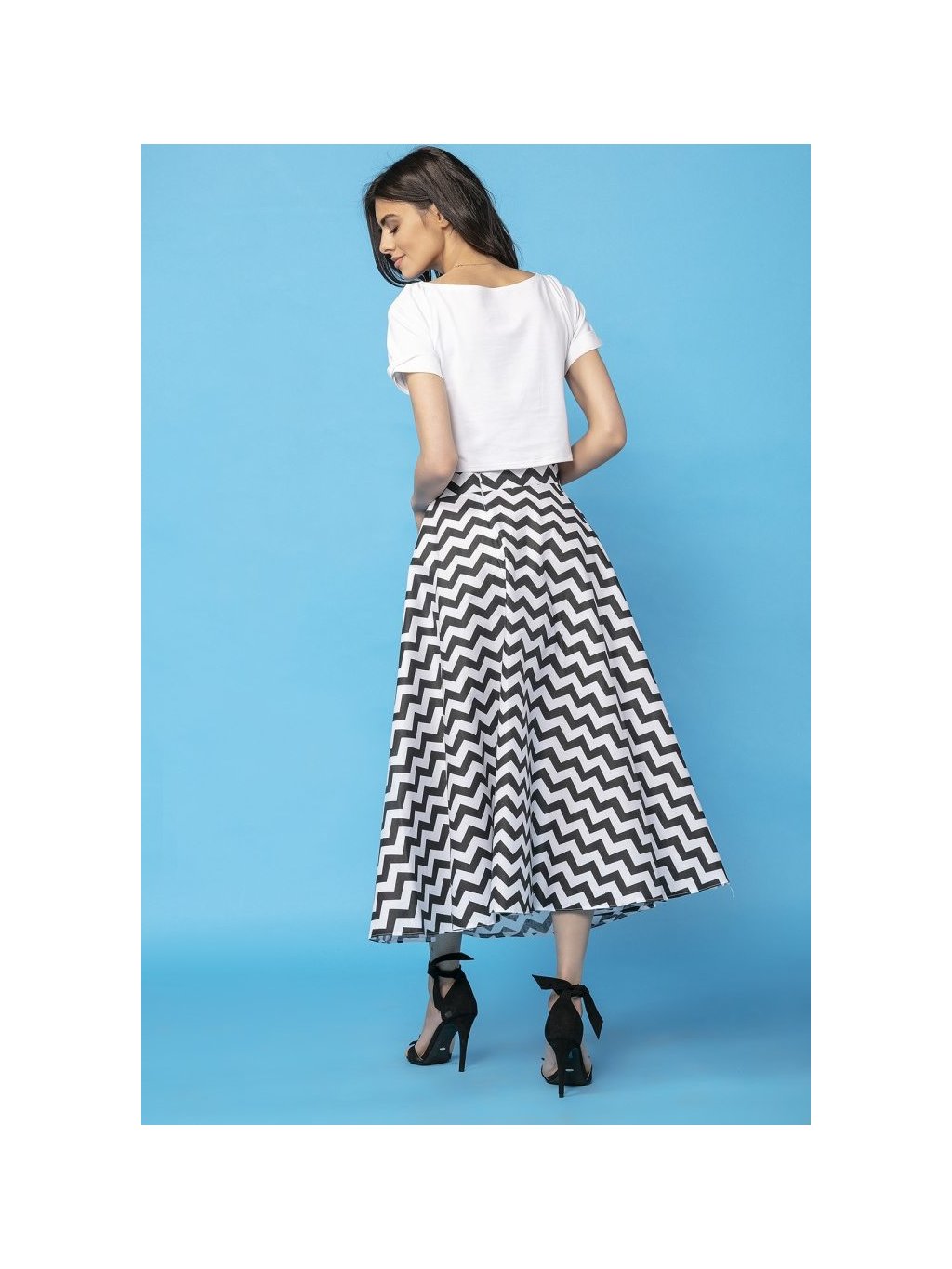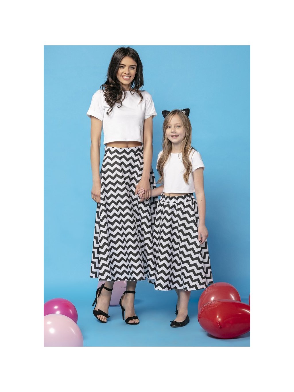 Dámská bílo-černá vzorovaná midi sukně s motivem cikcak máma a dcera