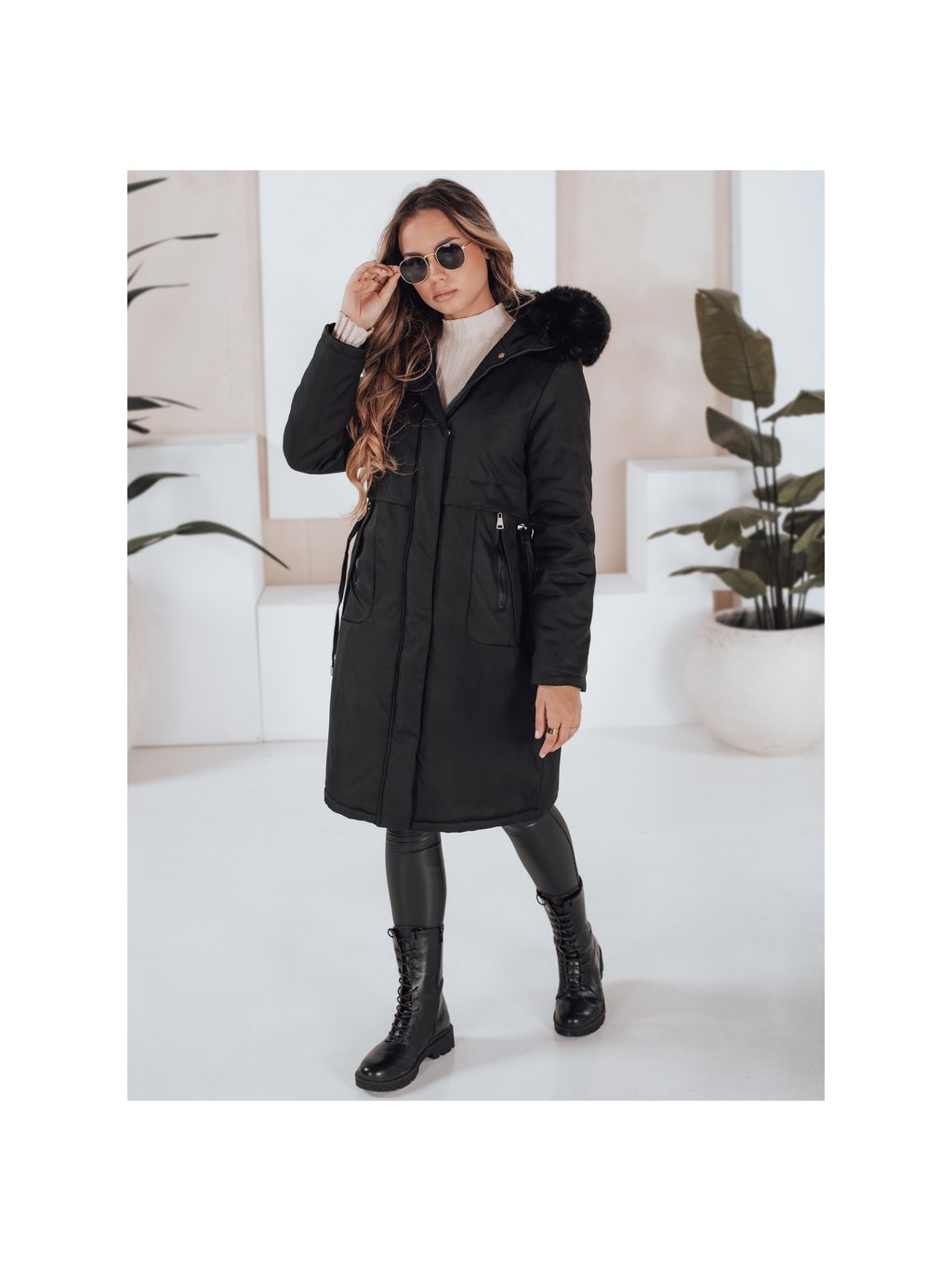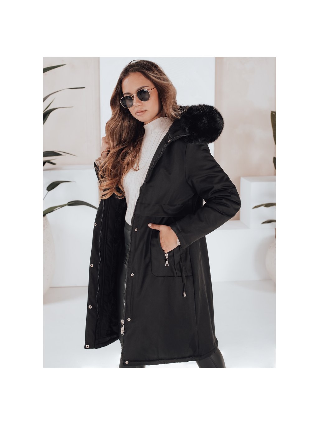 Dámská černá zimní parka s kožešinou
